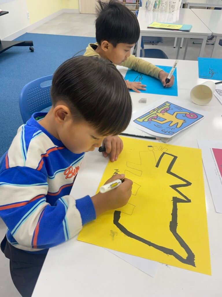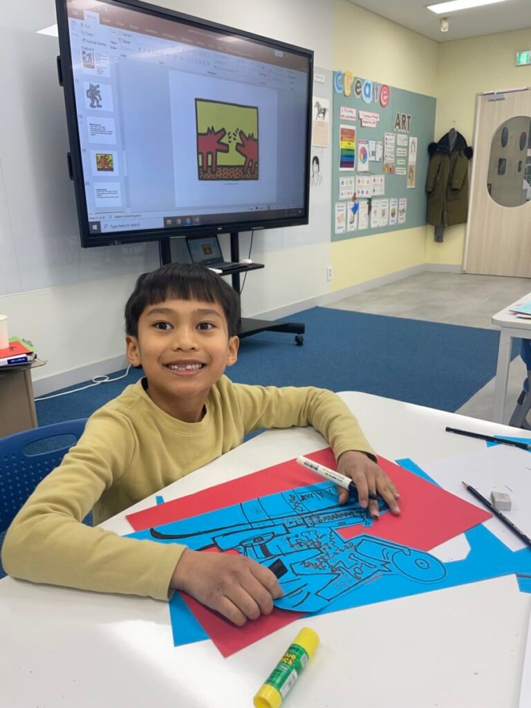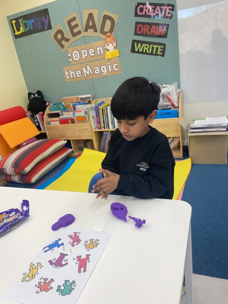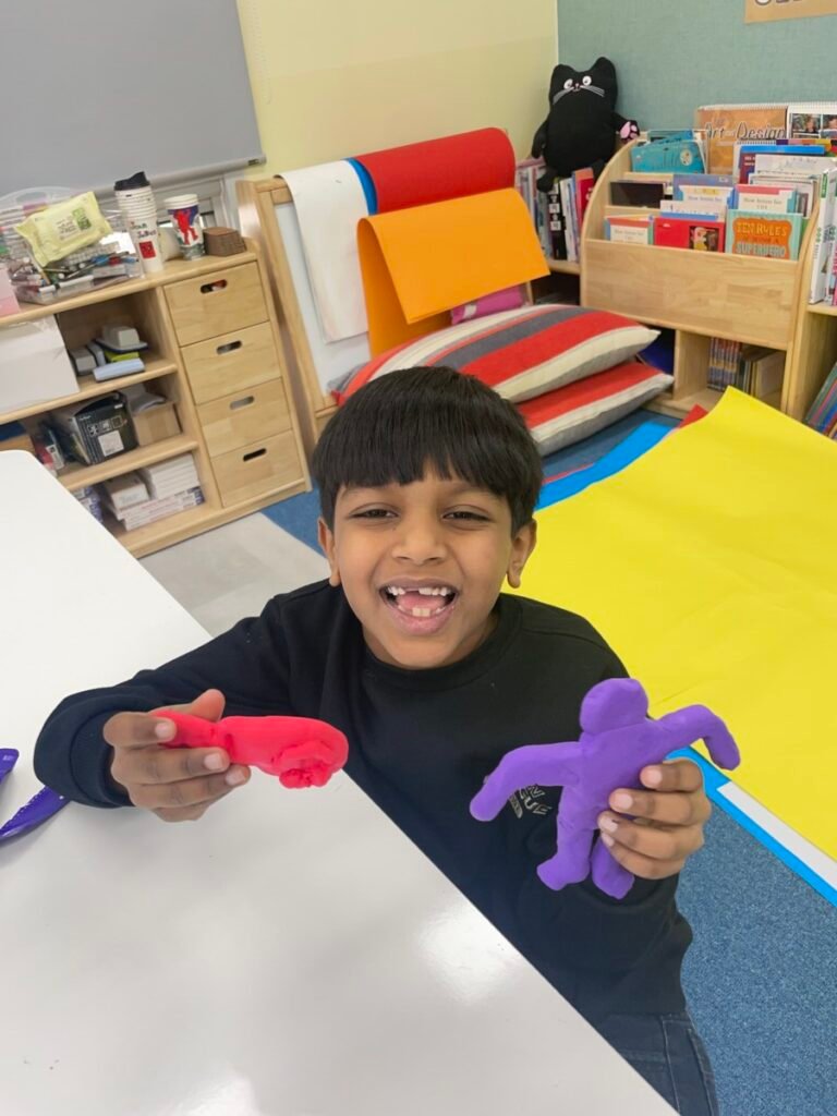 Using clay, students created their own Keith Haring–inspired figures, transforming his simple, dynamic characters into sculptural forms. They focused on strong outlines, active poses, and clear shapes, thinking carefully about how to show movement and emotion through form. It was exciting to see the children bring familiar figures to life in a tactile and hands-on way.