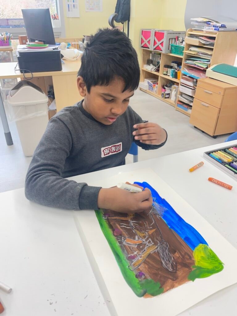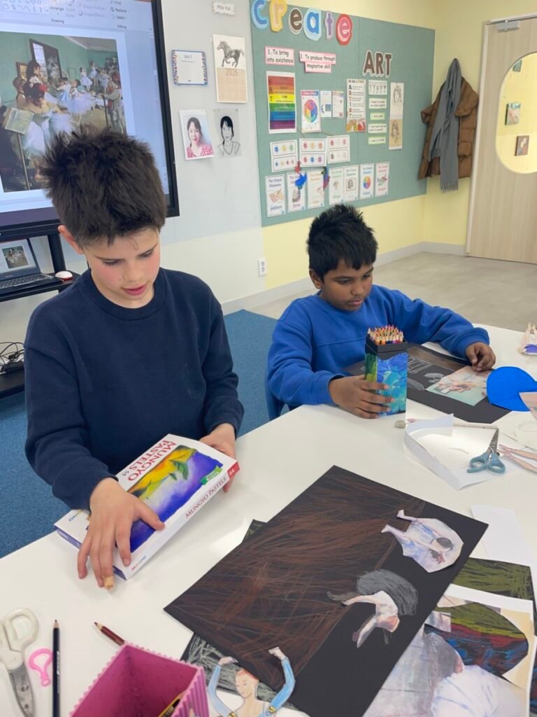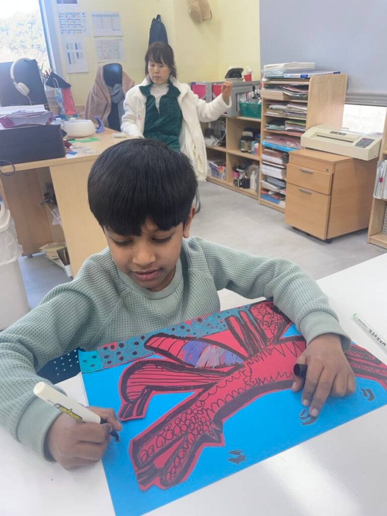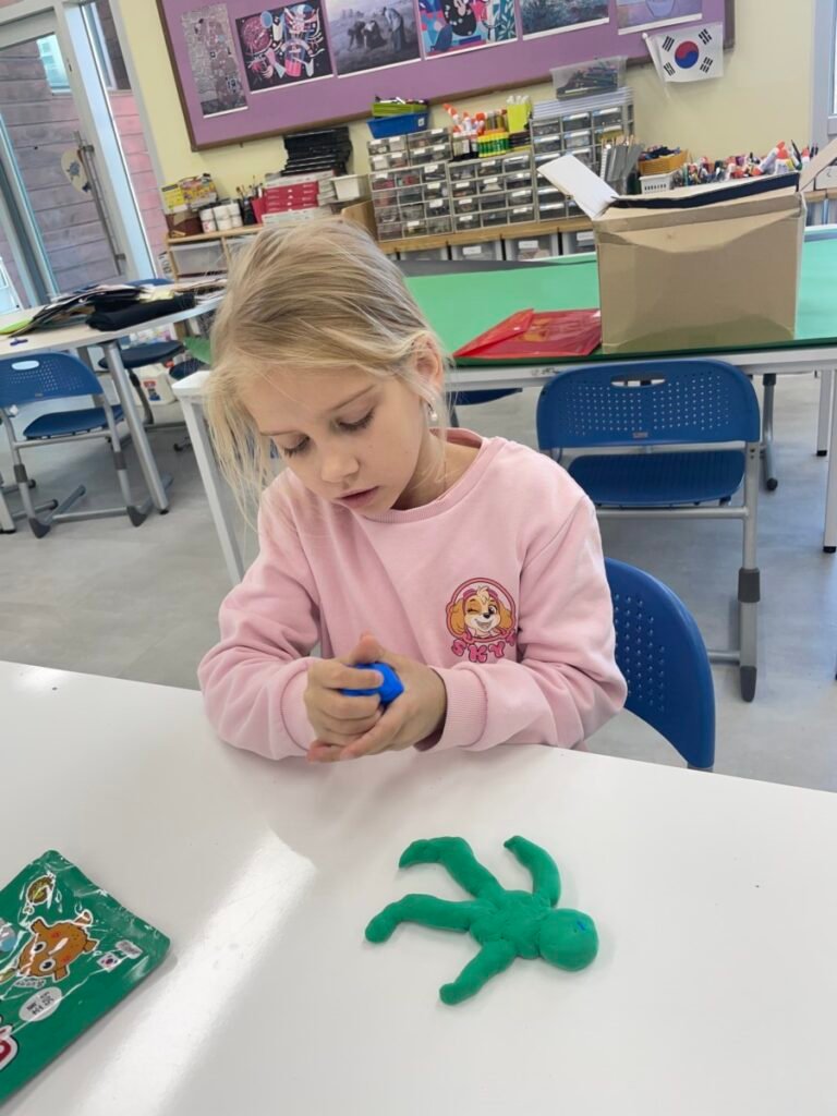 Using clay, students created their own Keith Haring–inspired figures, transforming his simple, dynamic characters into sculptural forms. They focused on strong outlines, active poses, and clear shapes, thinking carefully about how to show movement and emotion through form. It was exciting to see the children bring familiar figures to life in a tactile and hands-on way.