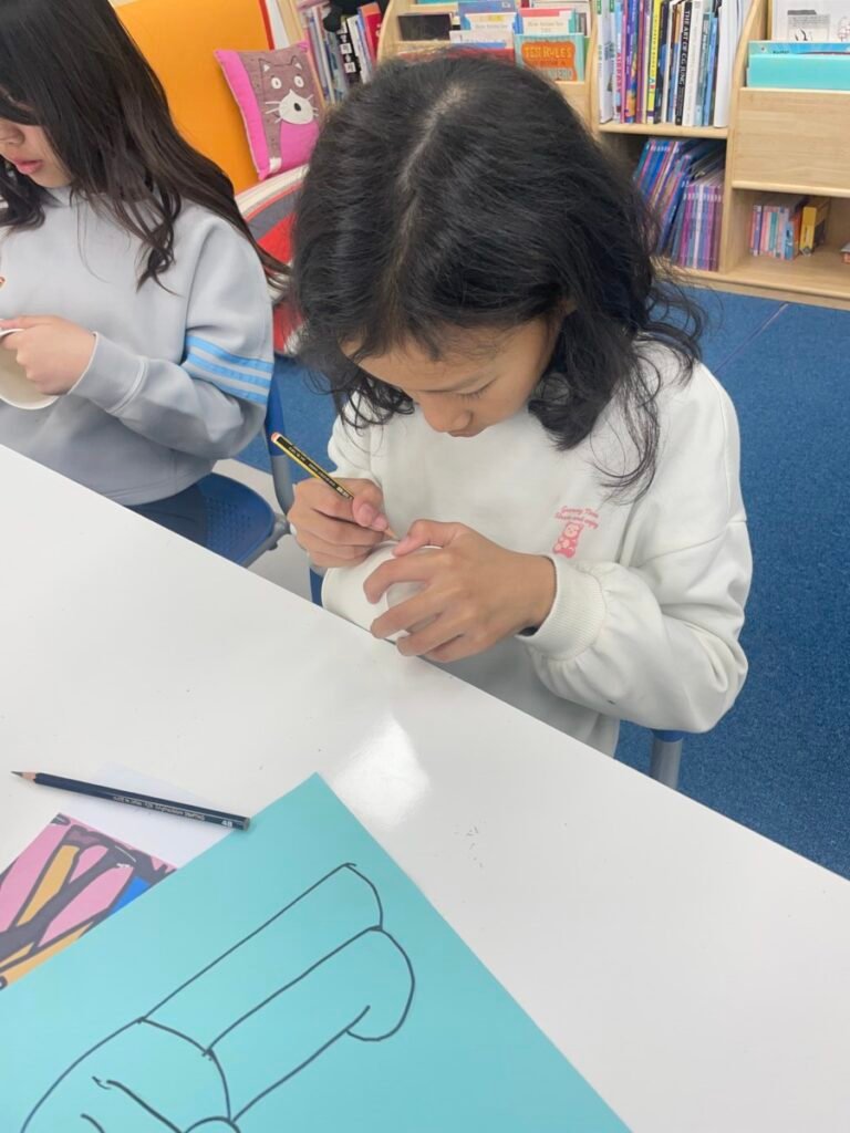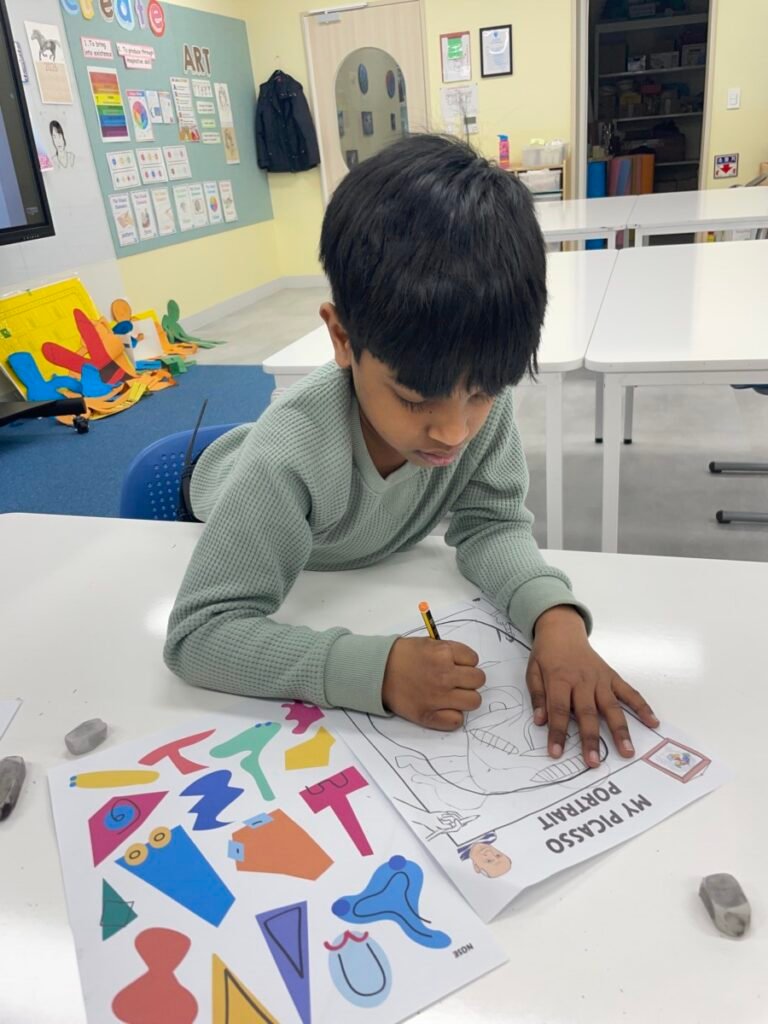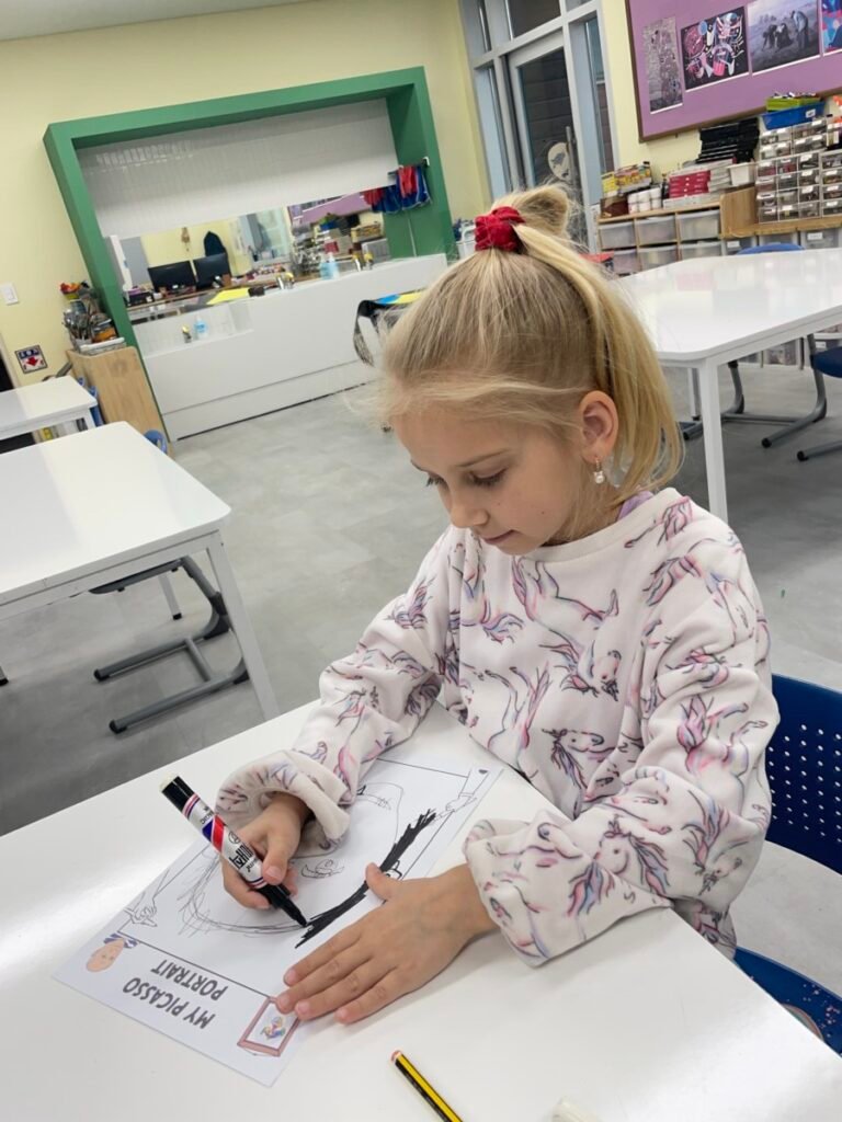 Working with clay also helped them develop fine motor skills, spatial awareness, and an understanding of form and structure. After completing their clay sculptures, we began a new unit introducing portrait art inspired by Pablo Picasso.