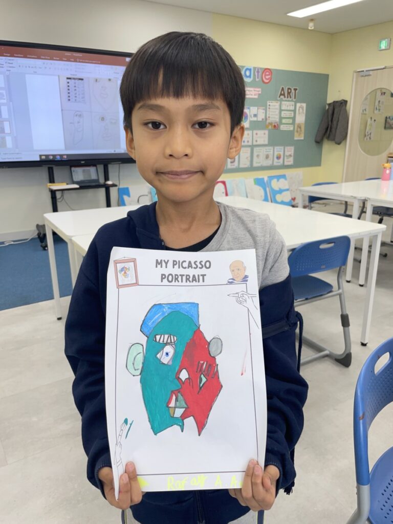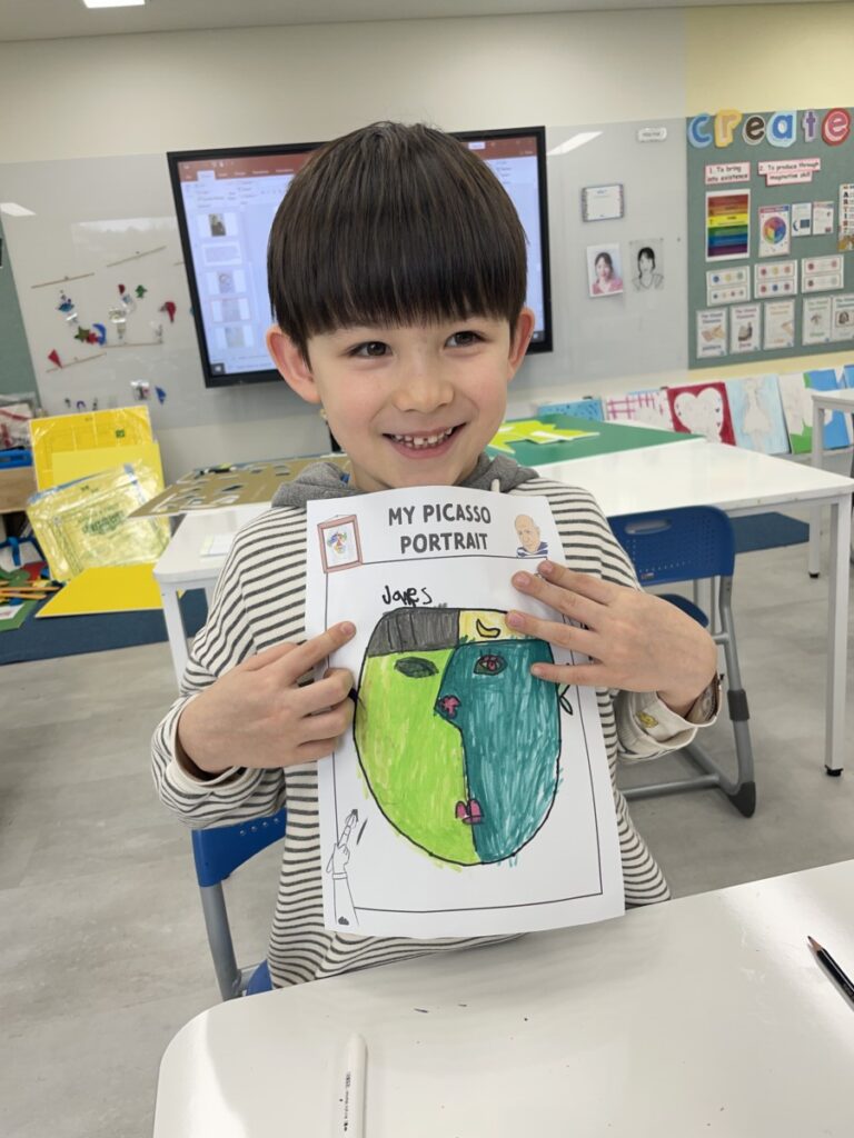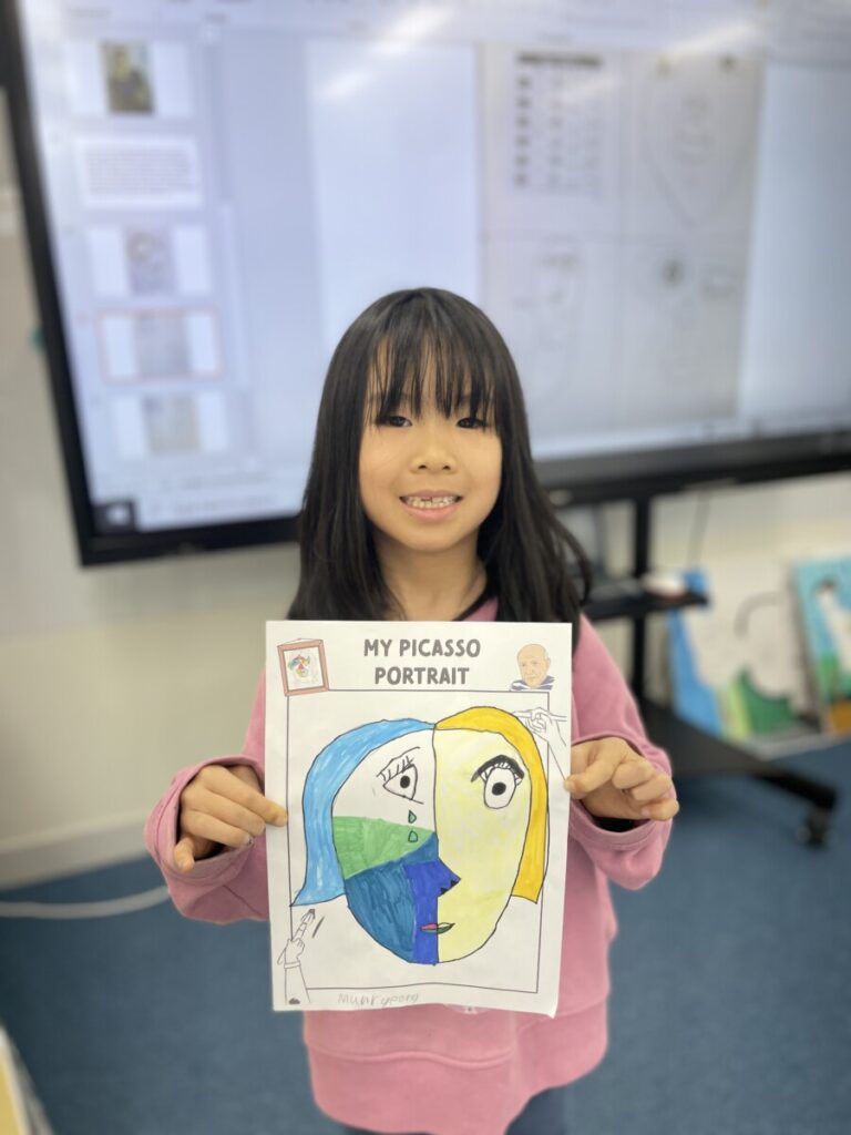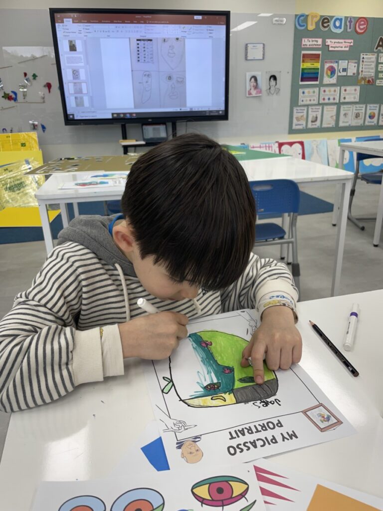 By the end of the lesson, students developed a deeper appreciation of Picasso’s unique approach to art and gained confidence in experimenting with new and unconventional ways of creating portraits.