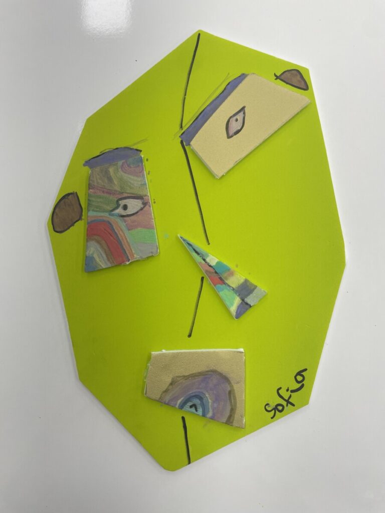 During the lesson, we talked about how Picasso liked to “break” the usual way we see faces and objects. Instead of drawing a face in the traditional way, Cubist artists experiment with different angles and shapes, showing multiple viewpoints at the same time.