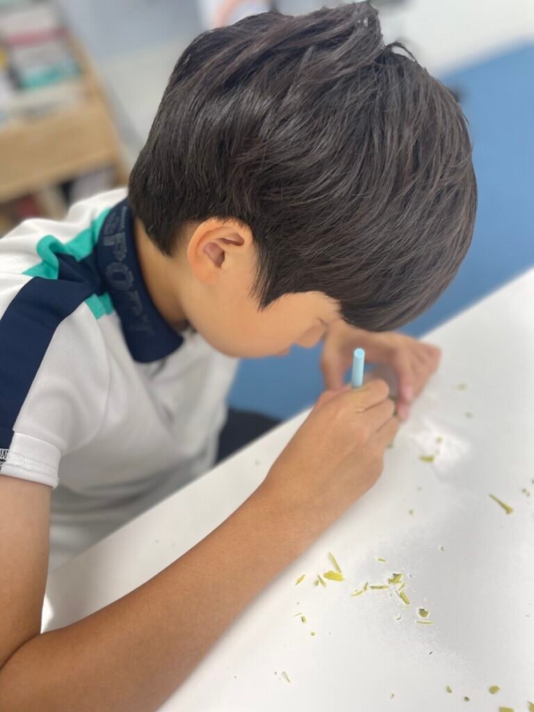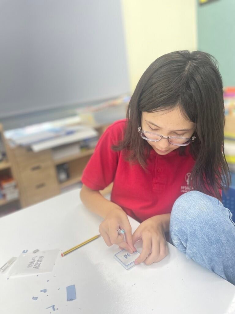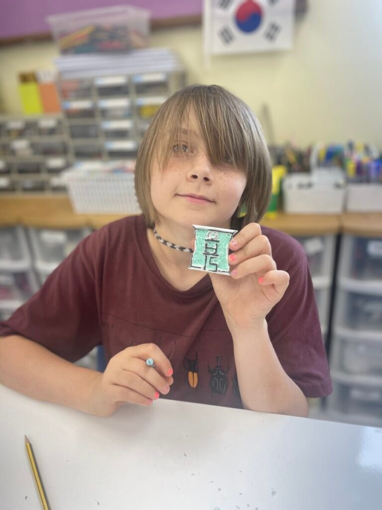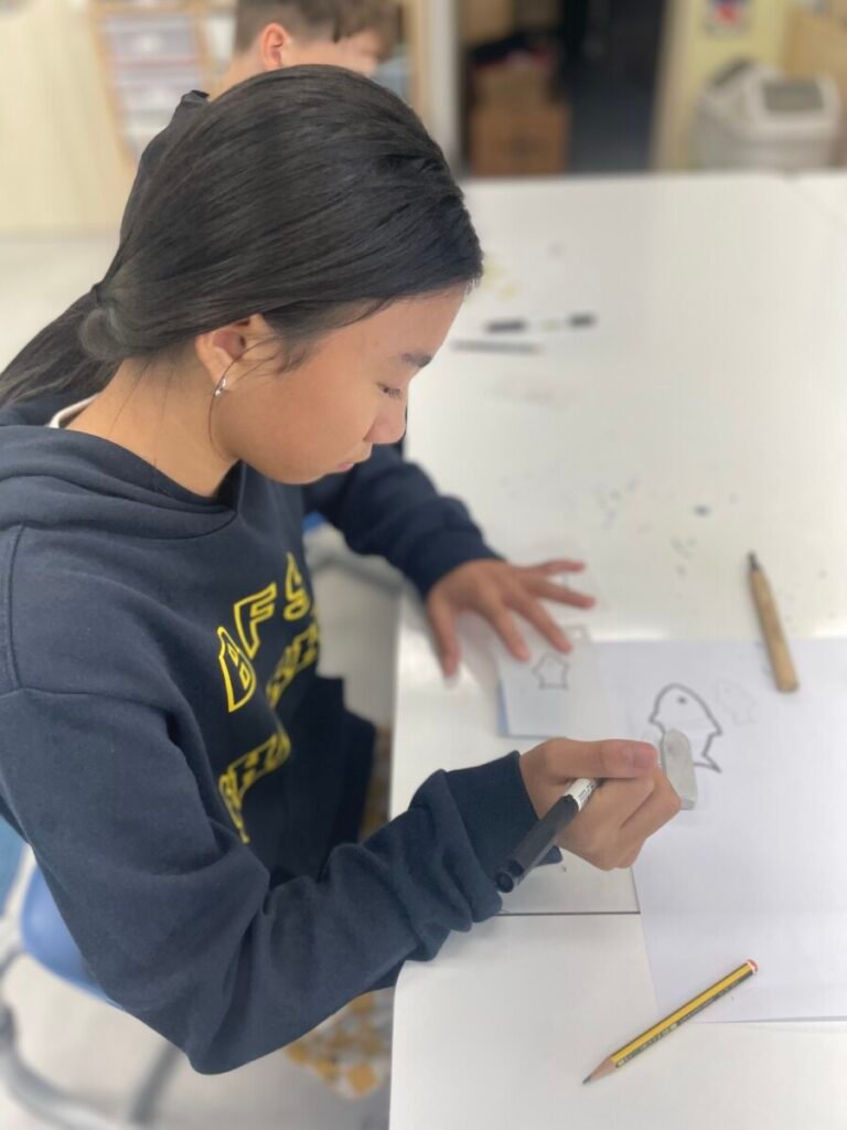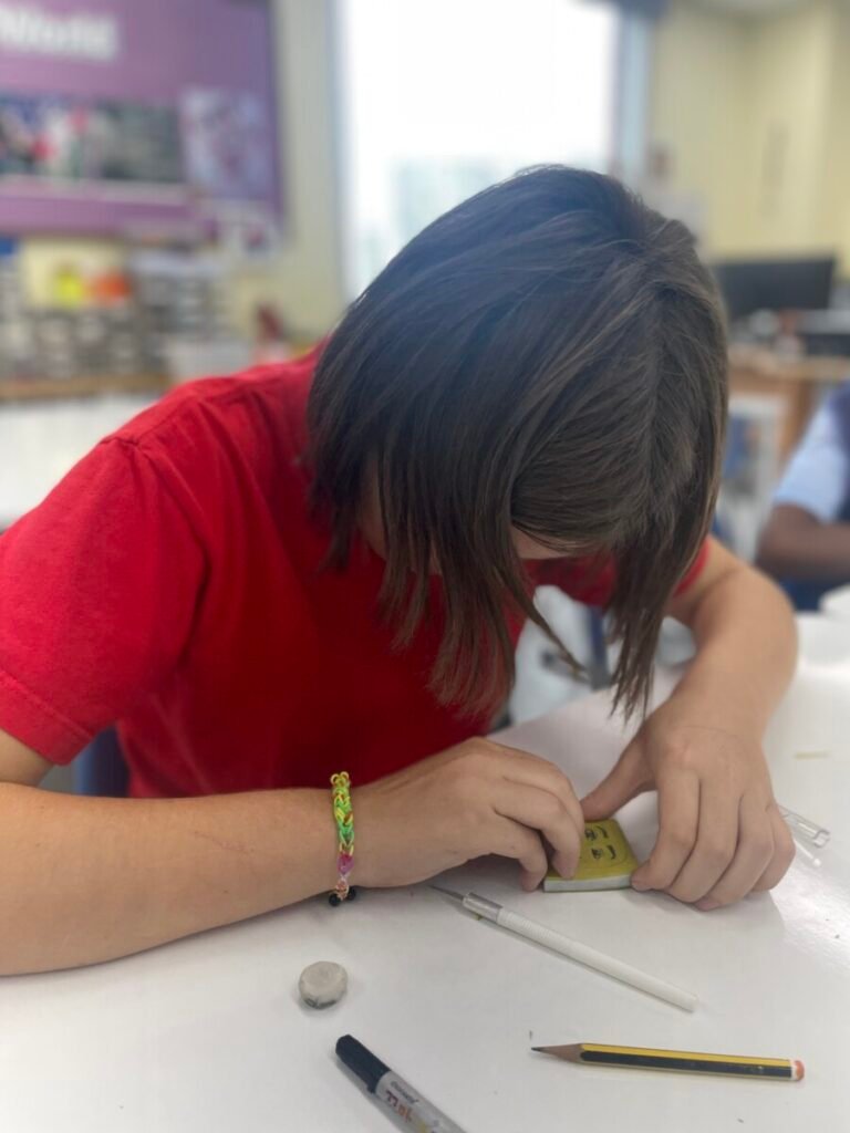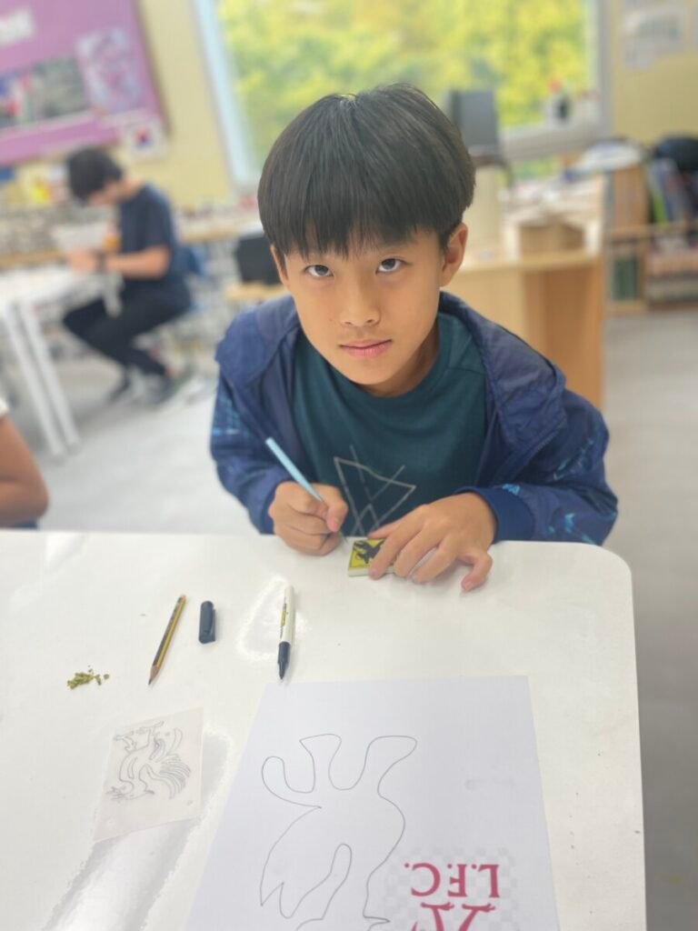 In our recent lessons, we explored fun carving techniques such as intaglio (carving in) and relief (leaving raised letters) while working on erasers. Some students successfully completed their name carvings and tested them out as stamps. After mastering the basics, we moved on to designing and carving simple characters. This process helped us improve our focus, practice using cutting tools carefully, and develop our motor skills in an engaging and hands-on way.