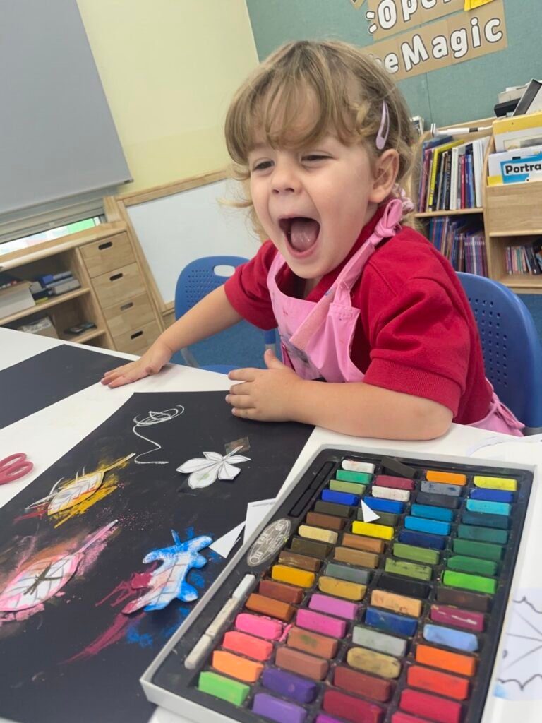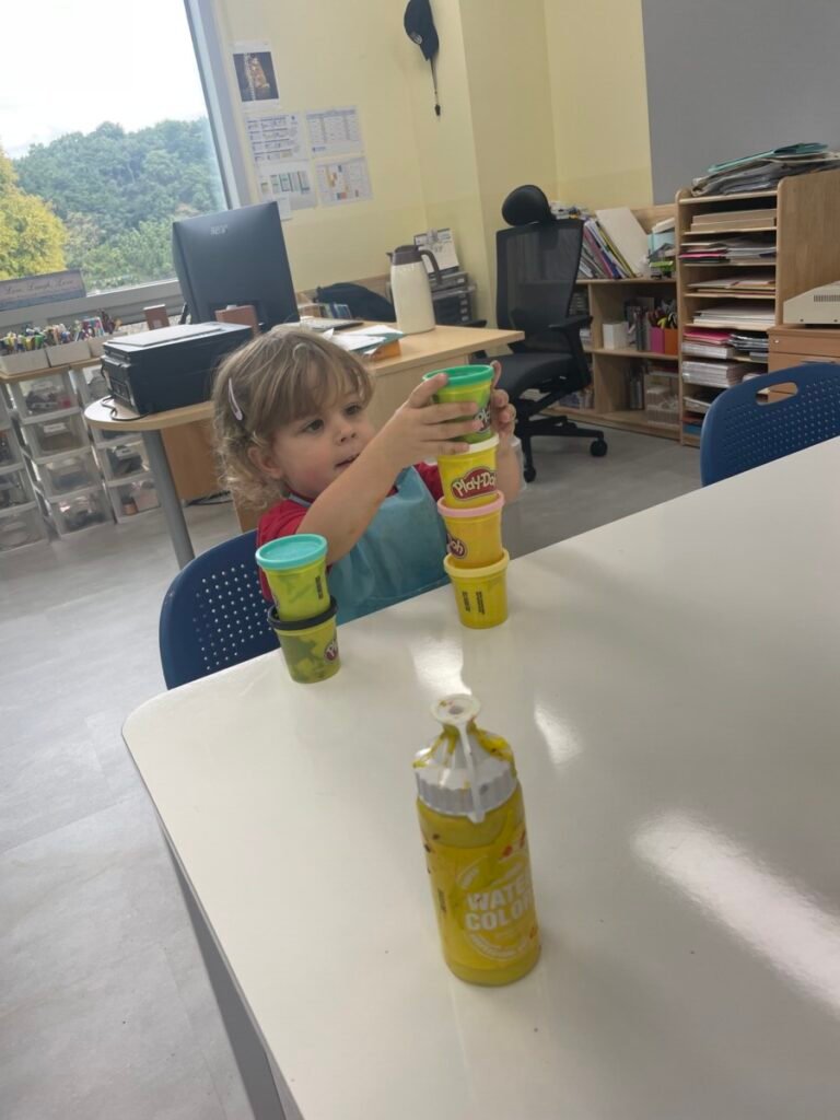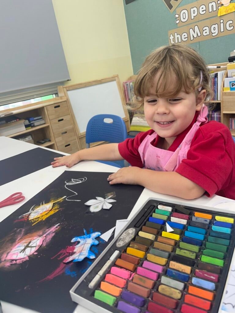 Although we missed Yeseo a lot, Maddison and I had a fun and creative time exploring a variety of art materials, such as chalk pastels, watercolour paints, and playdough.