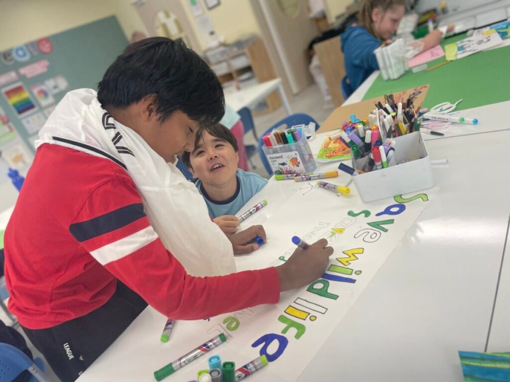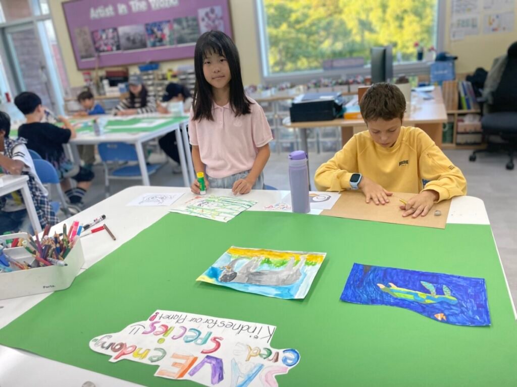 The Year 5-6 kids have completed their posters about endangered animals, each paired with a meaningful slogan. Their posters beautifully reflect their hard work and dedication, and I’m so proud of their efforts. We’ve now started a new project where the students are creating masks inspired by endangered animals, allowing them to continue exploring this important theme through art.