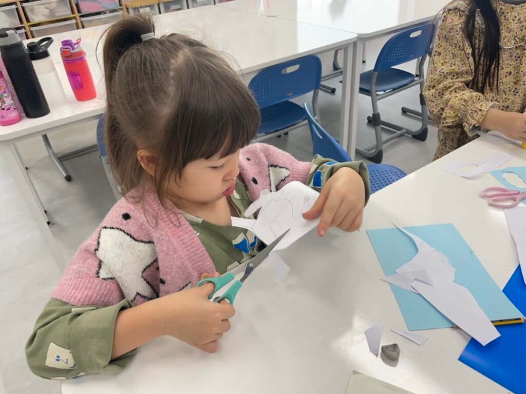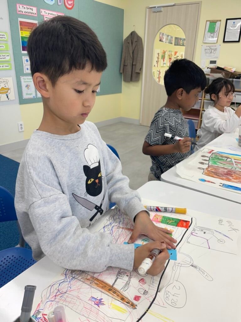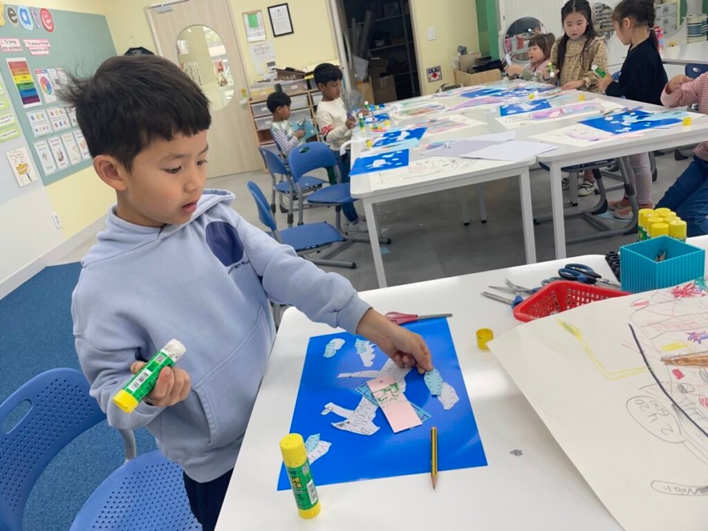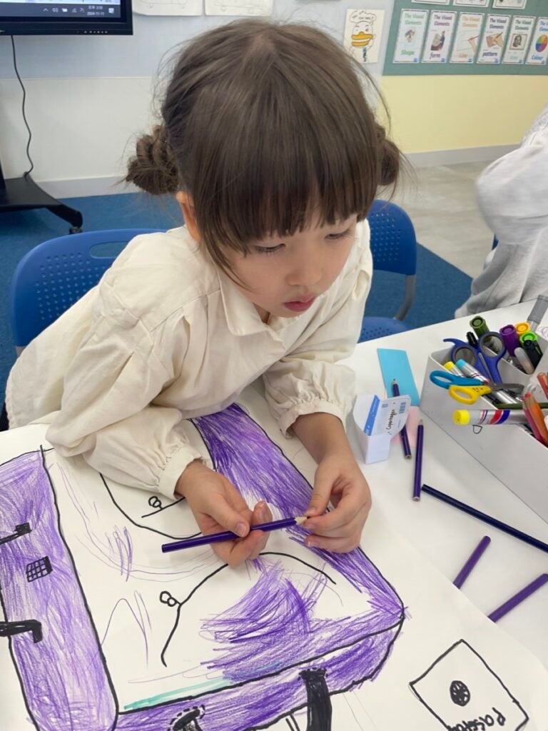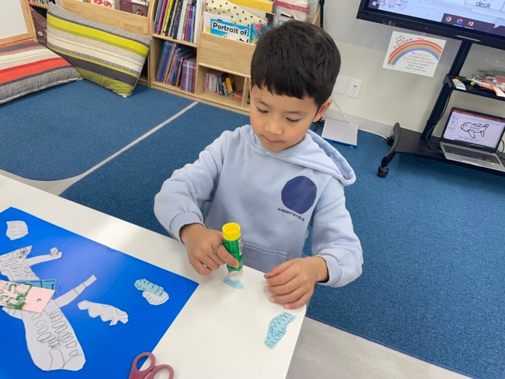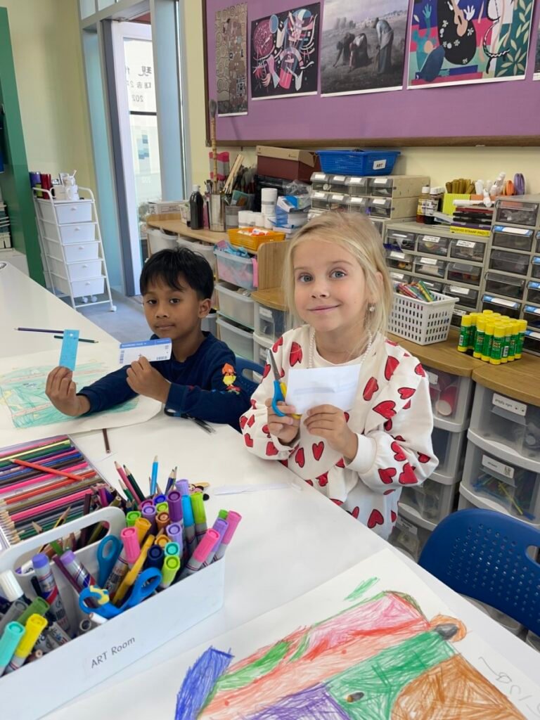 The kids focused on the instruments, colours, and shapes in the artwork, discussing how Picasso used vibrant hues and geometric forms to convey the musical theme. With these ideas in mind, they created their own version of Three Musicians using a collage technique, layering and shapes in the style of Picasso’s playful and expressive approach.