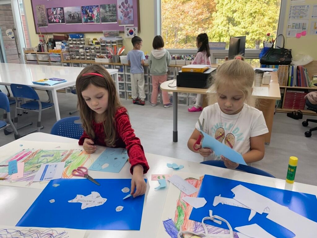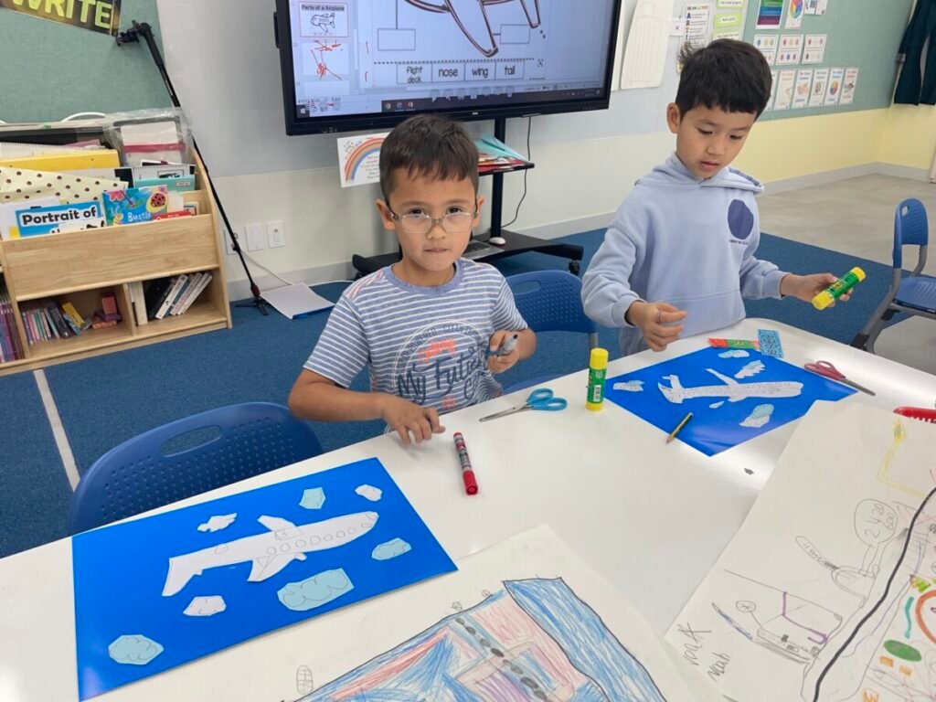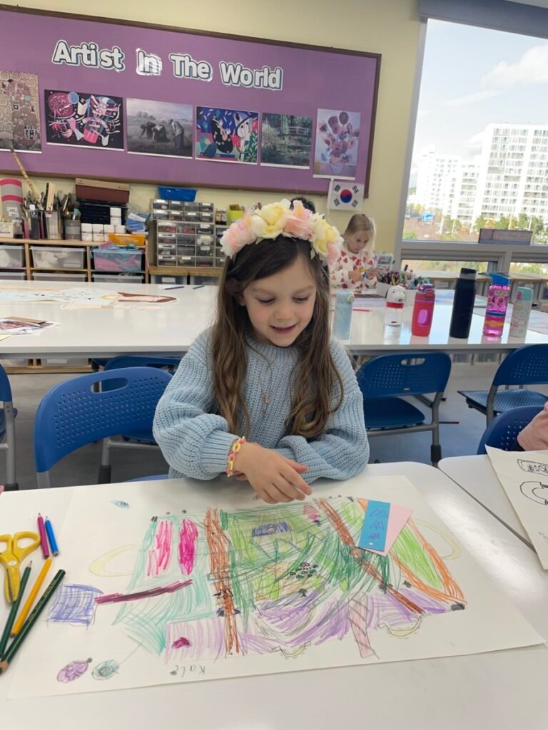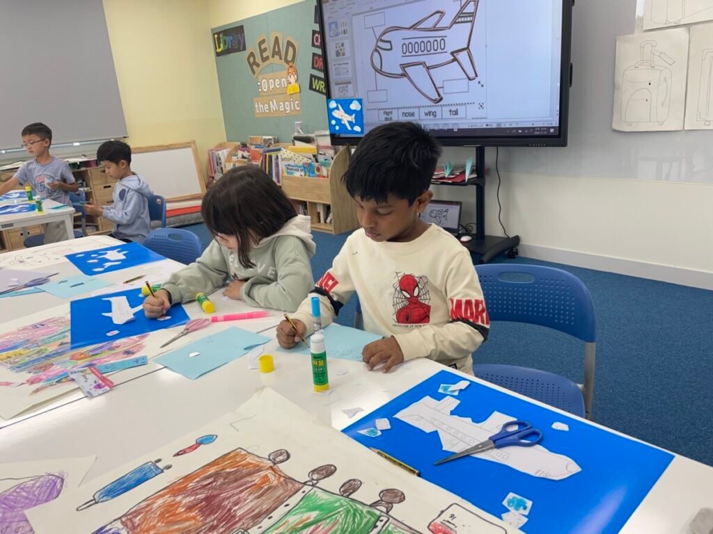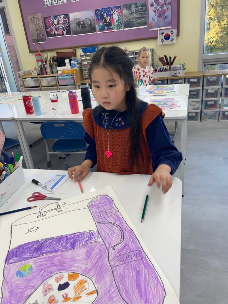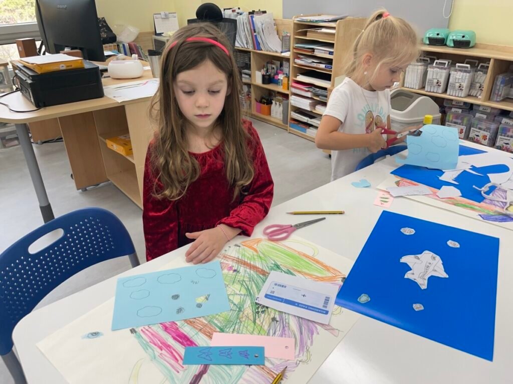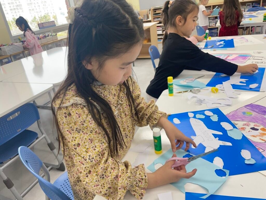 The kids focused on the instruments, colours, and shapes in the artwork, discussing how Picasso used vibrant hues and geometric forms to convey the musical theme. With these ideas in mind, they created their own version of Three Musicians using a collage technique, layering and shapes in the style of Picasso’s playful and expressive approach.