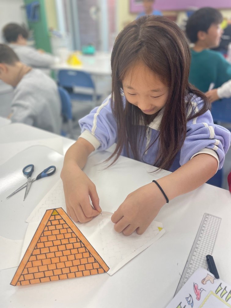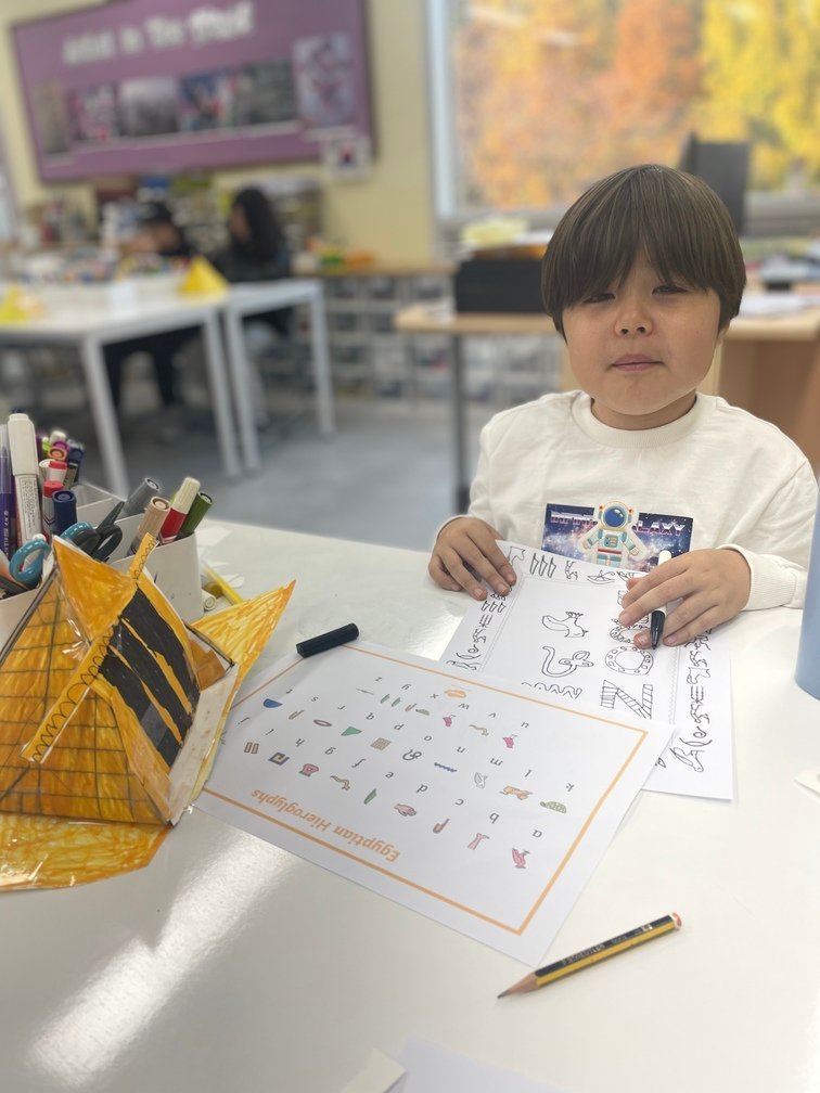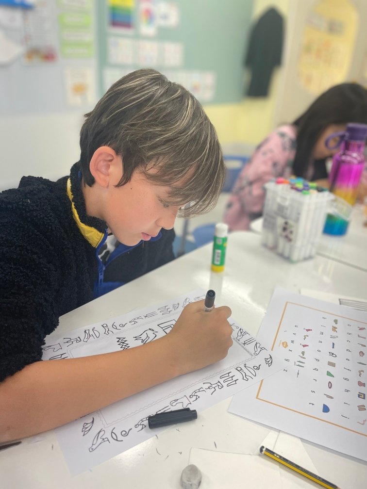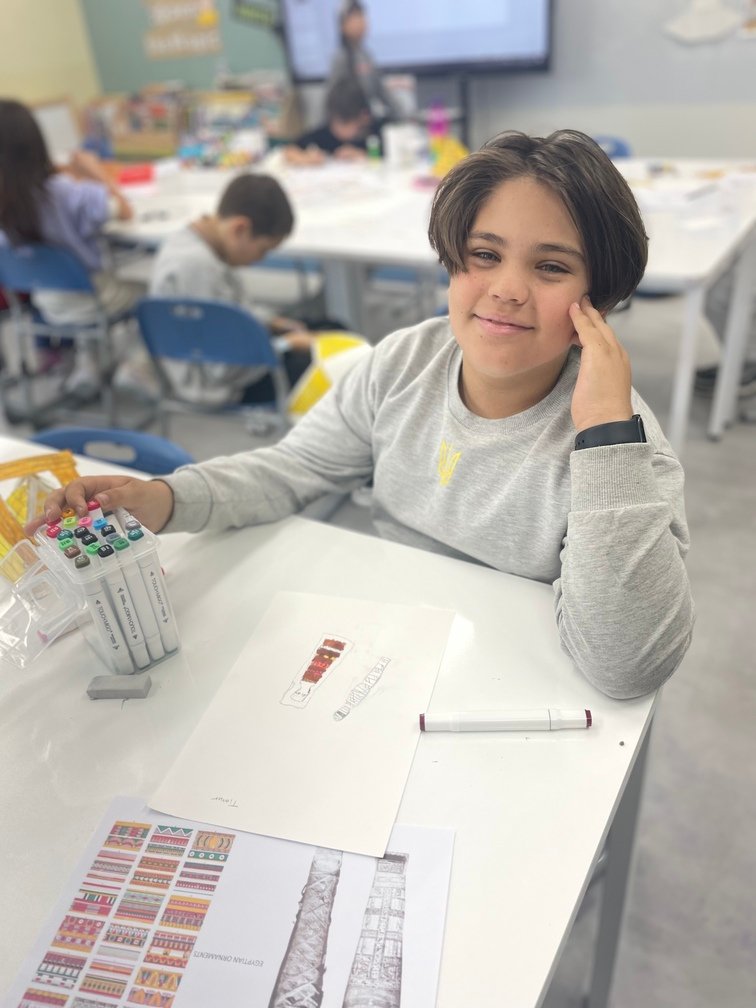 We also discovered fascinating Egyptian ornament patterns on the mummy cases and used them as inspiration to create our own designs. It was a fun and engaging way to dive deeper into the art and culture of Ancient Egypt!