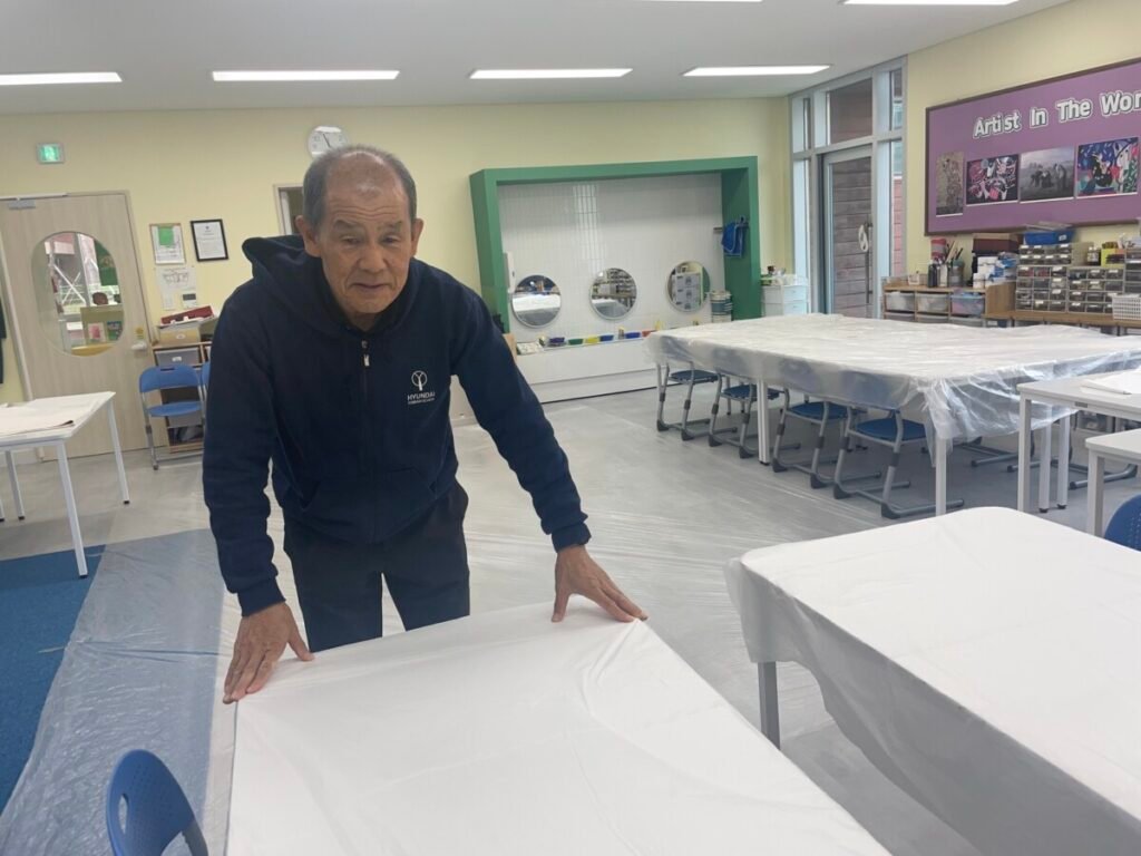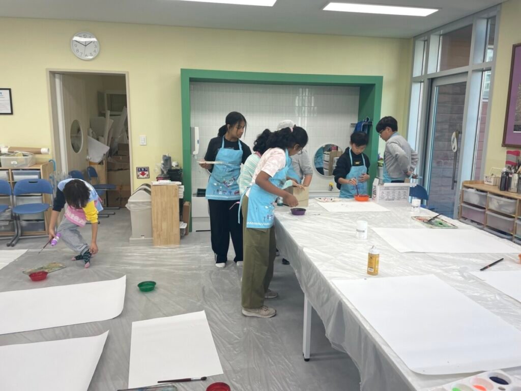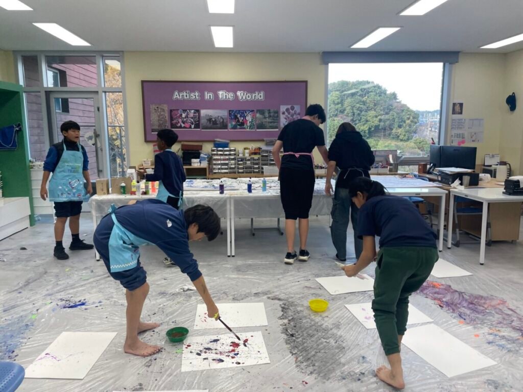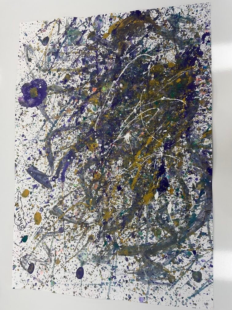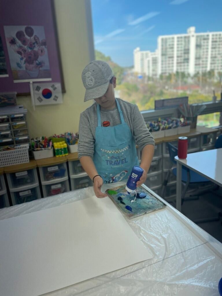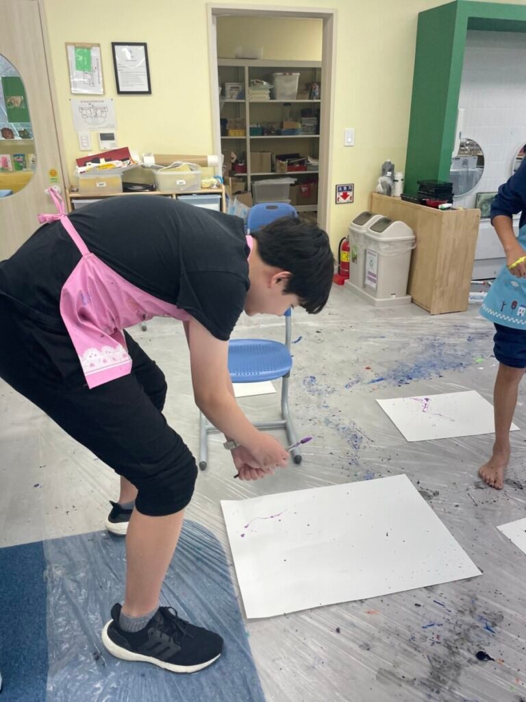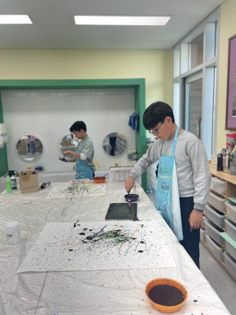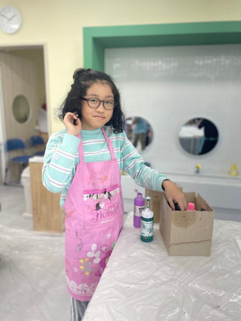This week, we had our exciting ‘Action Painting’ activity! I set up coverings on the floor and desks to allow the children to paint freely, and a big thank you to Mr. Choi for helping me with the setup!