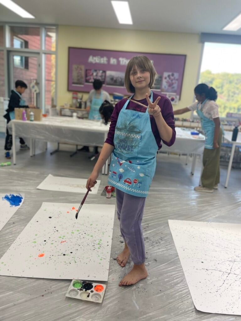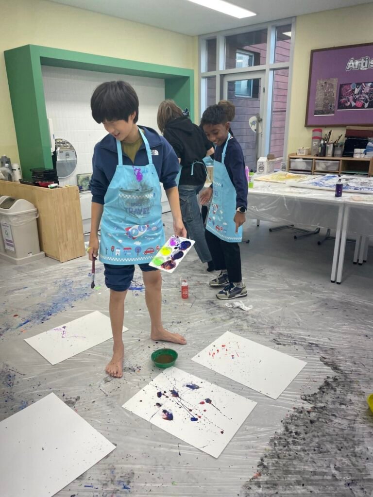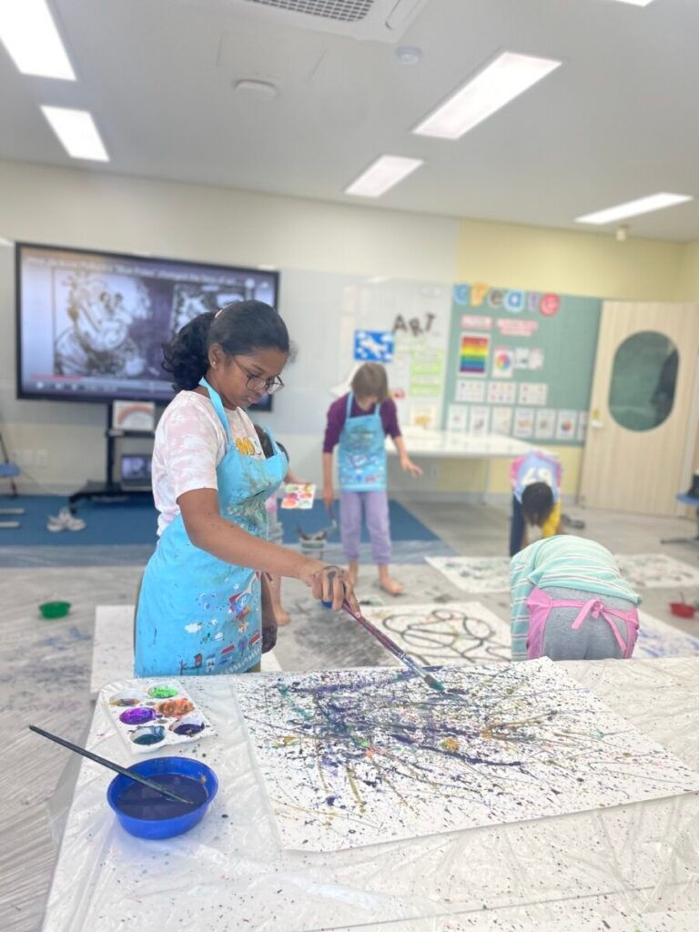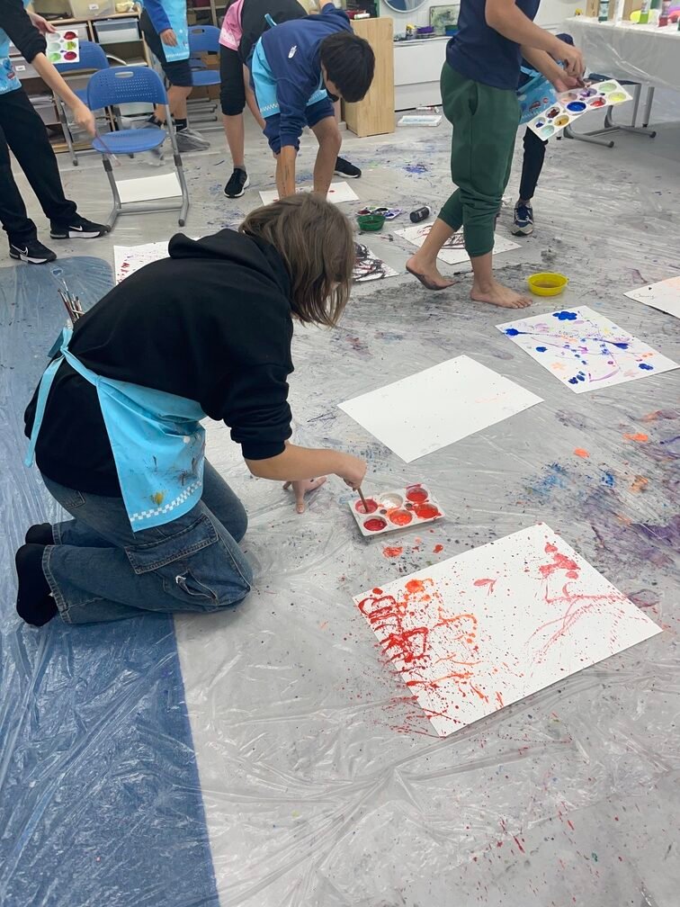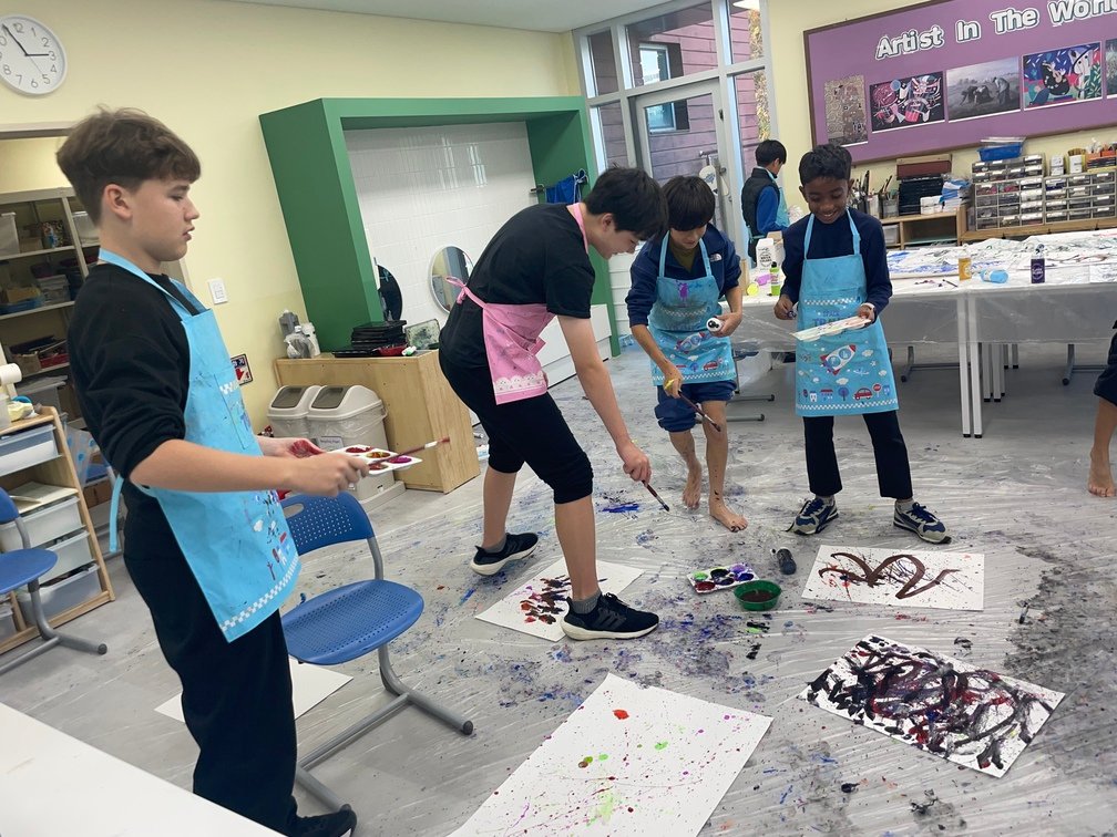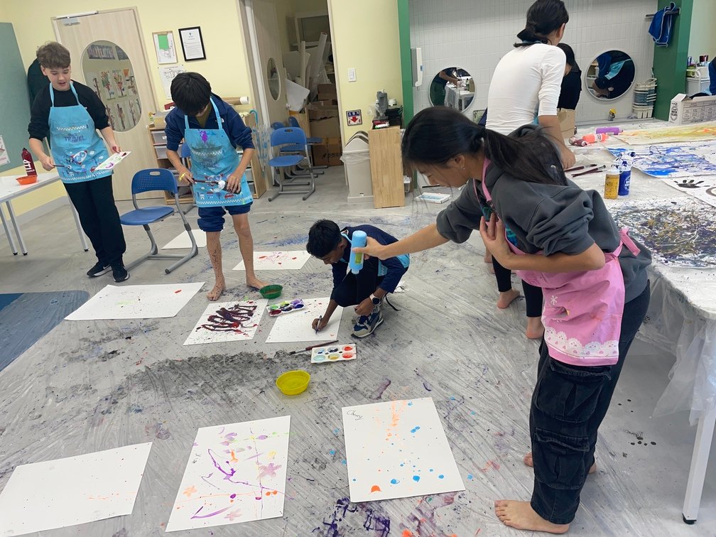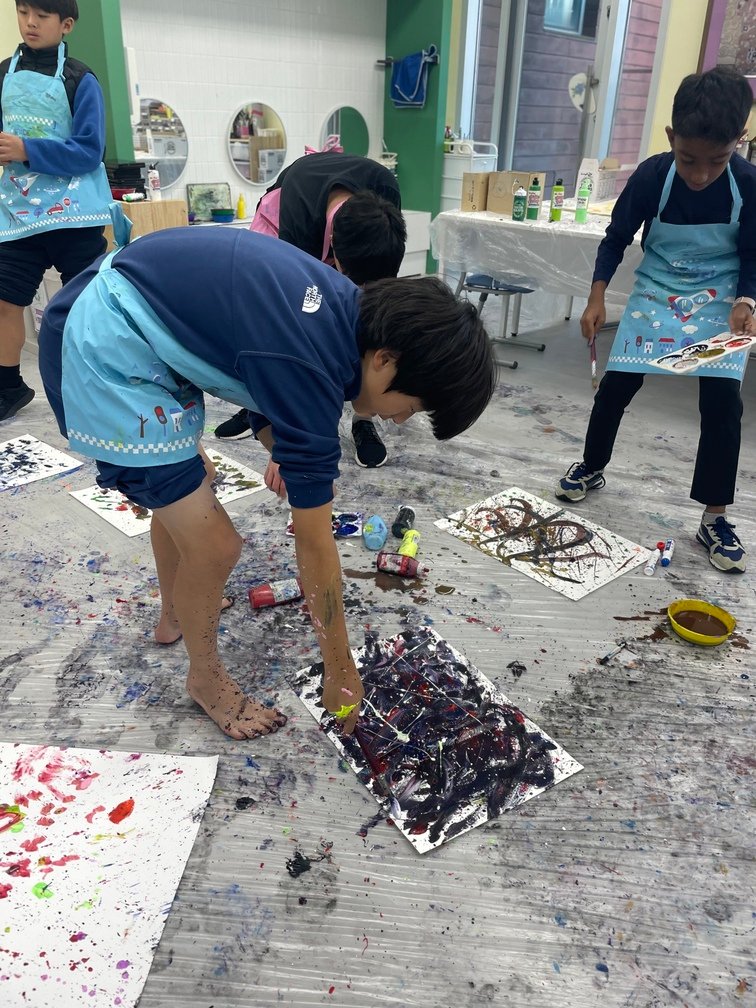 I provided a variety of paper sizes and types, letting the kids choose what they wanted to experiment with. It was so much fun creating abstract action paintings using a variety of colours and expressive, free movements. The kids truly enjoyed the creative process!