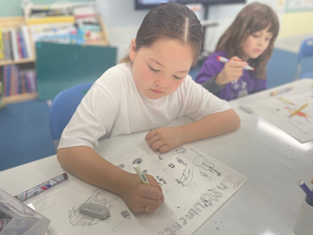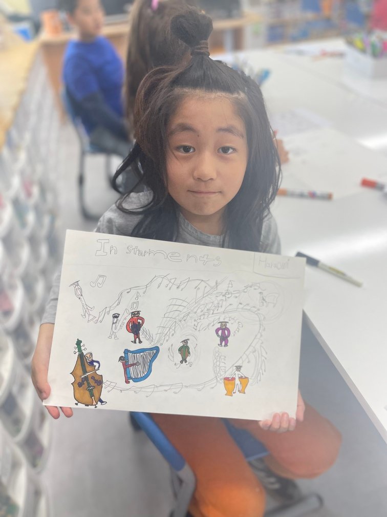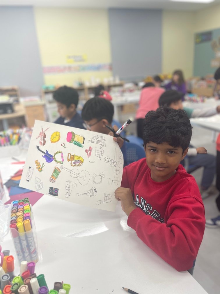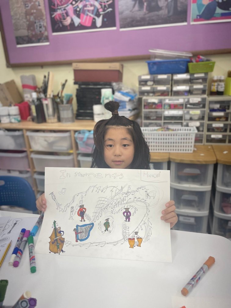 This week, the students completed their musical instrument posters. They explored various musical instruments and expressed them through drawings. By doing observational drawing, they were able to notice the shapes and details of the instruments more closely. It was a great time for the children to explore different materials and deepen their understanding of the instruments!