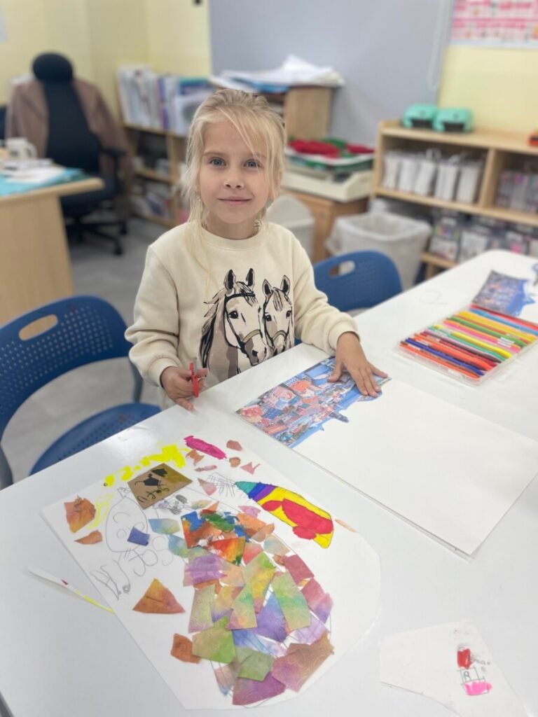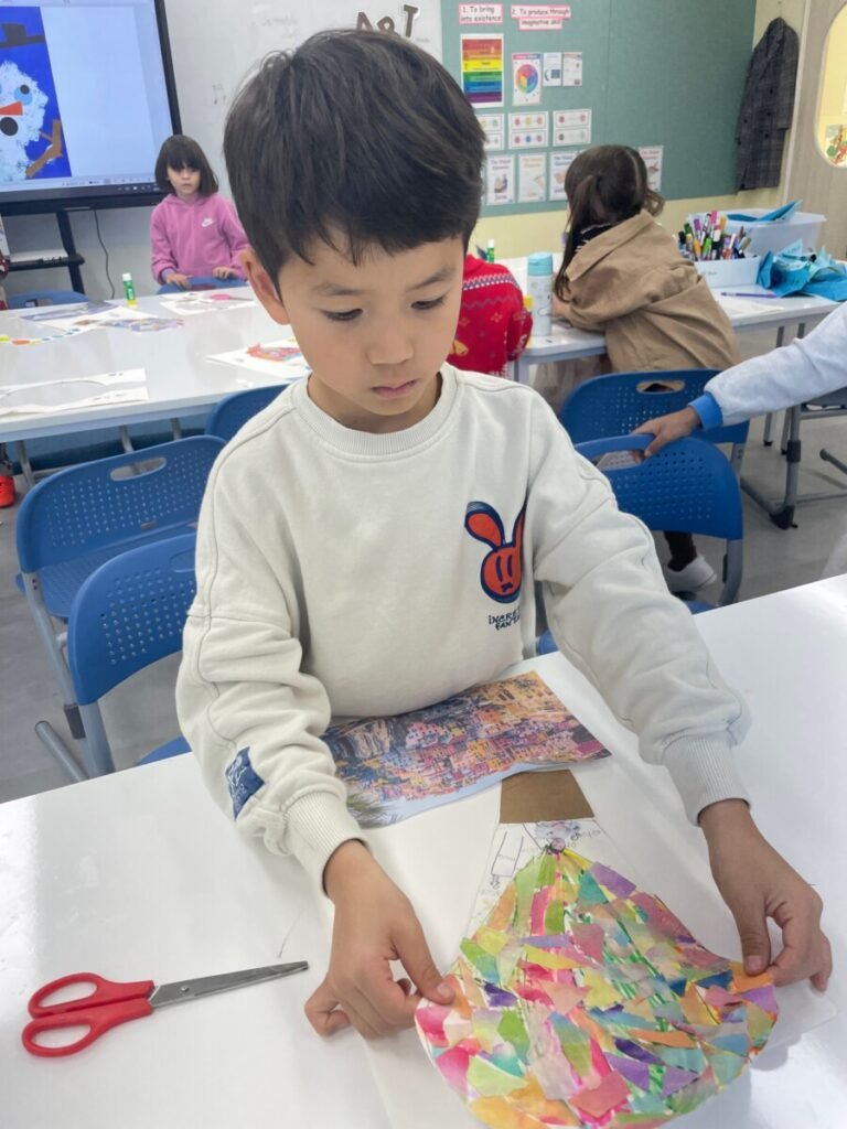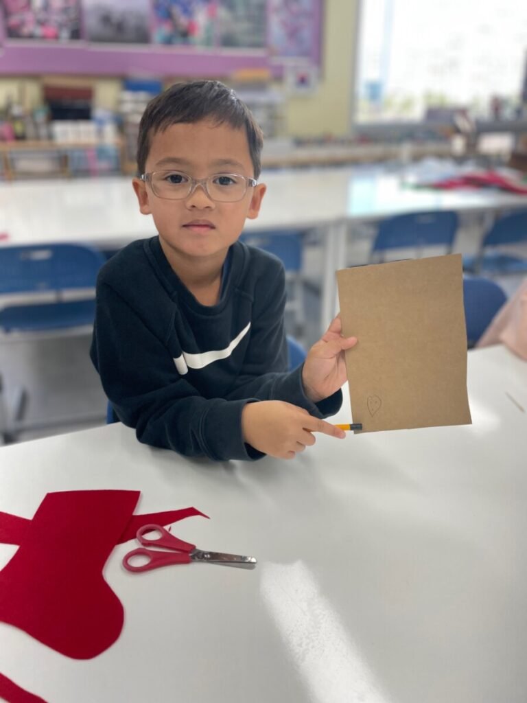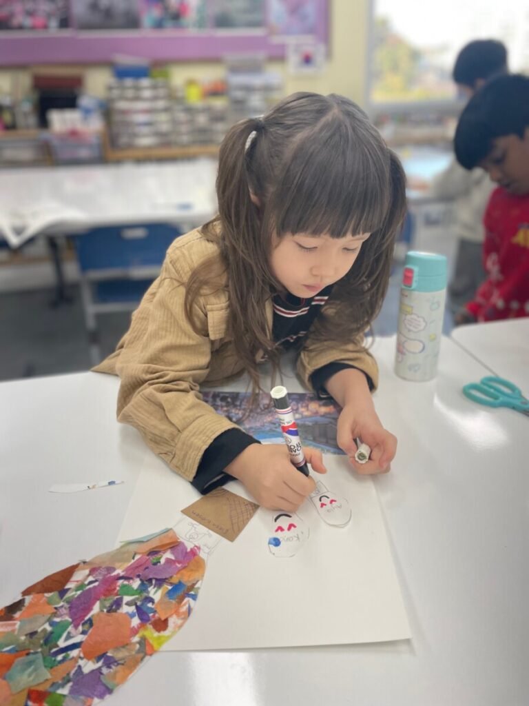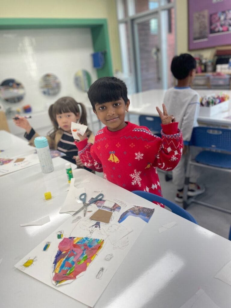 Additionally, we began making Christmas stockings using sewing skills. The students punched holes in the stockings, threaded thick, blunt needles with yarn, and started creating beautiful Christmas stockings. Next time, we’ll add more decorations to make the stockings even more festive and complete.