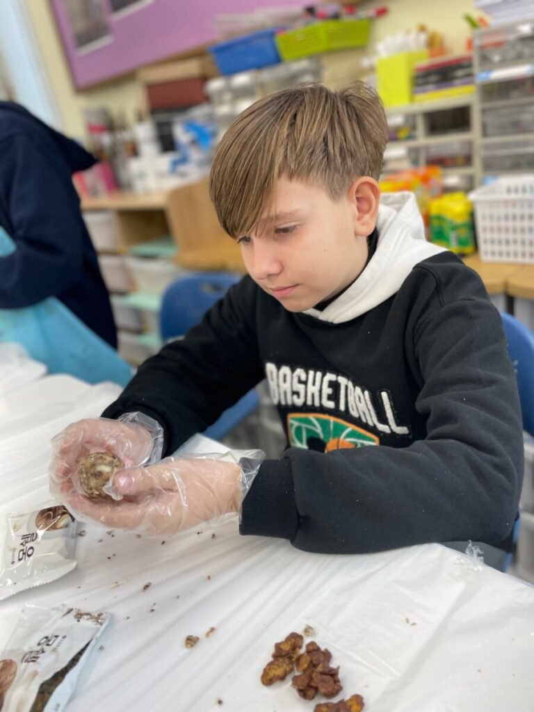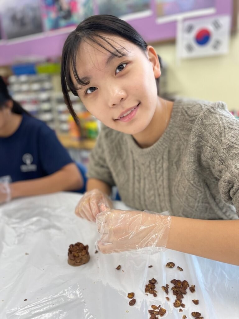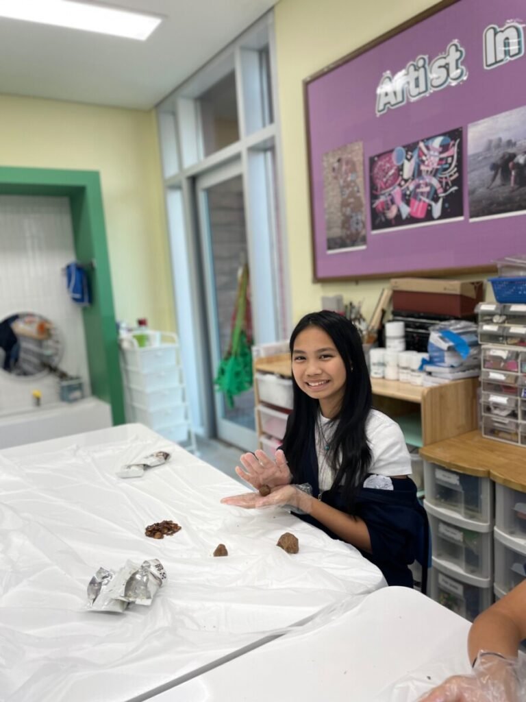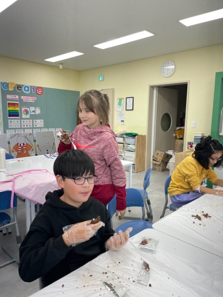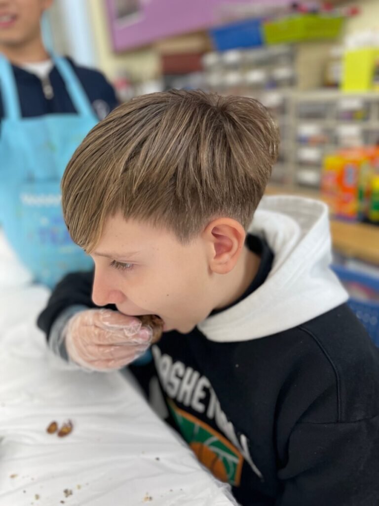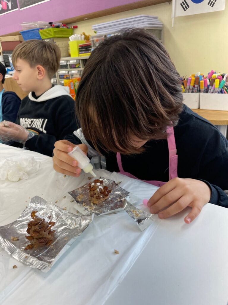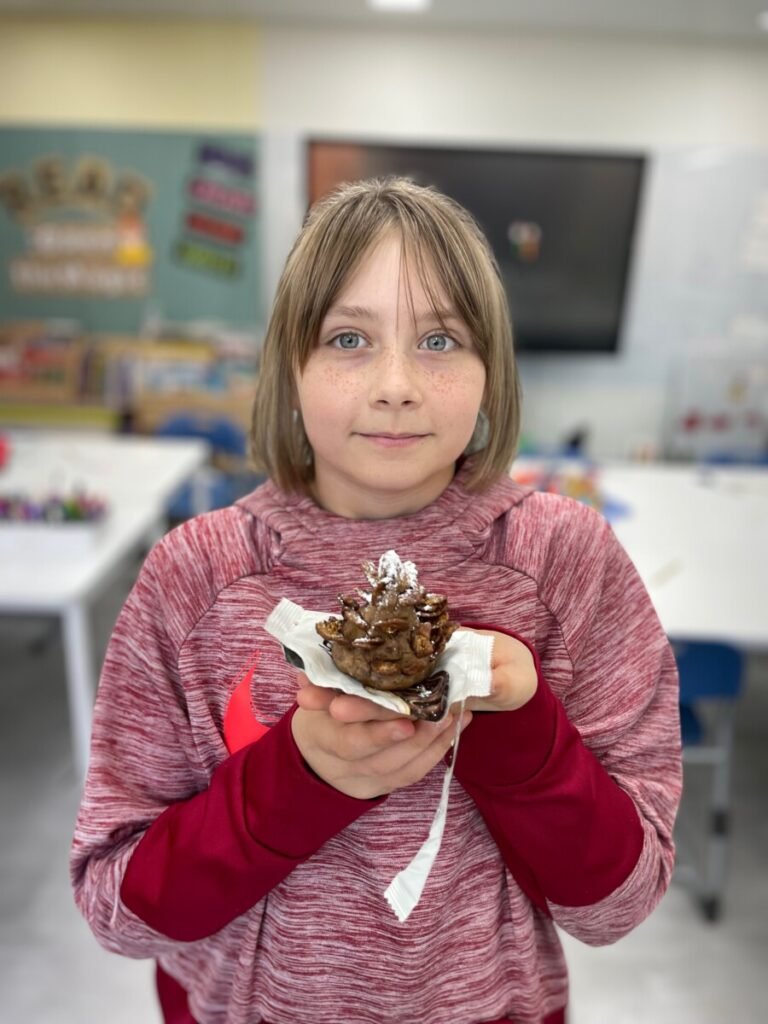 They created Christmas stockings and trees and even painted and designed a festive photo zone perfect for holiday events. They also had a delightful time making snowy pine cone trees using chocolate pies, chocolate chips, and powdered sugar—and enjoyed eating them together!