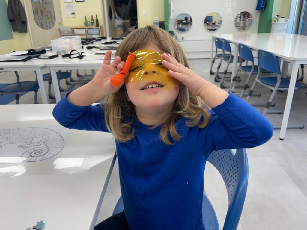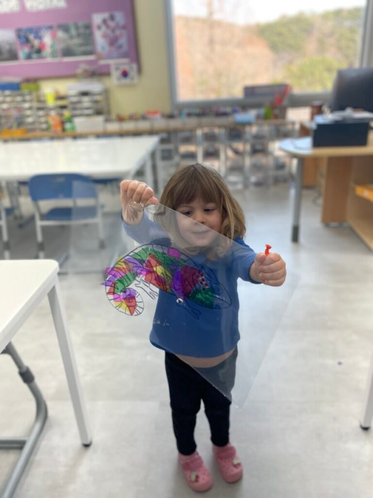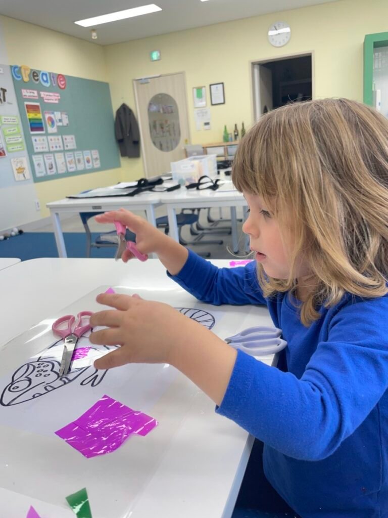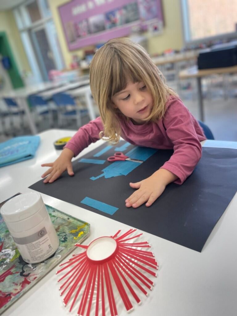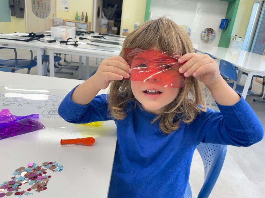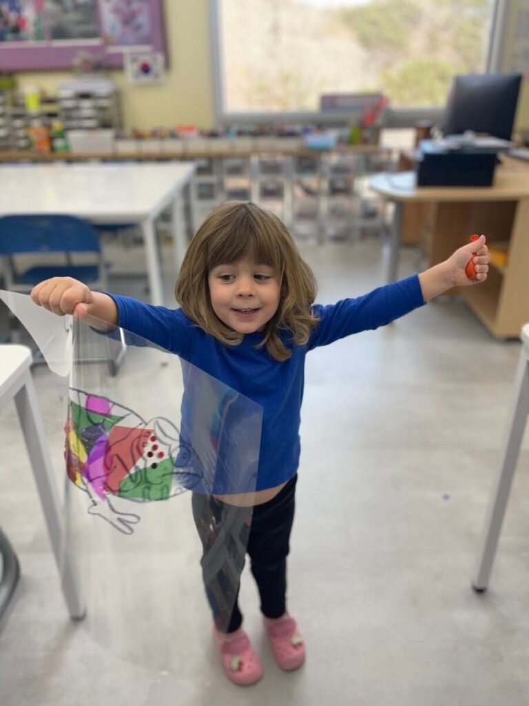 Maddie loved how the colours shone through the paper, and she was very proud of her work.