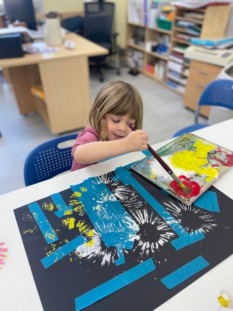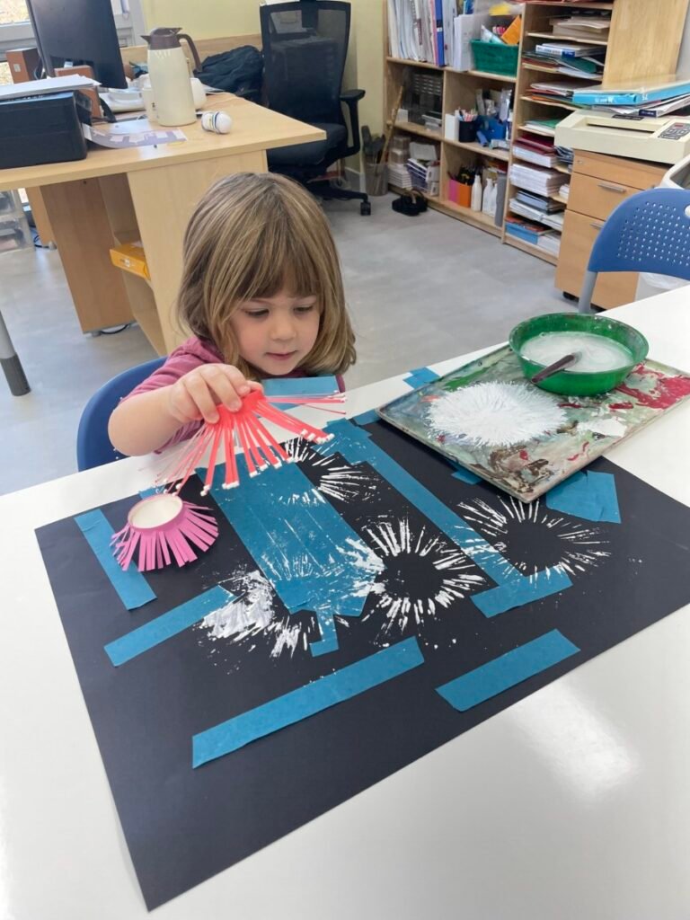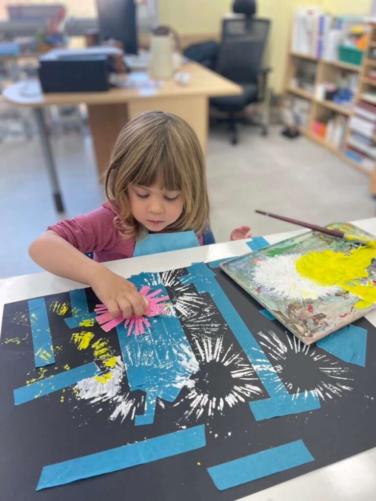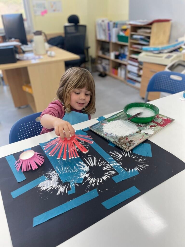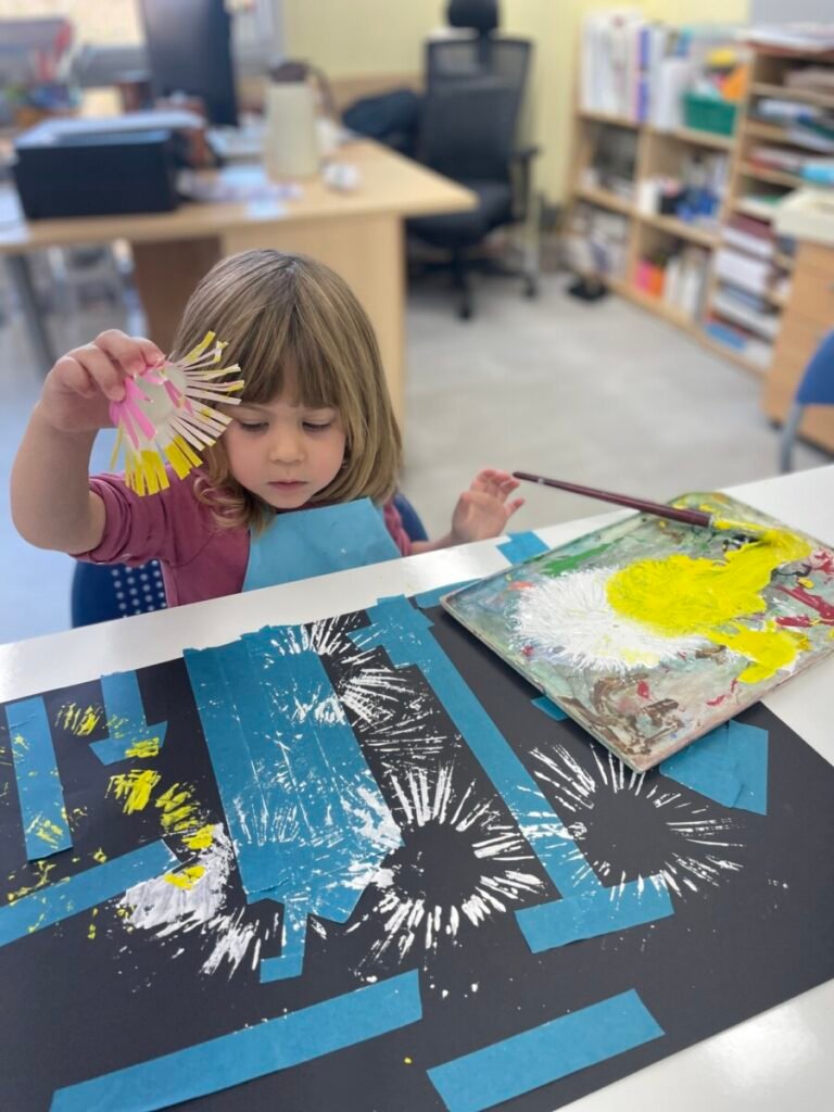This week, Maddie and I had a fun and creative art activity. During our first session, I showed Maddie a short video clip about fireworks to inspire her. We then explored how to create fireworks in art.