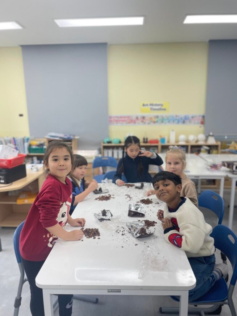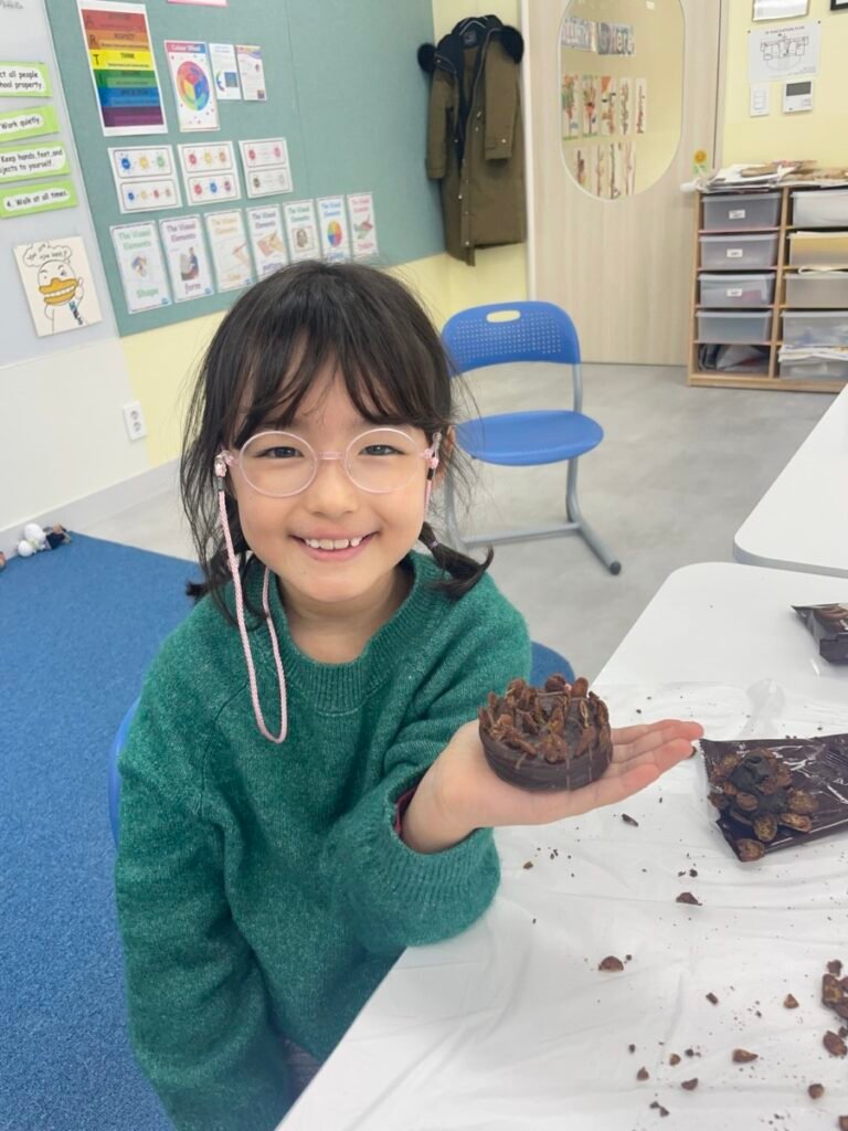 In addition, we also made a pine tree chocolate cake! The kids absolutely loved it and said it was the best art lesson ever. 😊 Their excitement and joy made the activity even more special. I will keep striving to create fun and engaging art lessons like this in the future!
