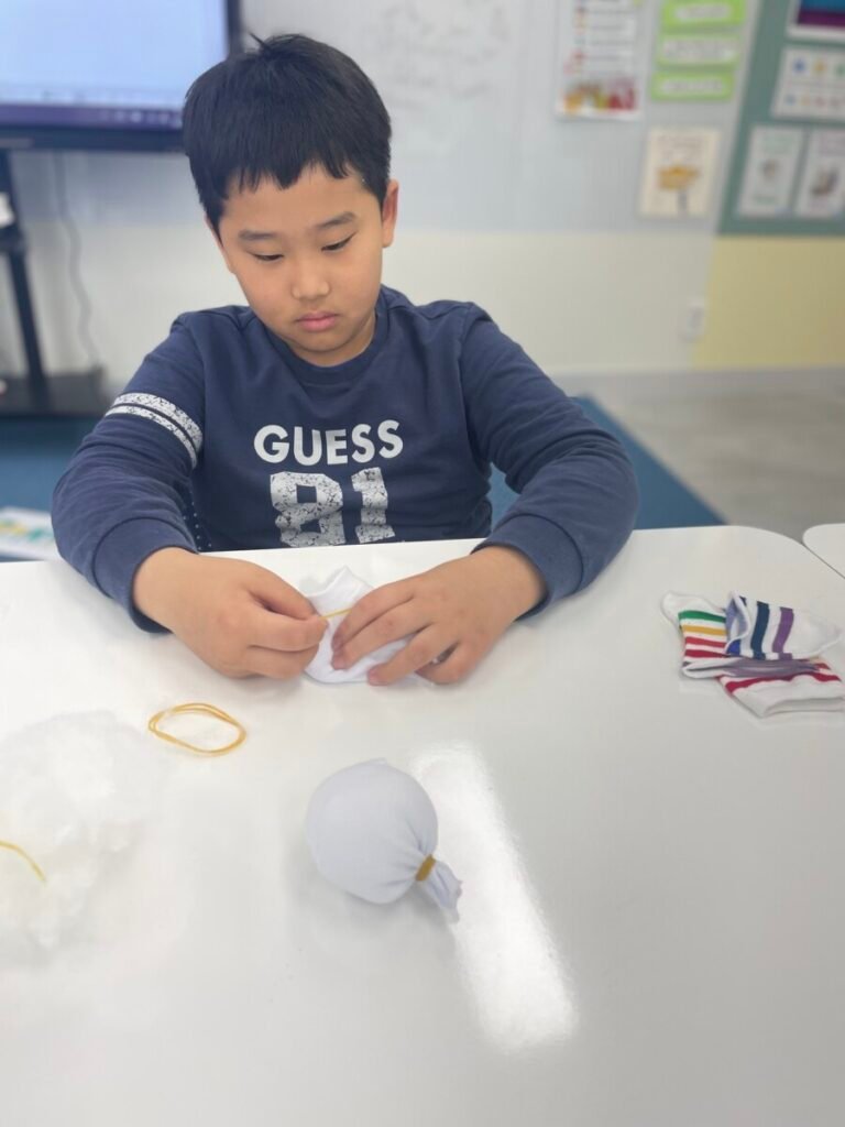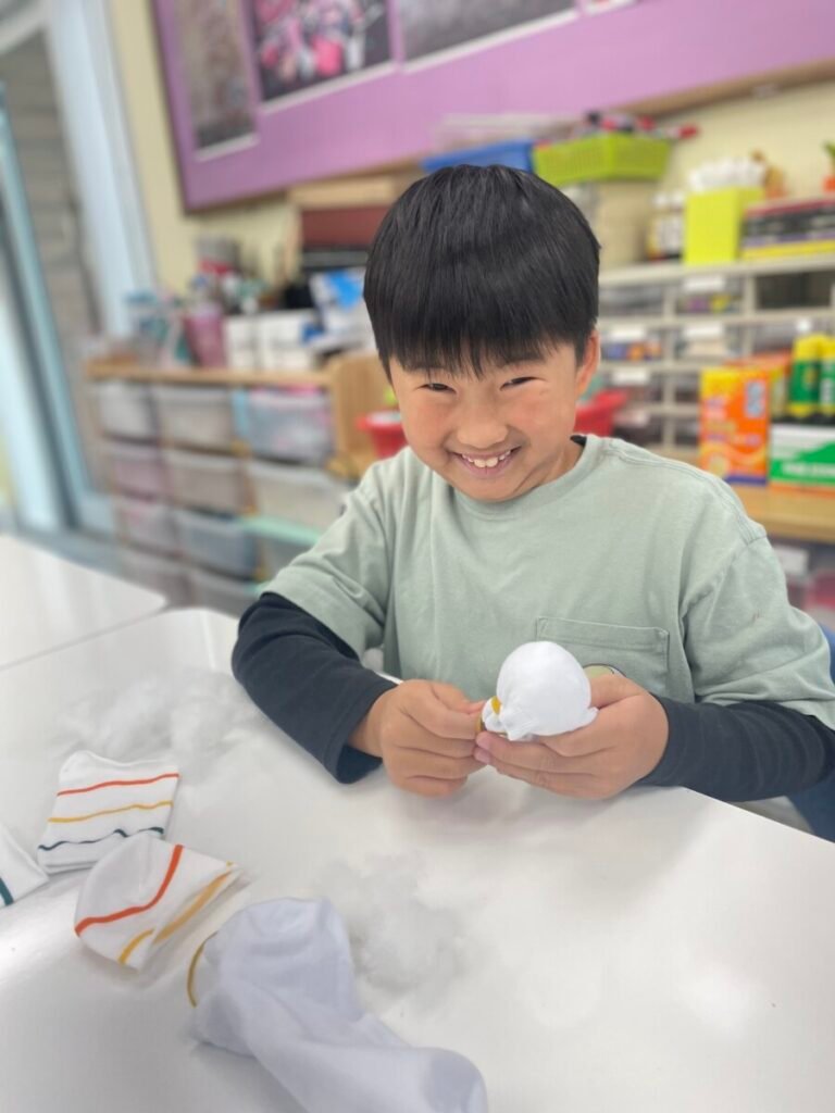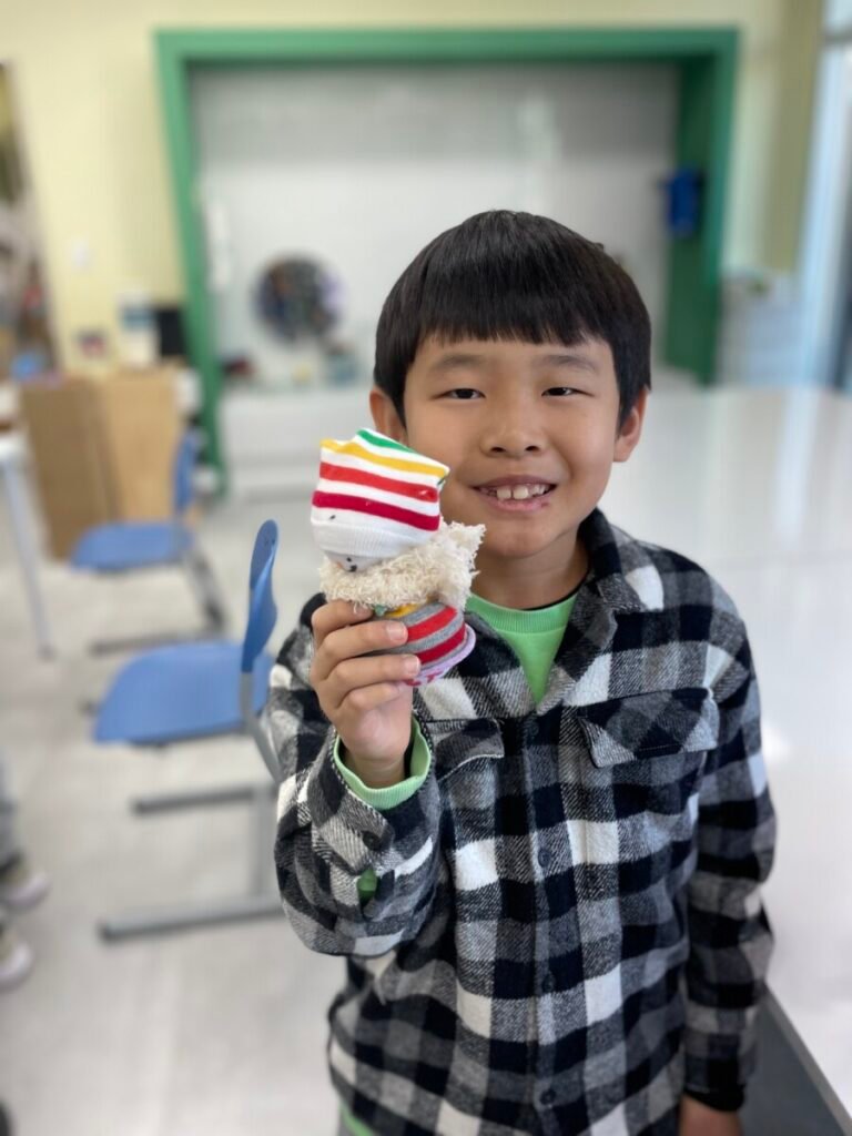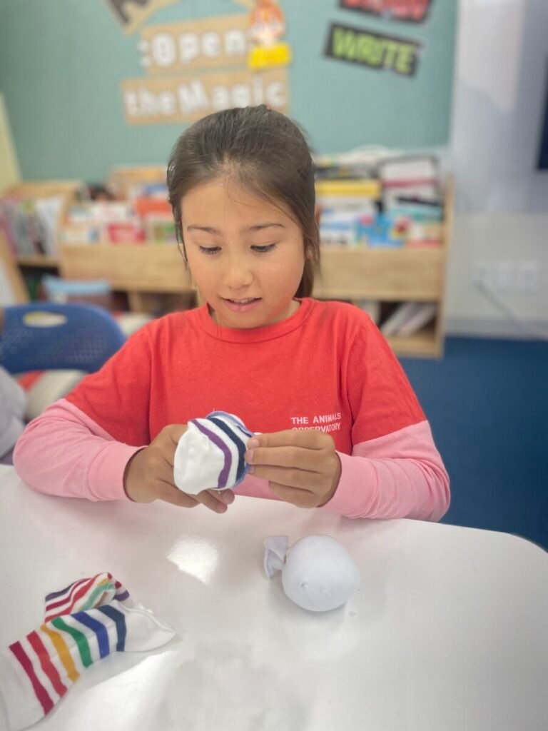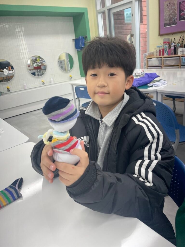 This week marked the beginning of the new term, and I planned a fun and creative activity for the students. We started making adorable snowman dolls using socks and cotton wool. First, we cut the socks in half and filled them with cotton wool to shape the snowman. Then, we used patterned socks to design hats and clothes, incorporating sewing to add detail and creativity. Although the kids haven’t completed their projects yet, I’m excited to see how wonderful their snowmen will turn out. It’s been a great start to the term!