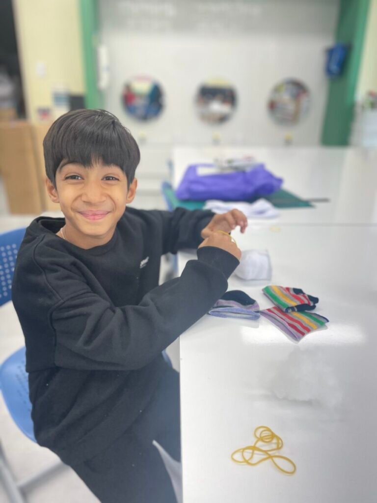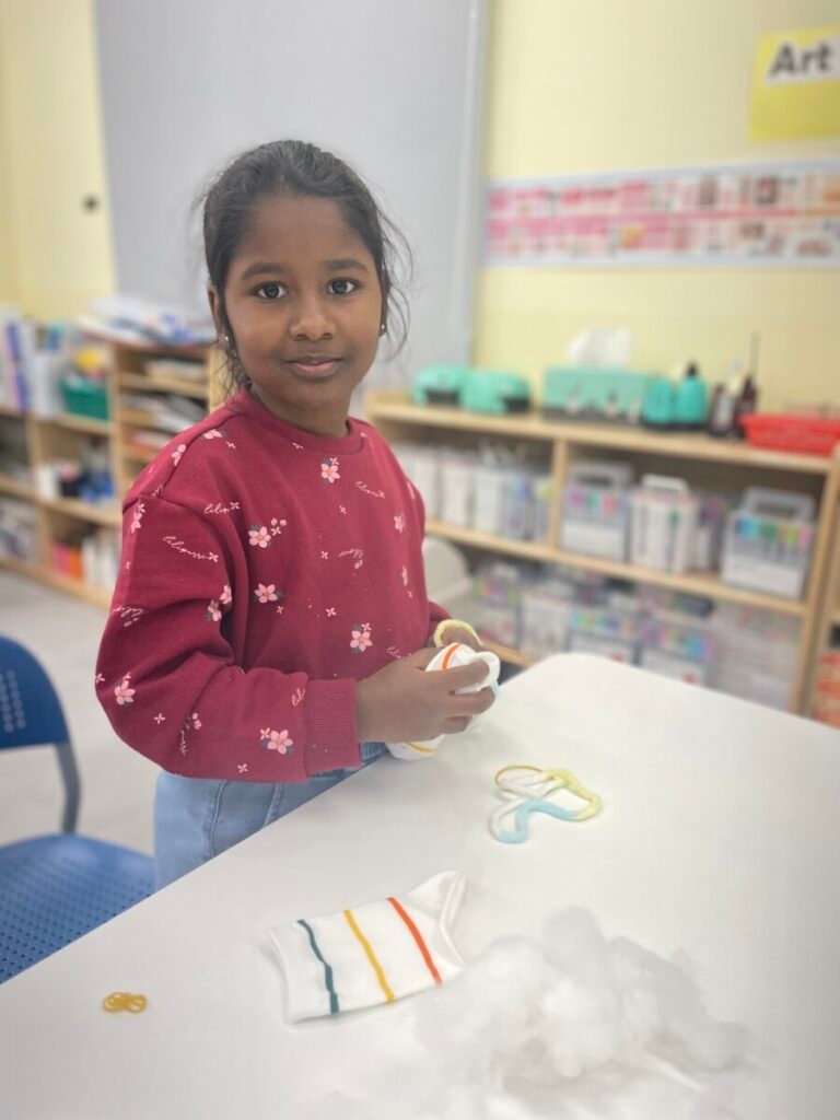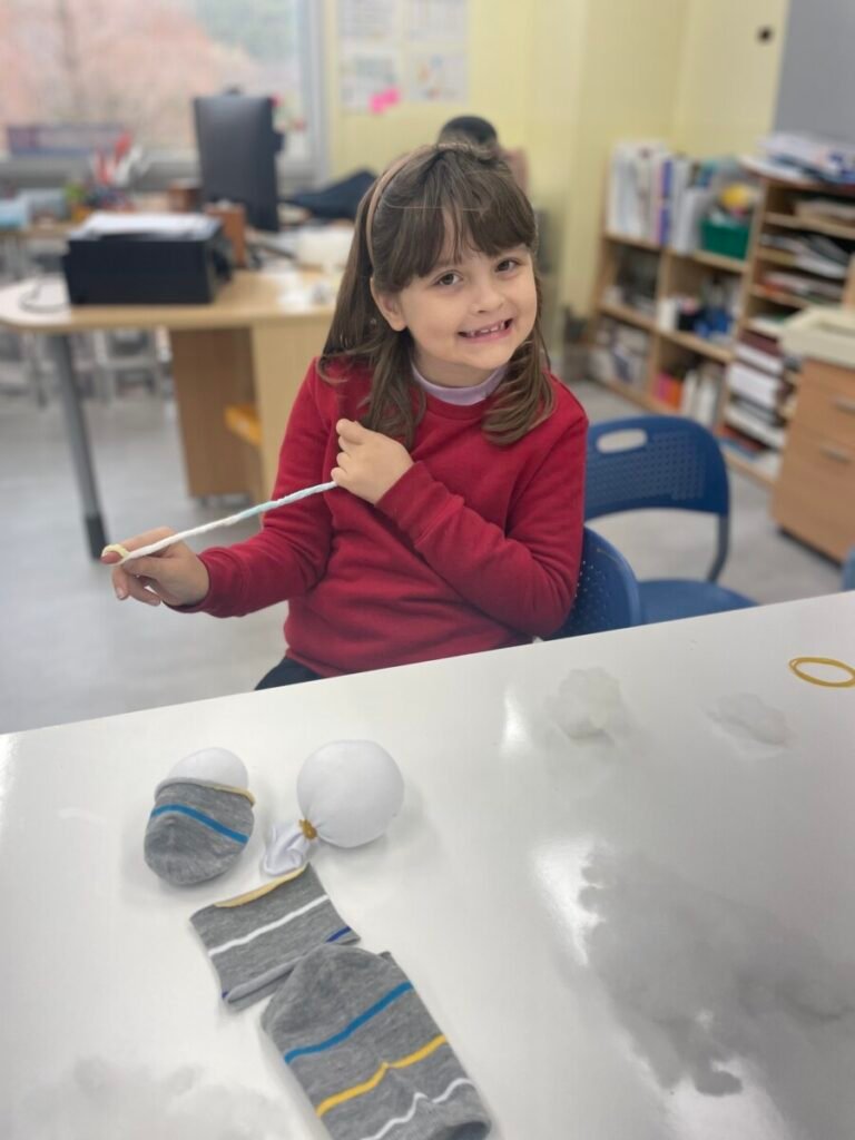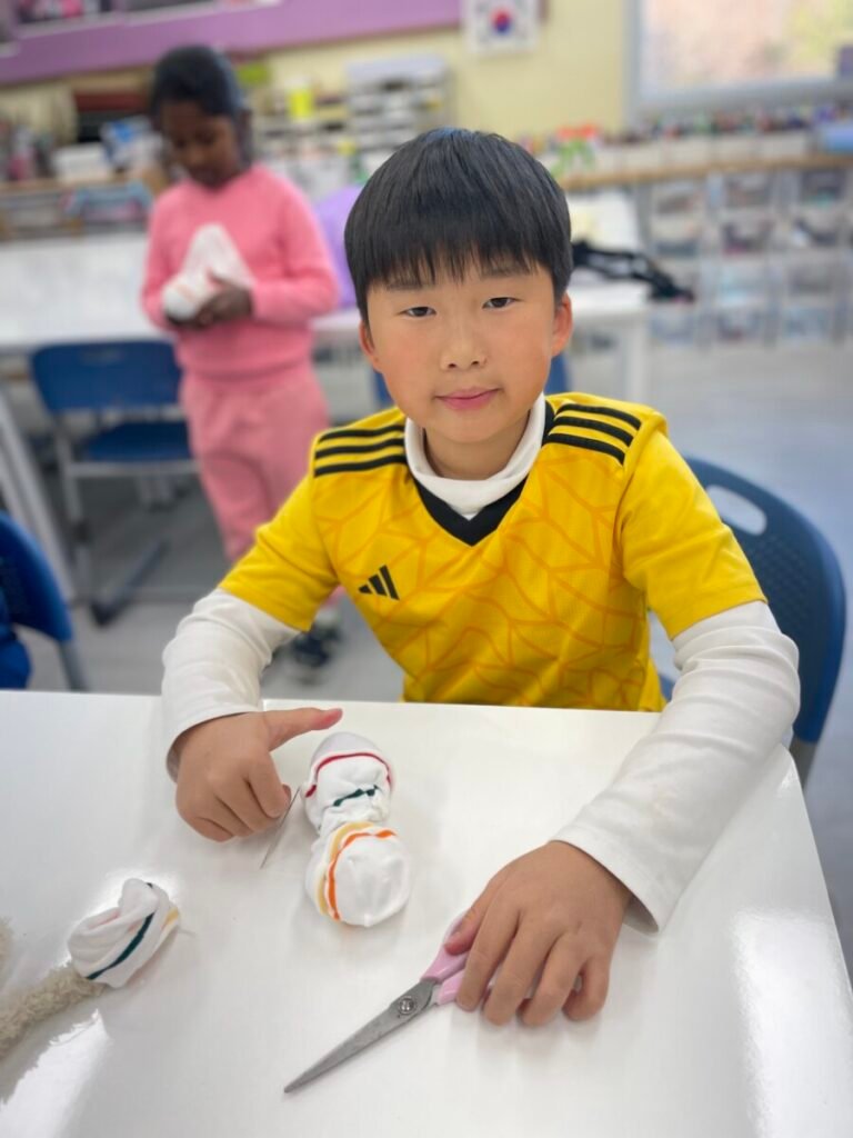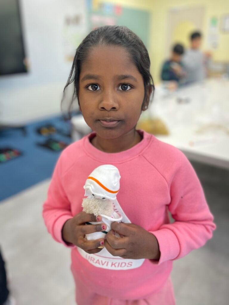 This week marked the beginning of the new term, and I planned a fun and creative activity for the students. We started making adorable snowman dolls using socks and cotton wool. First, we cut the socks in half and filled them with cotton wool to shape the snowman. Then, we used patterned socks to design hats and clothes, incorporating sewing to add detail and creativity. Although the kids haven’t completed their projects yet, I’m excited to see how wonderful their snowmen will turn out. It’s been a great start to the term!