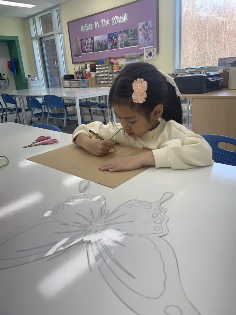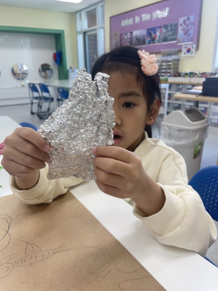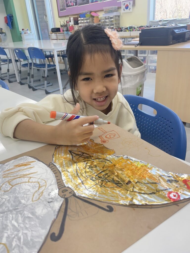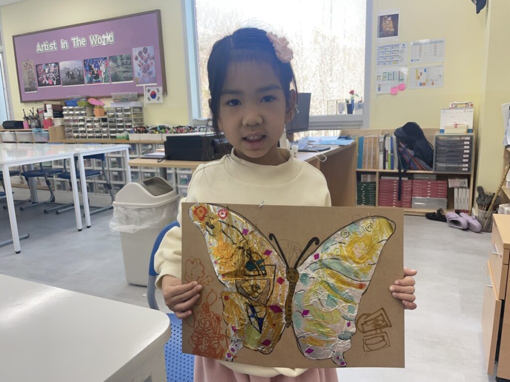 Yeseo put great effort into shaping and colouring foil to create beautiful, shiny butterfly wings.