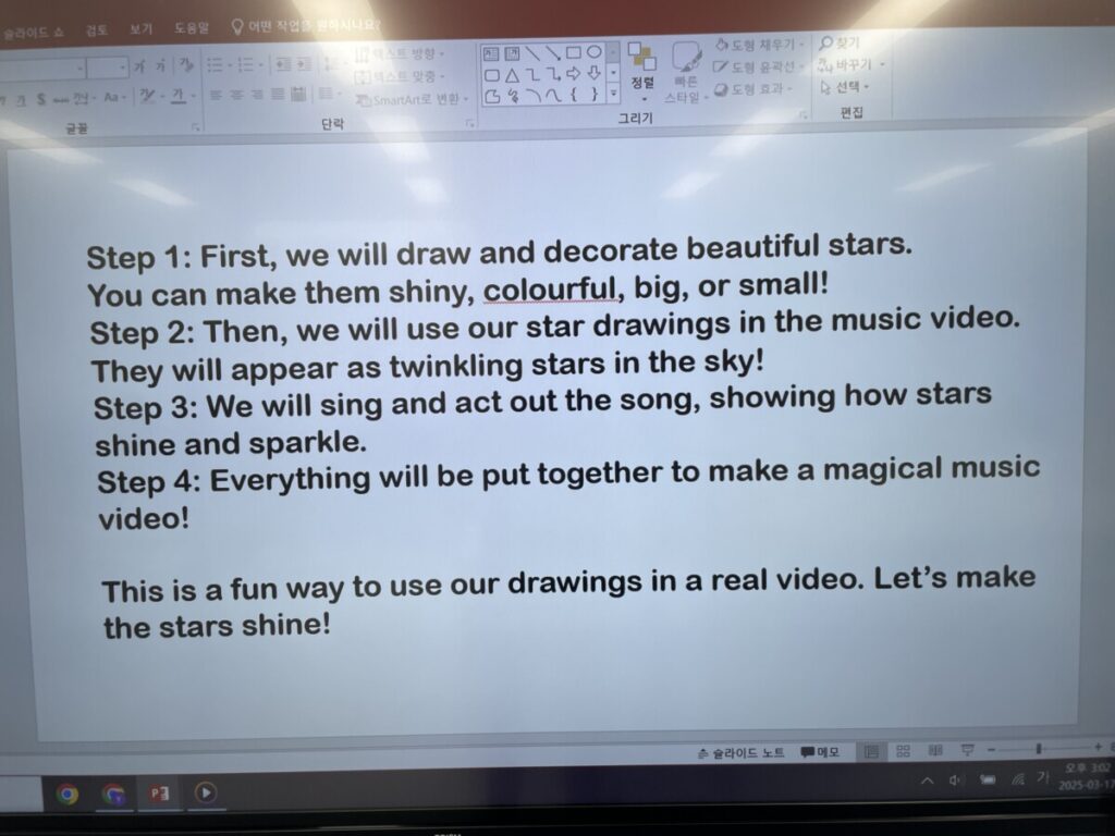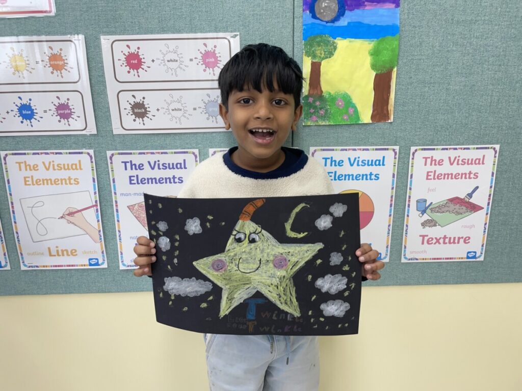After that, we practiced singing the song and acting out fun movements to show how stars shine and sparkle. This helped us see how art, music, and movement can all work together to make something special.