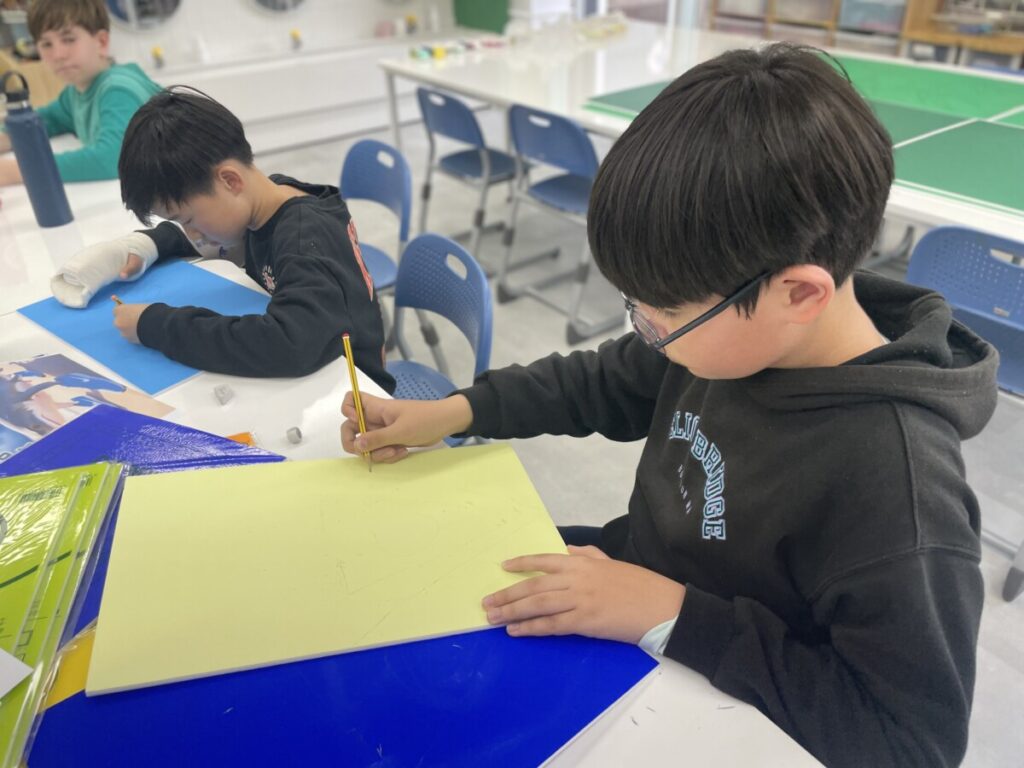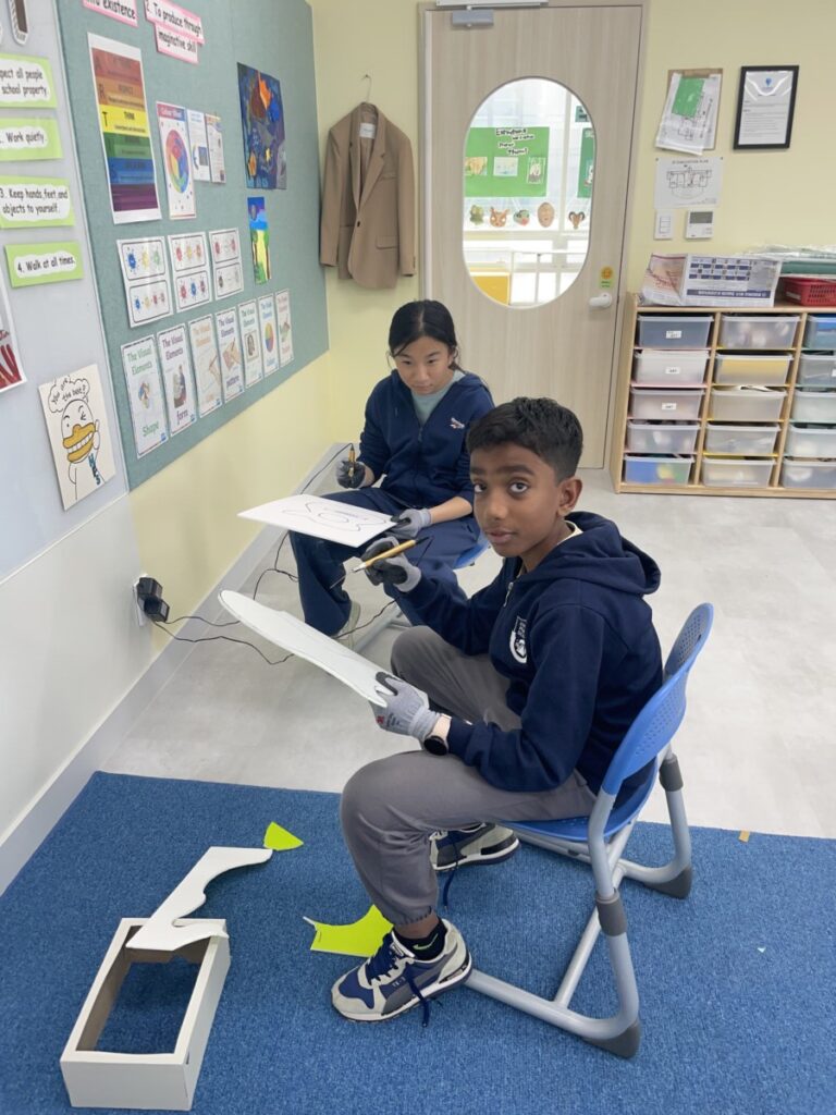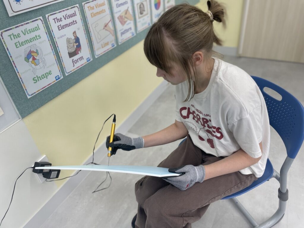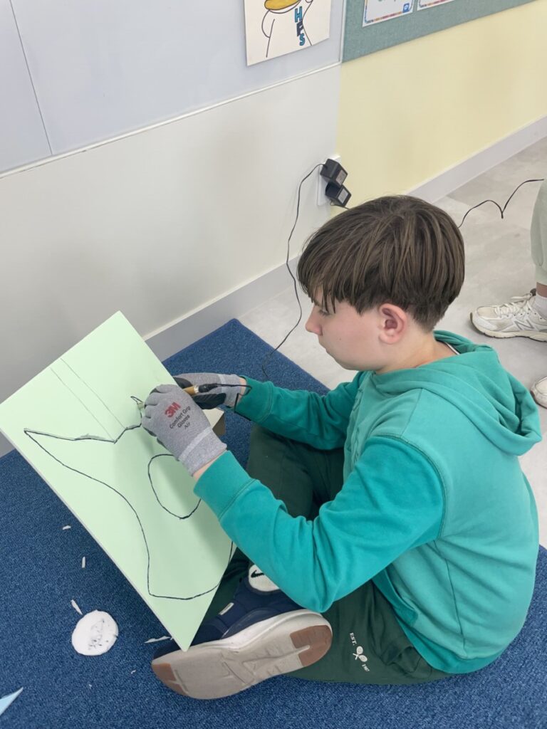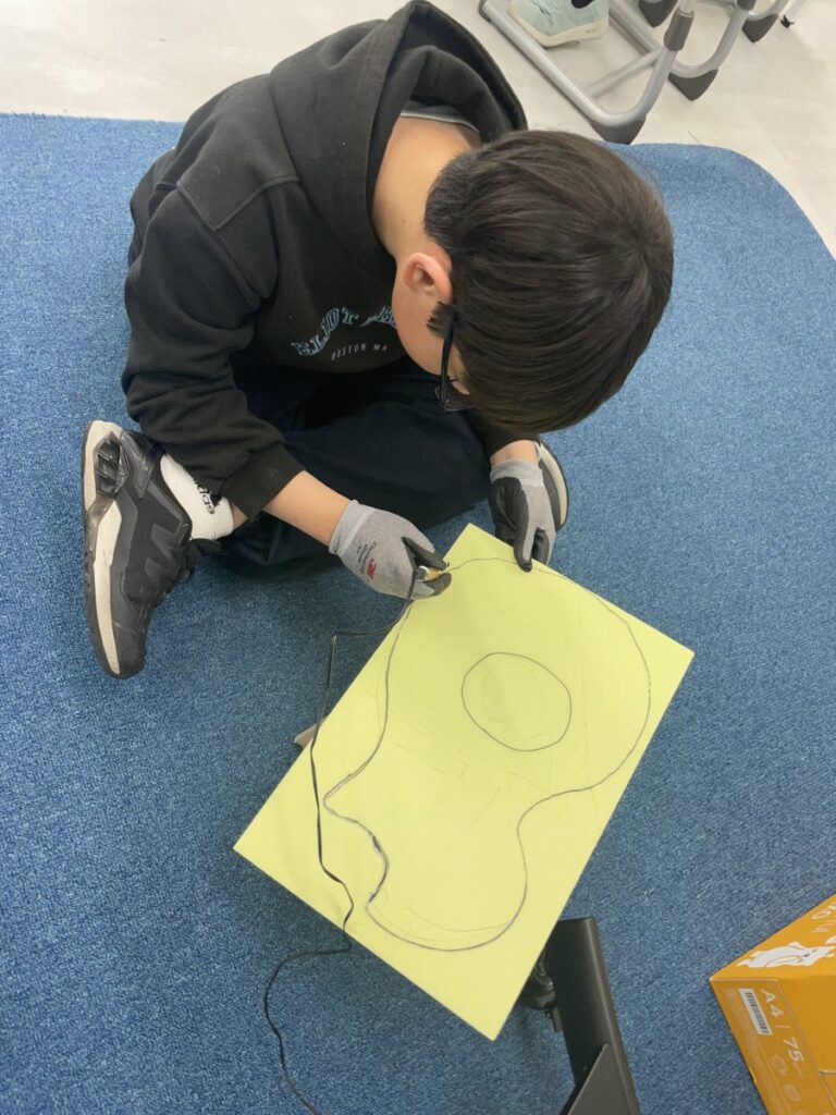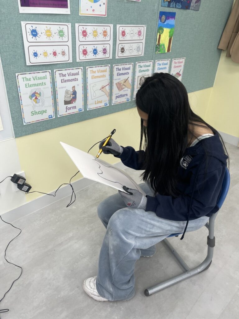 This ongoing project is helping students understand how to transform a flat drawing into a 3D artwork, while also building their confidence with tools and materials.