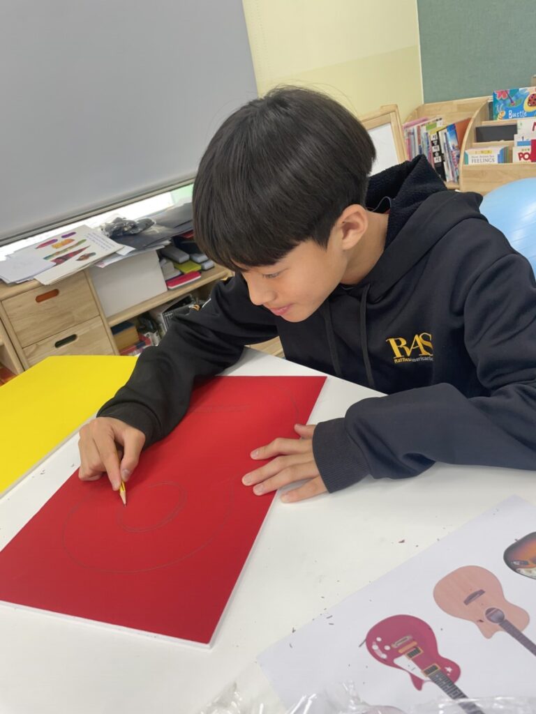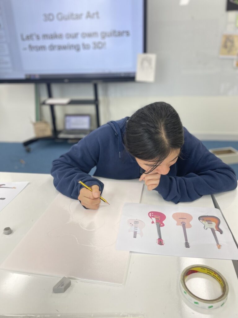 This week, we began our exciting 3D Guitar Art project. The year7-9 students started by designing the body shapes of their guitars on foam board, using their creativity to explore different styles and ideas.