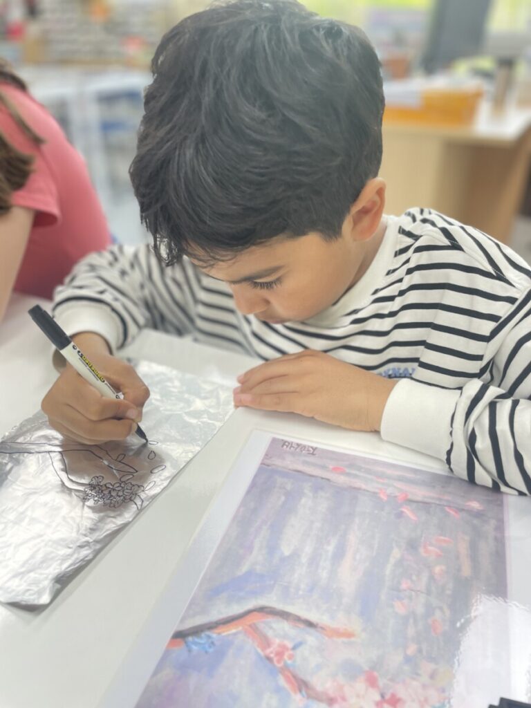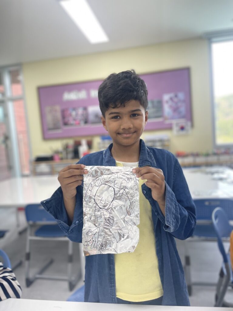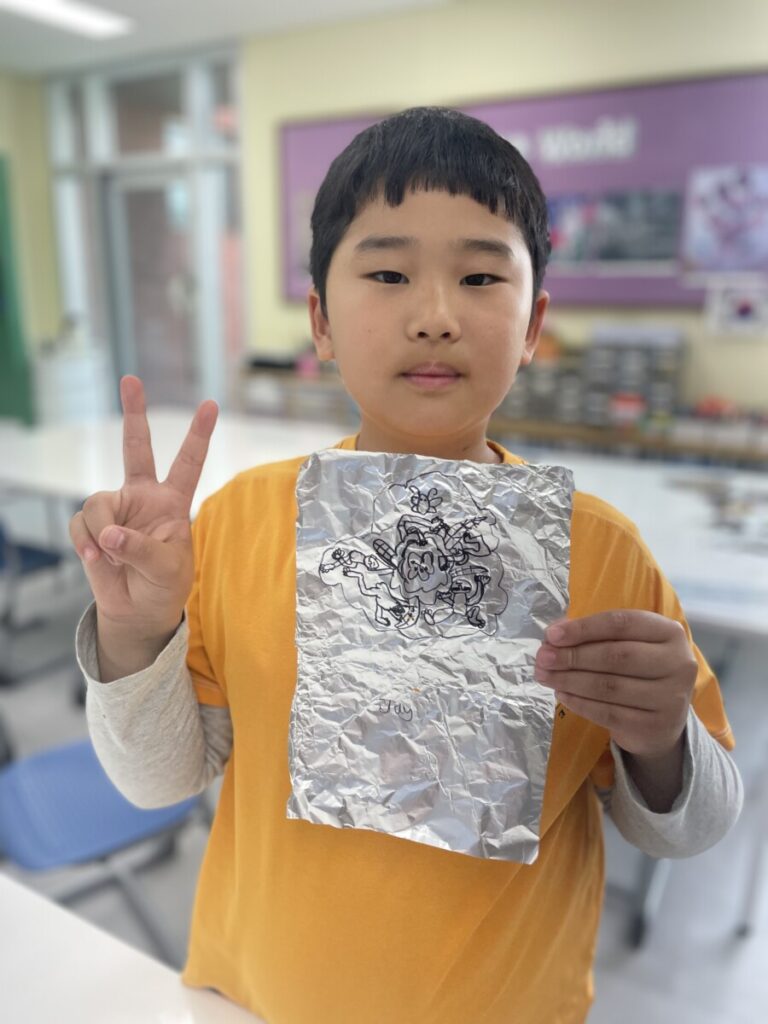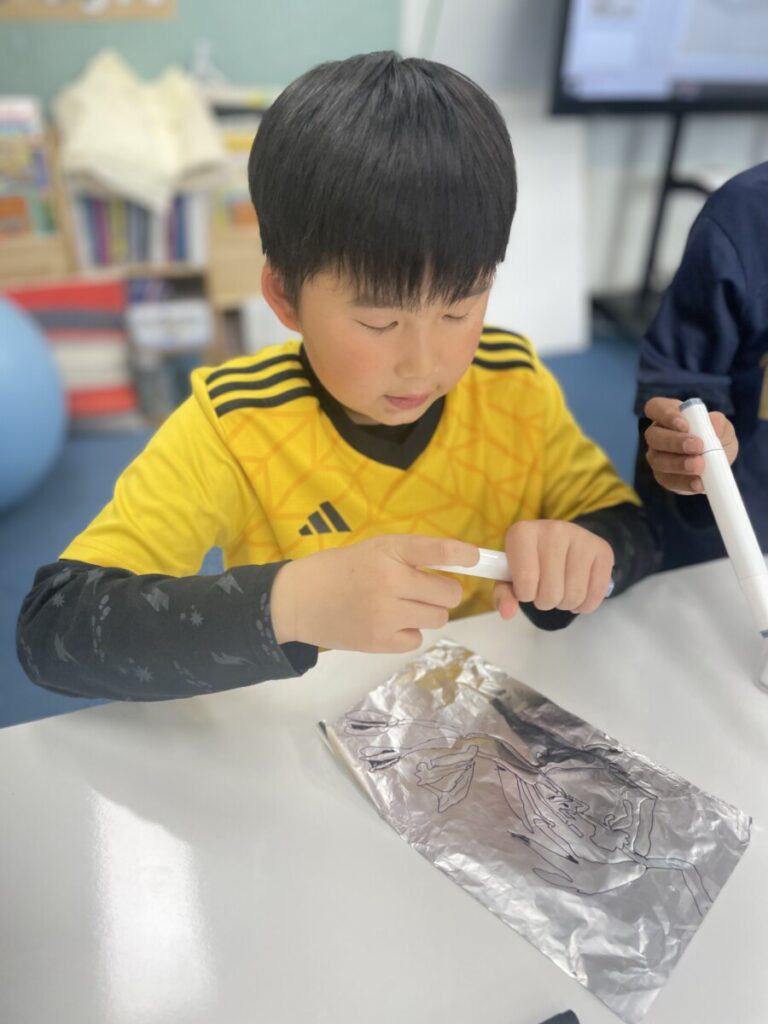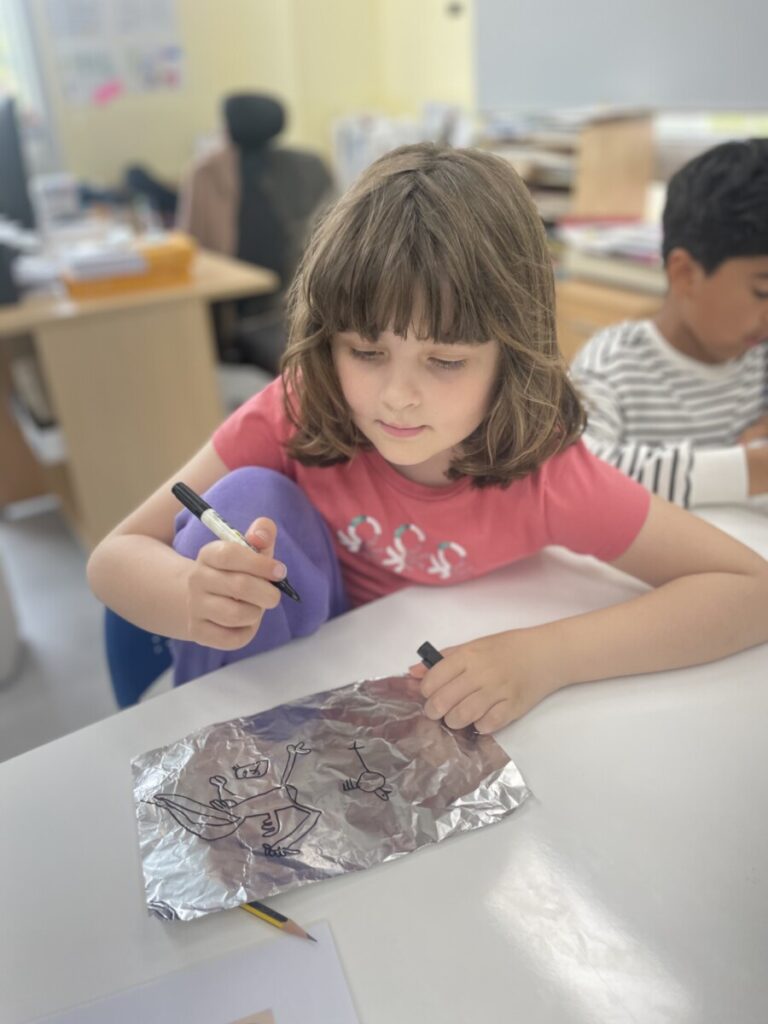 Inspired by this, we started making our own drawings on tin foil, just like he did.