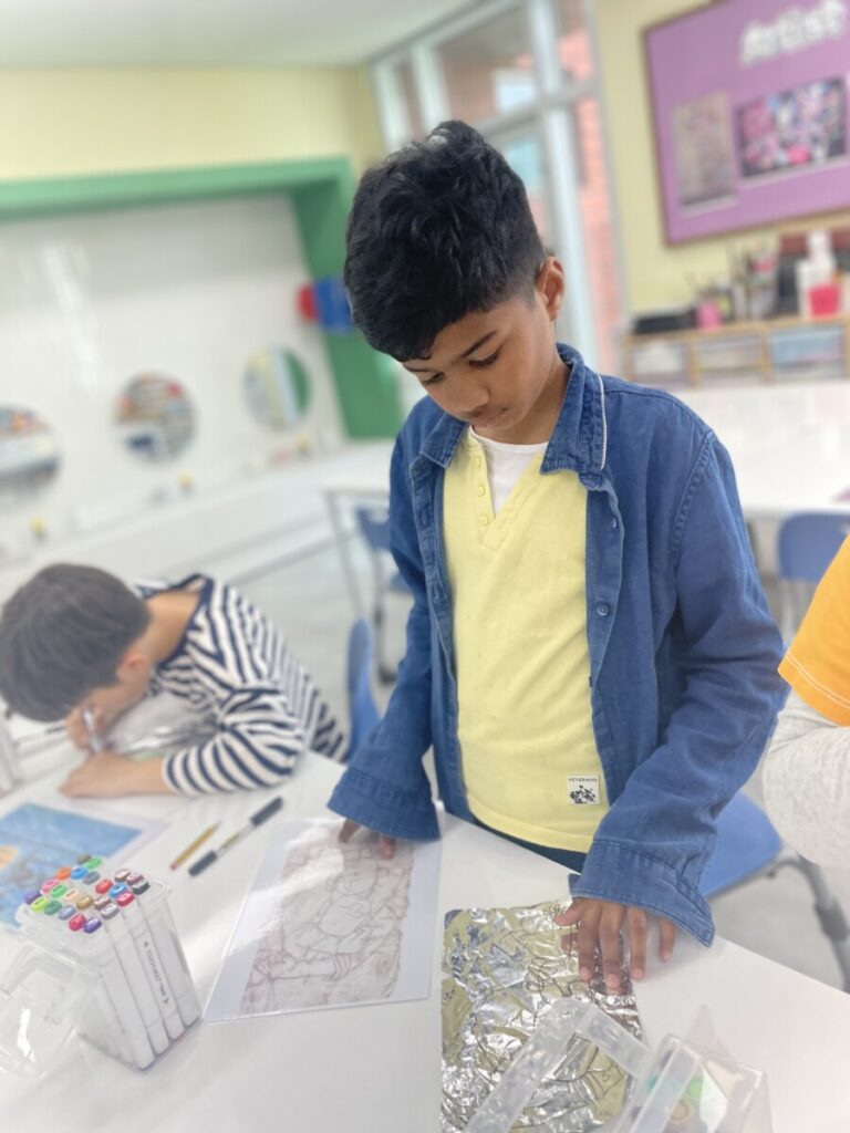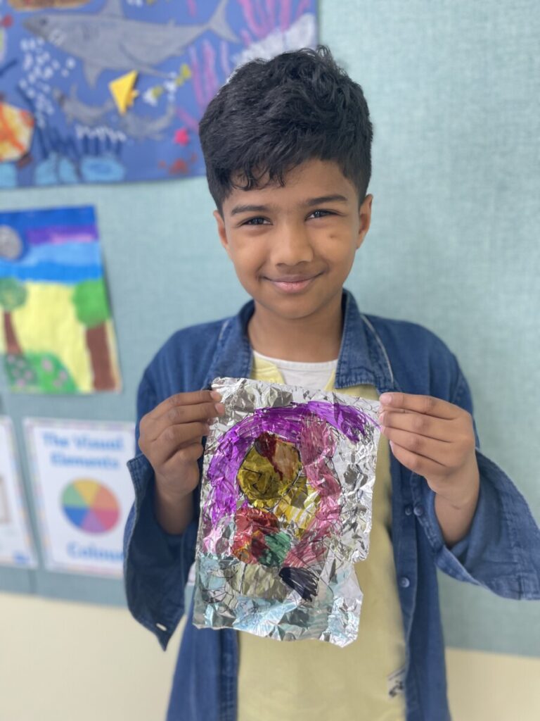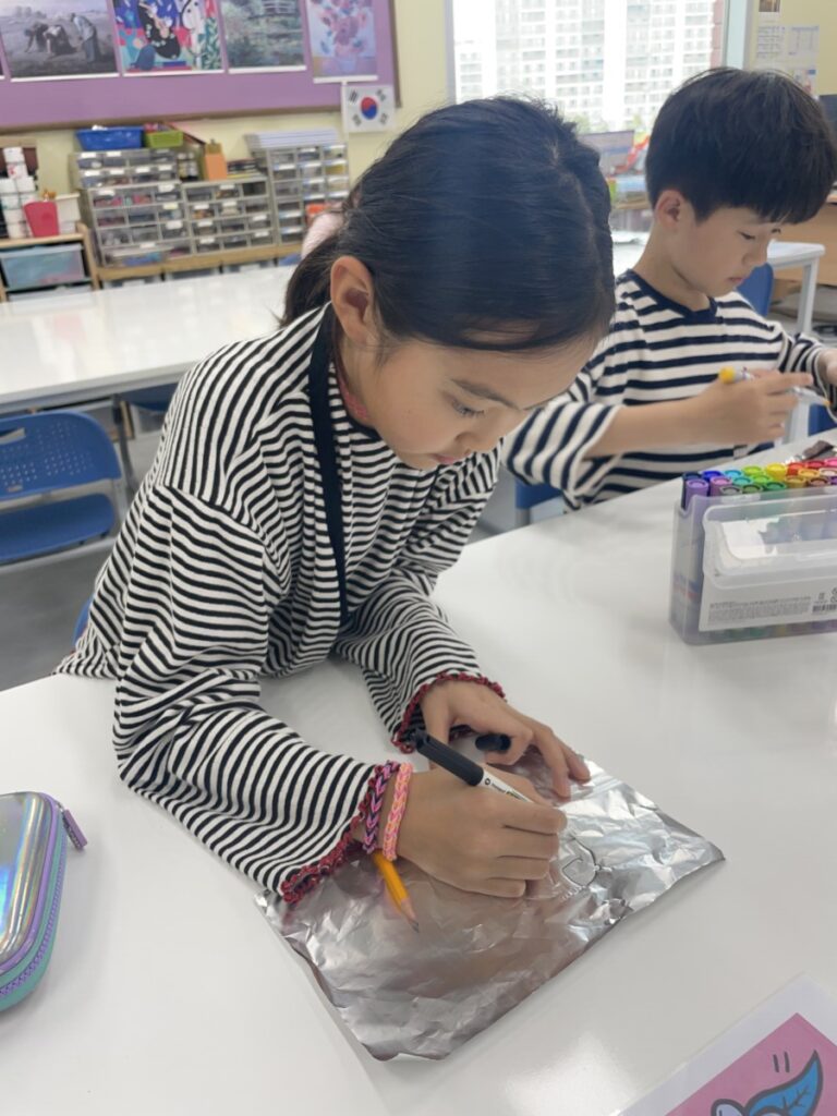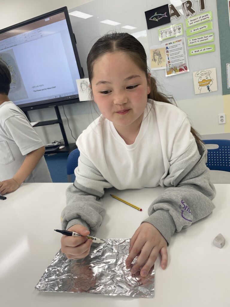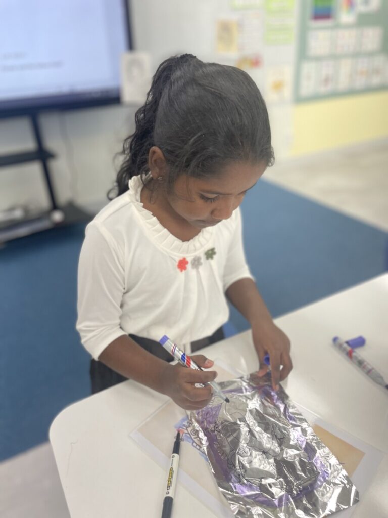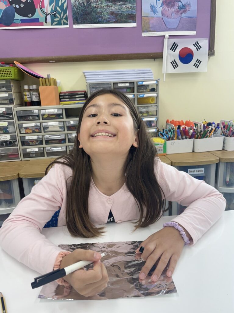 Inspired by this, we started making our own drawings on tin foil, just like he did.