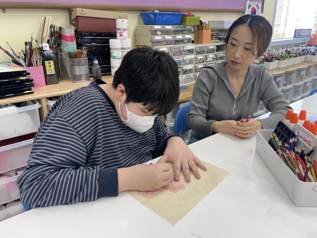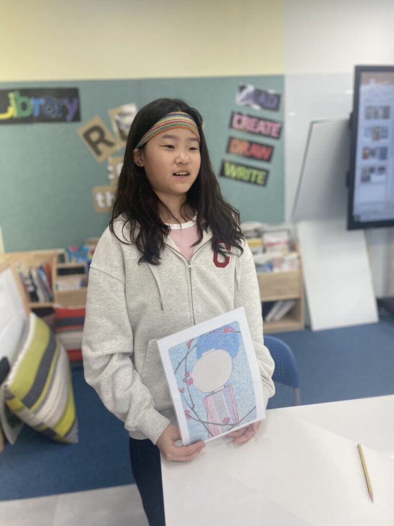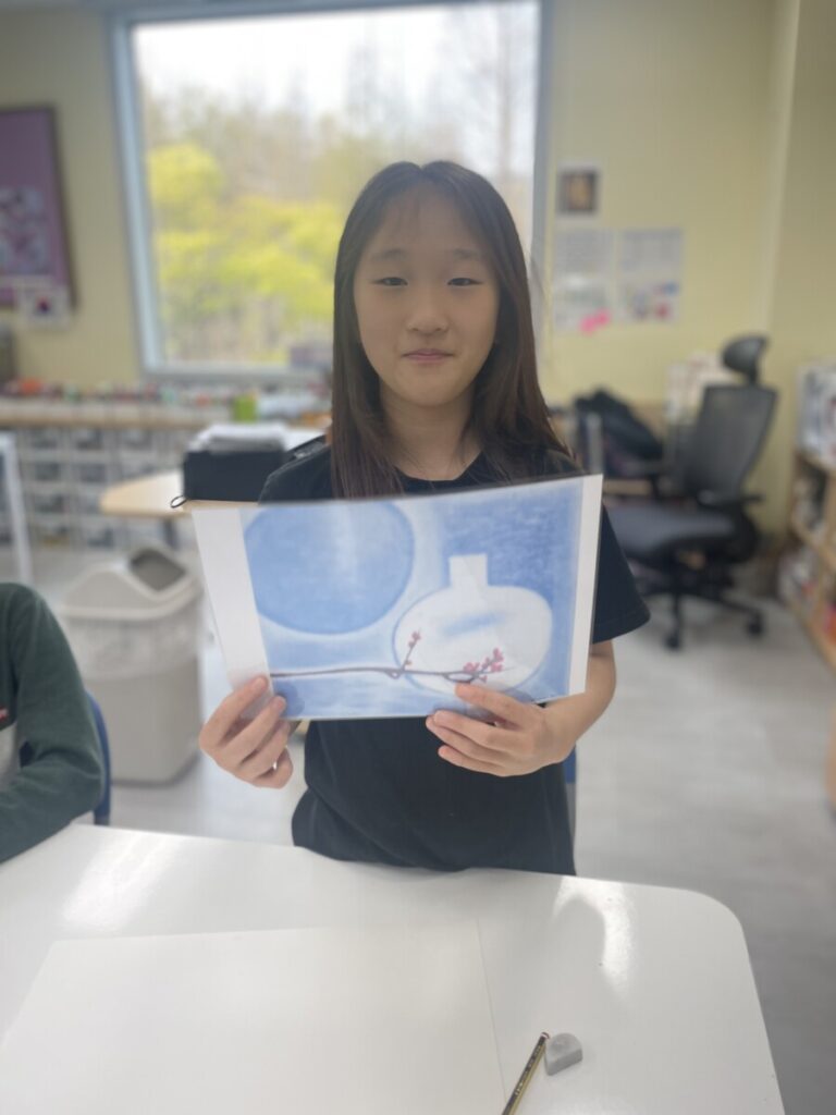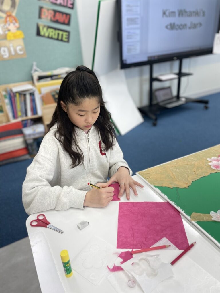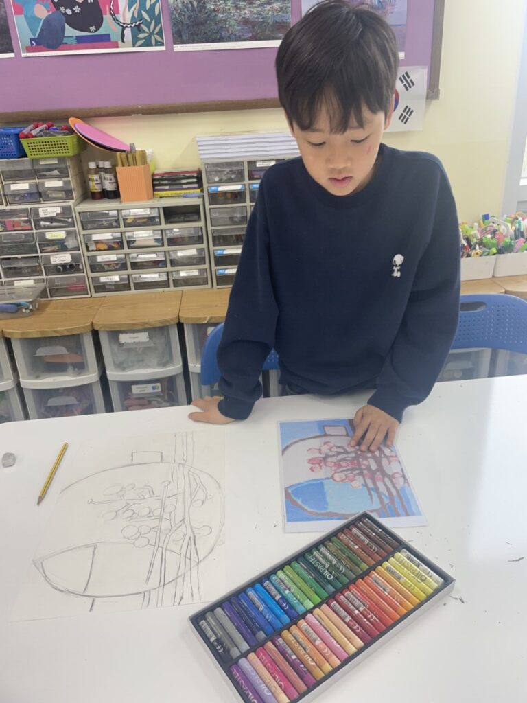 Each student selected one of Kim Whanki’s masterpieces, explained why it spoke to them, and began drawing their own version inspired by his style.