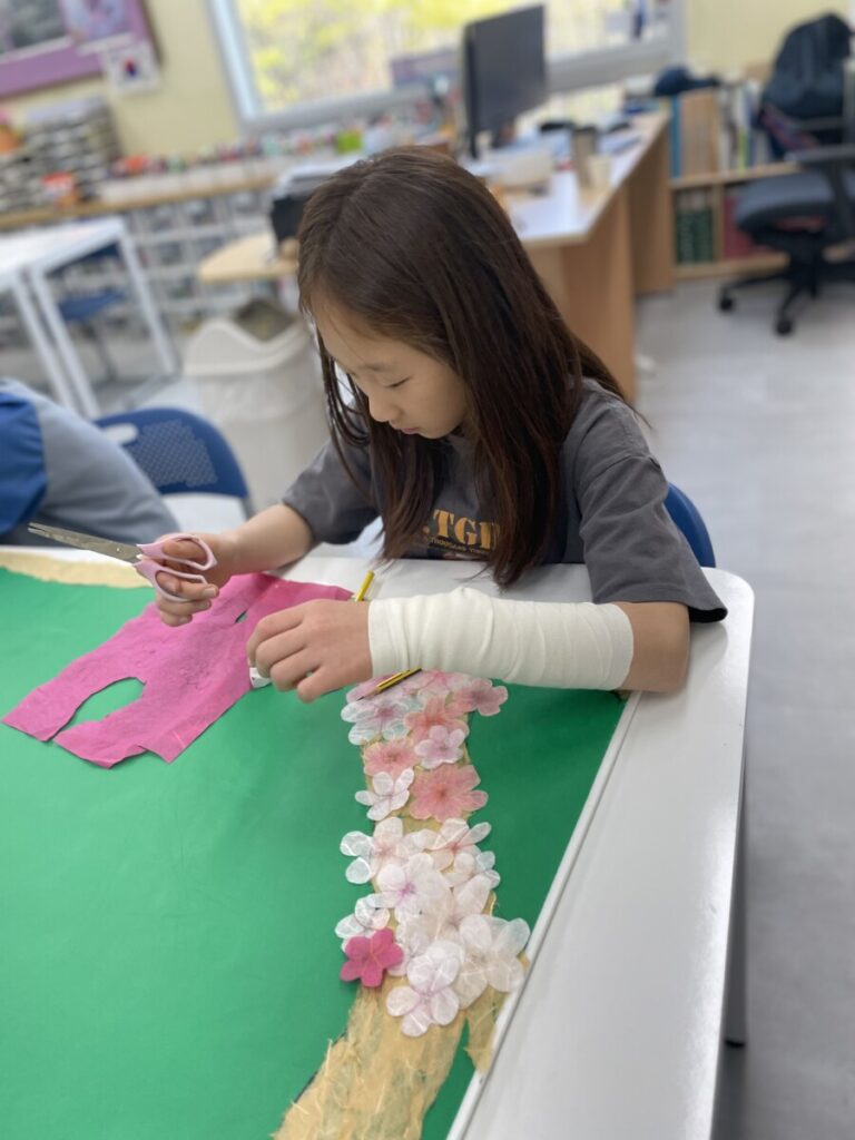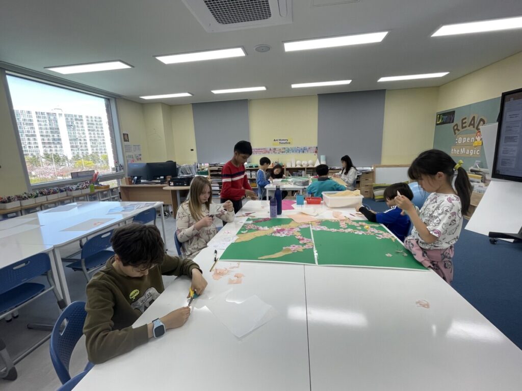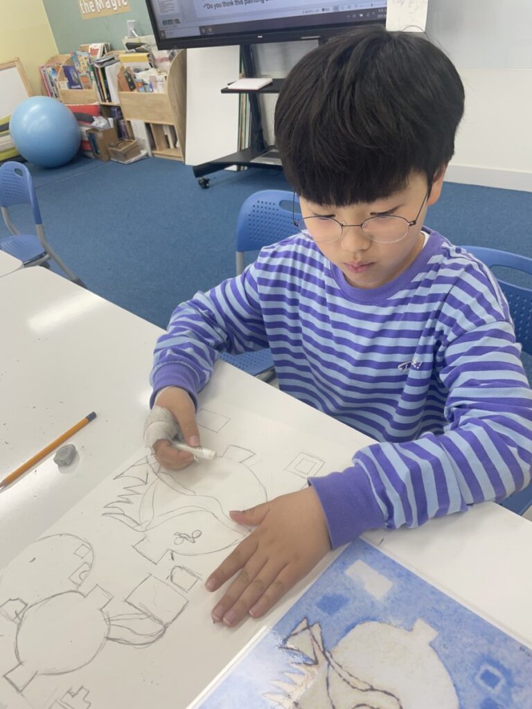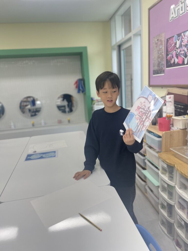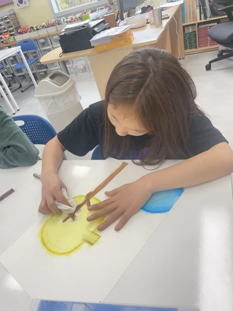 The children observed how Kim Whanki’s Moon Jar paintings feel calm, peaceful, and full of emotion. They were encouraged to look closely and reflect on what they saw.