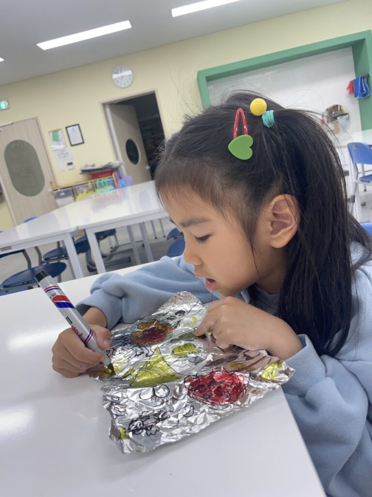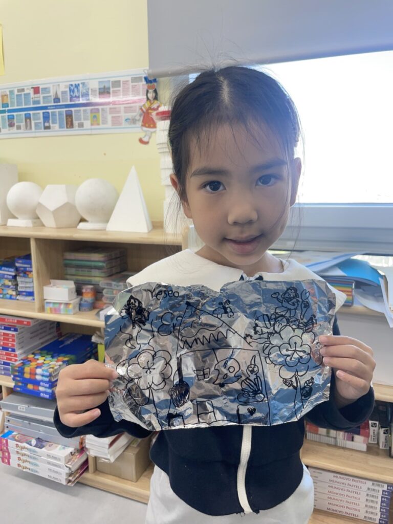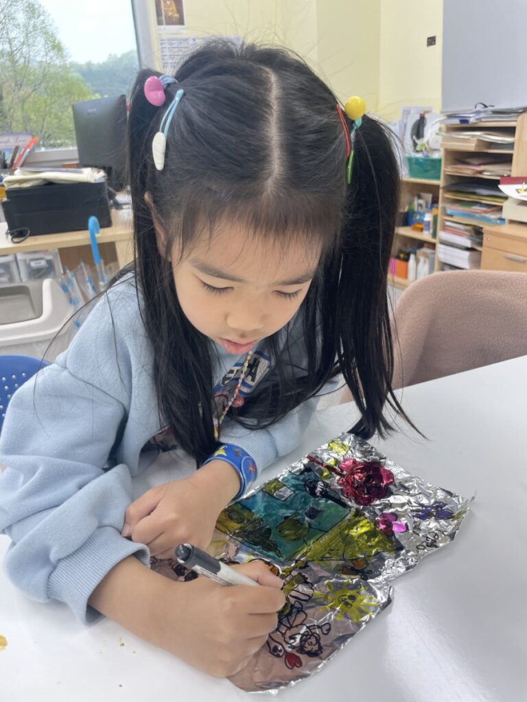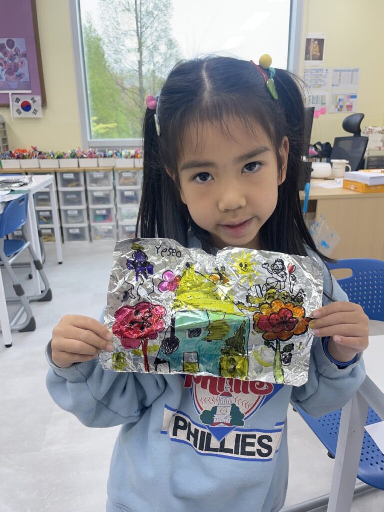 Inspired by his creativity and resilience, Yeseo began making her own artwork on tin foil, just like he did.
