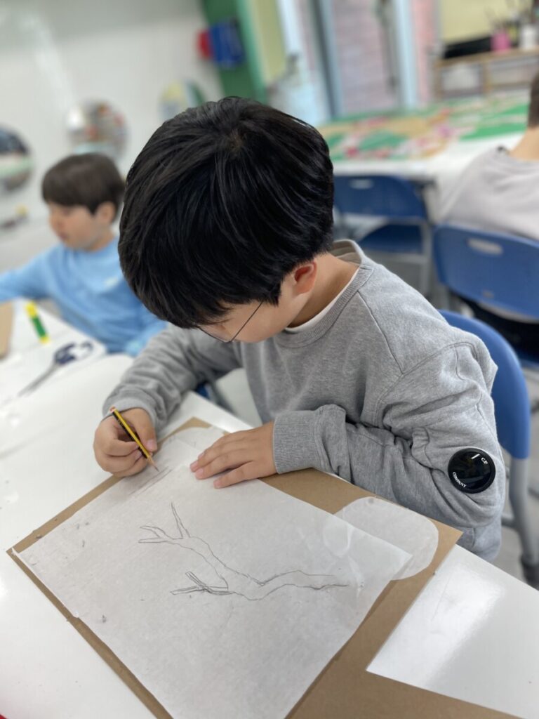 The class showed wonderful focus and creativity throughout the process. It was a lovely opportunity for them to connect with Korean art through both painting and collage techniques.