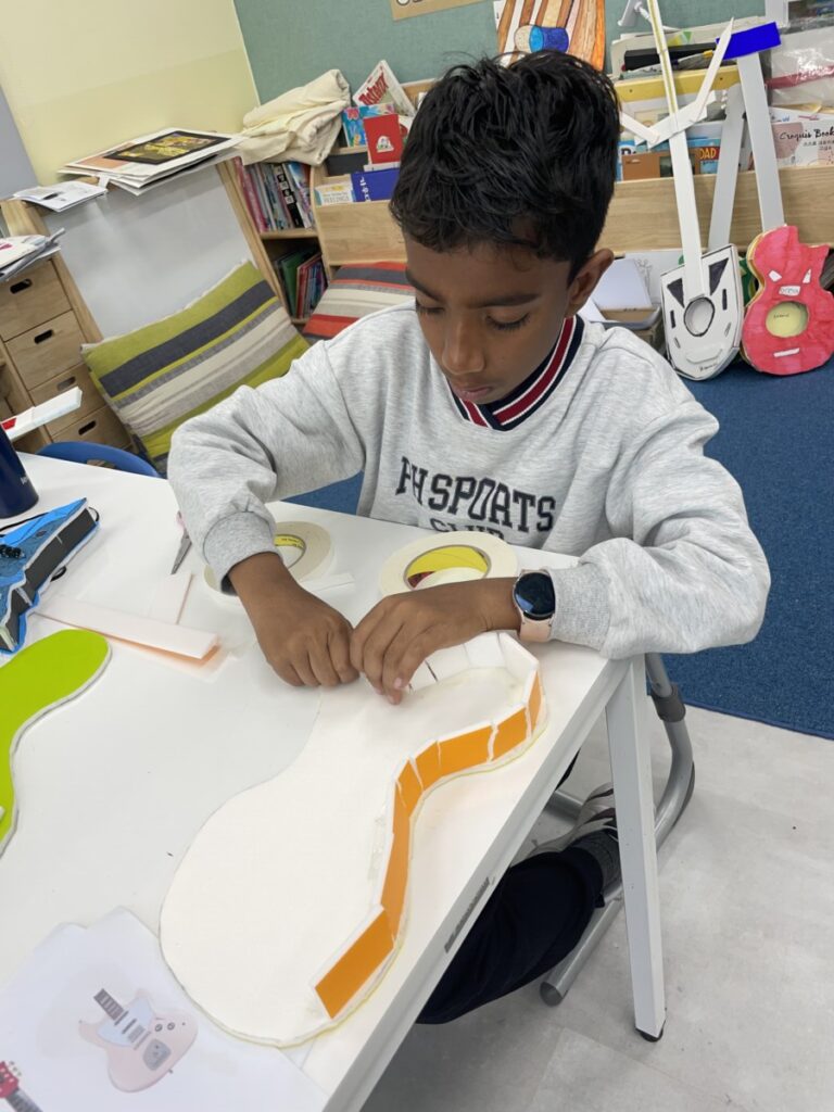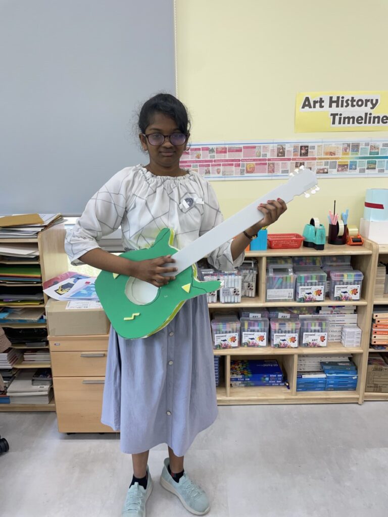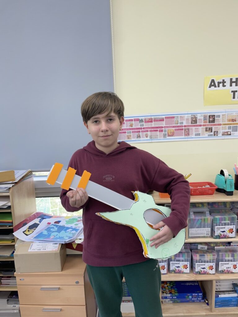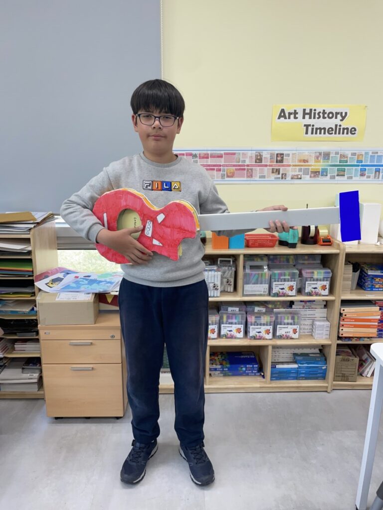 Each student’s work reflected their creativity and effort, with unique touches that made every guitar stand out. The classroom was full of energy and focus as the students transformed their 2D designs into fully realized 3D artworks.
