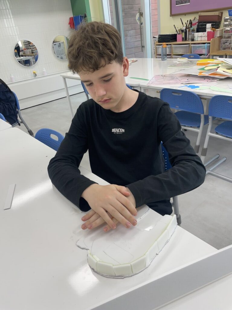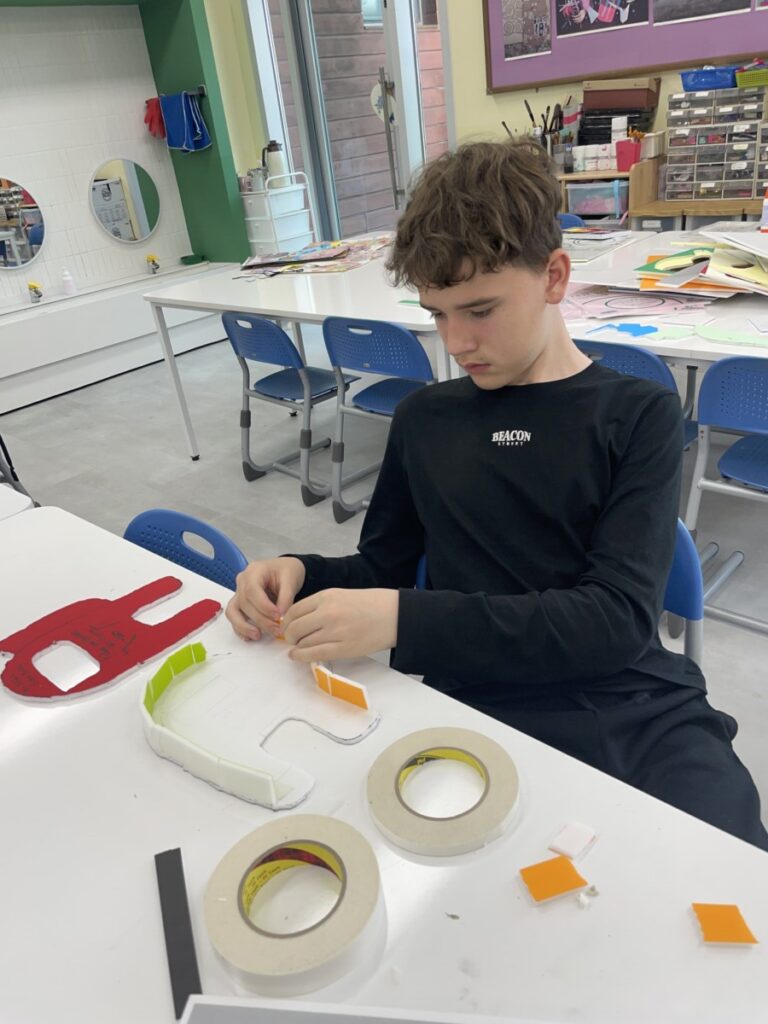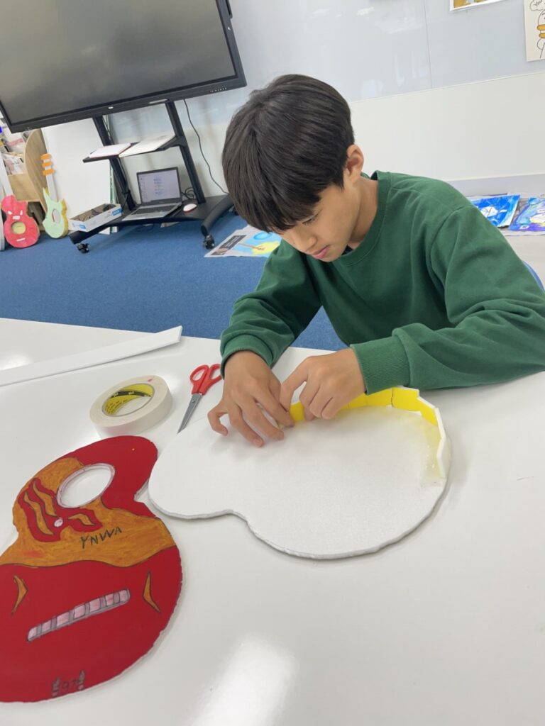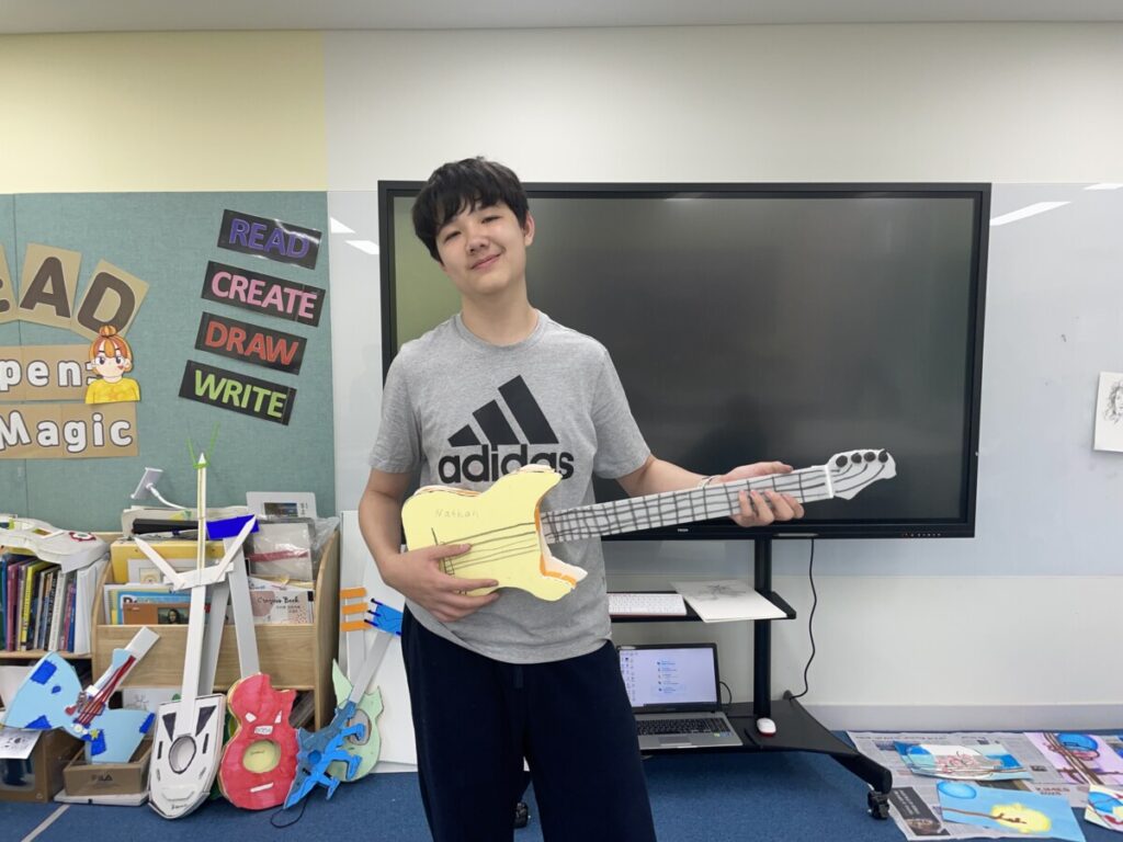 Each student’s work reflected their creativity and effort, with unique touches that made every guitar stand out. The classroom was full of energy and focus as the students transformed their 2D designs into fully realized 3D artworks.