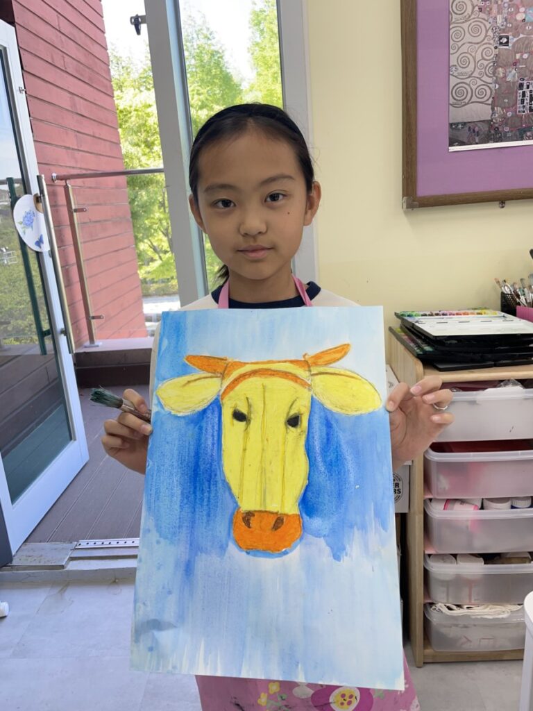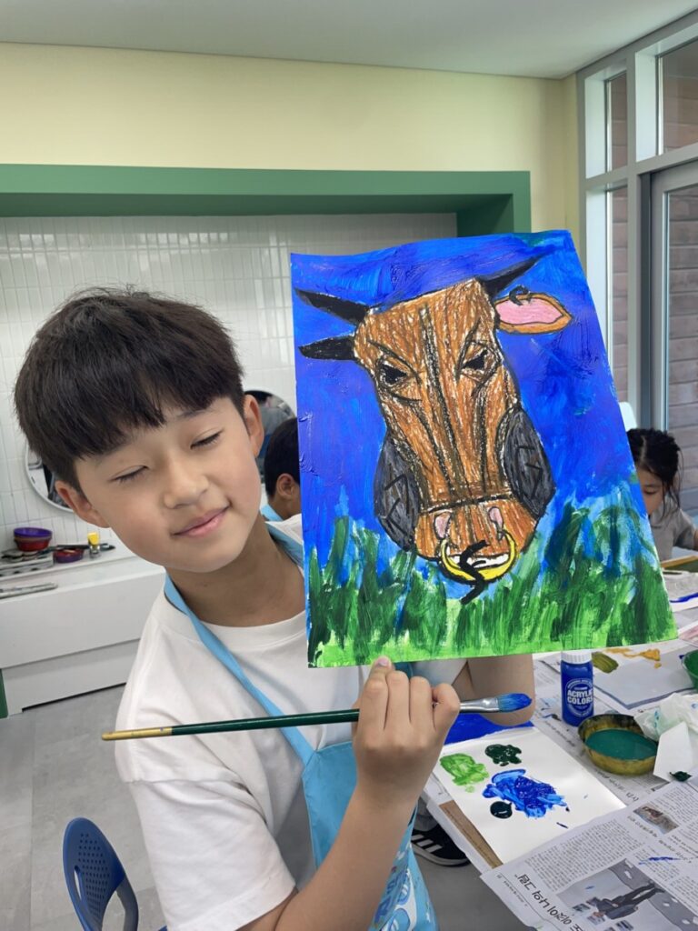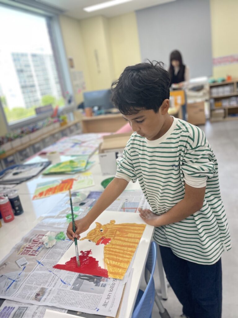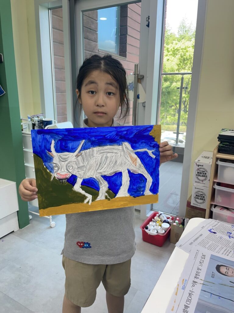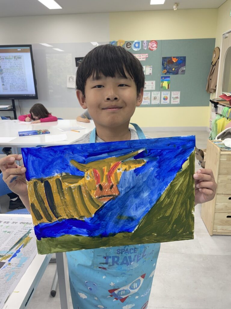 This week, the students continued their exploration of Lee Jung-seob’s powerful and emotional art by bringing their ox sketches to life with paint. Each child developed their own unique style, using expressive brushwork and colour to reflect their personal interpretation of the ox—a symbol of strength, love, and resilience.