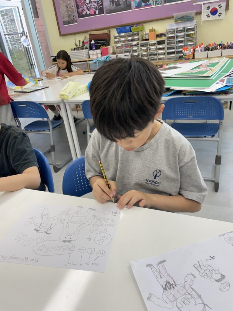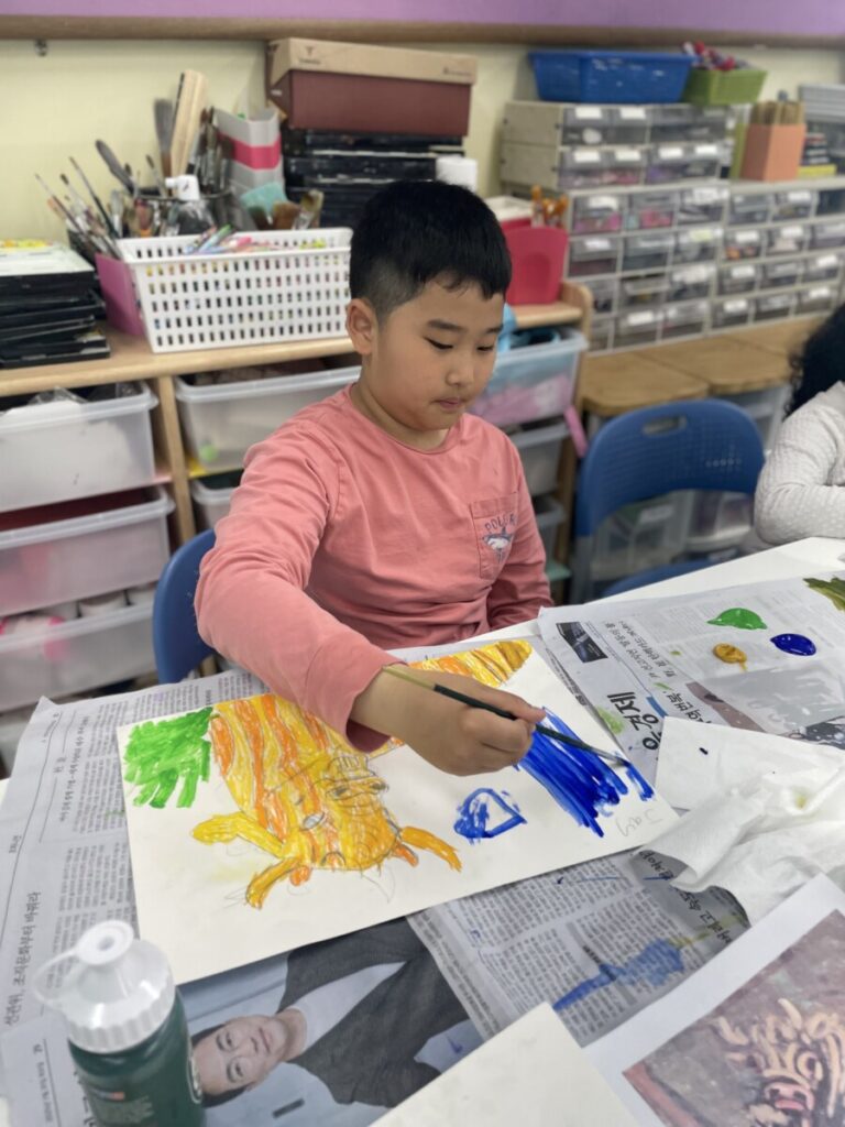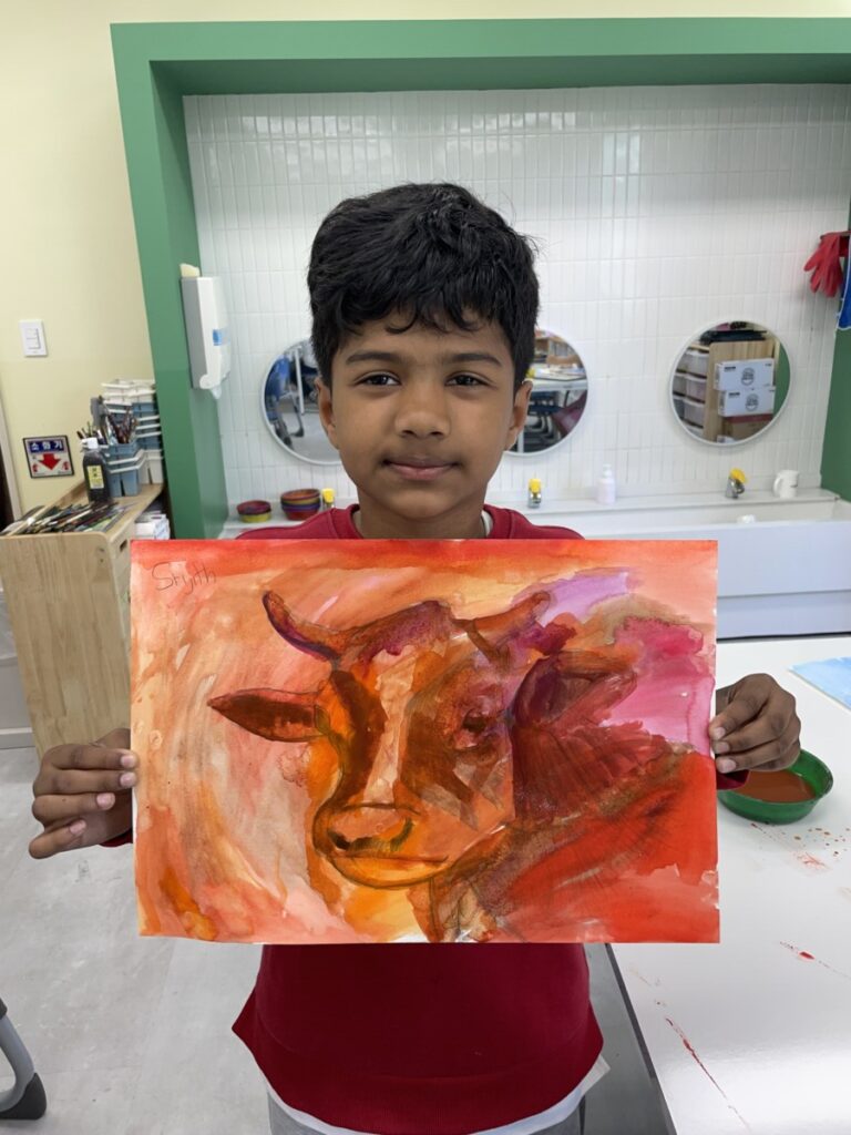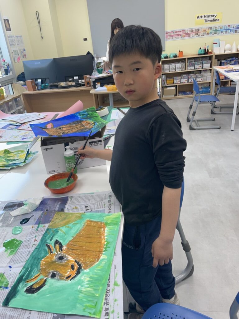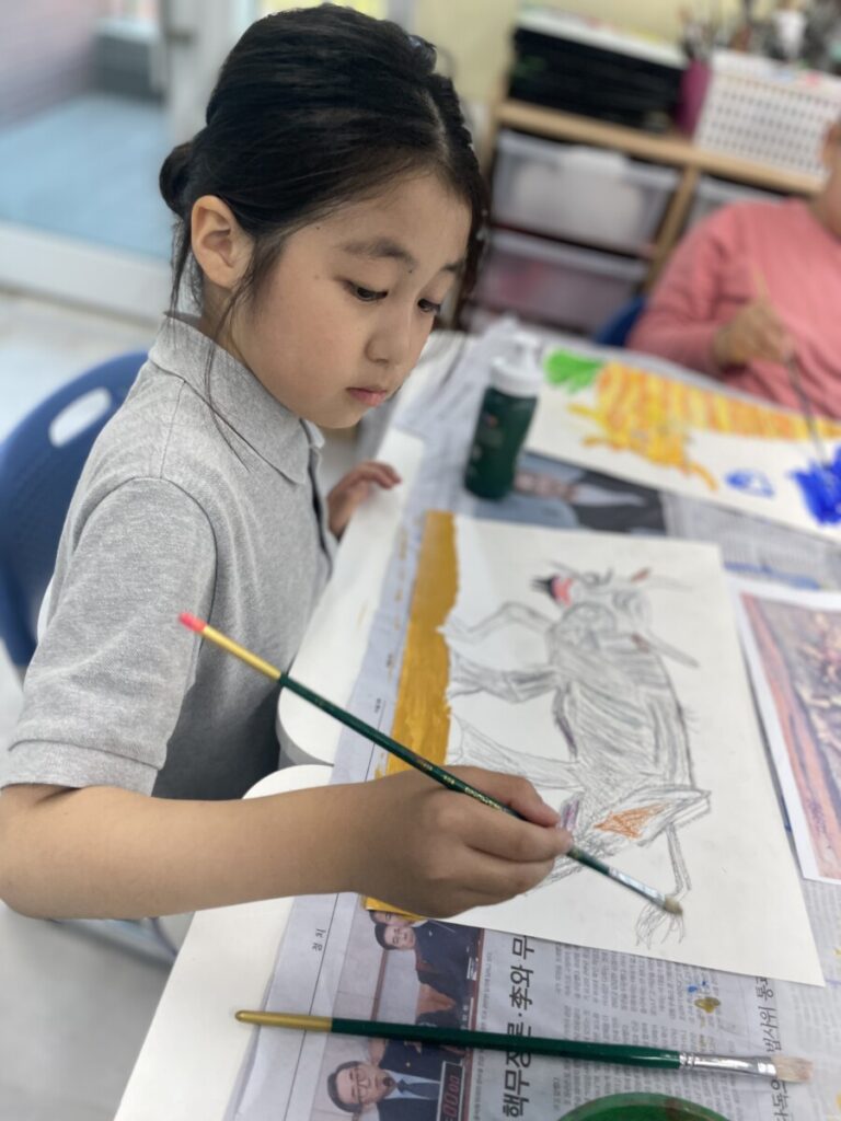 This week, the students continued their exploration of Lee Jung-seob’s powerful and emotional art by bringing their ox sketches to life with paint. Each child developed their own unique style, using expressive brushwork and colour to reflect their personal interpretation of the ox—a symbol of strength, love, and resilience.