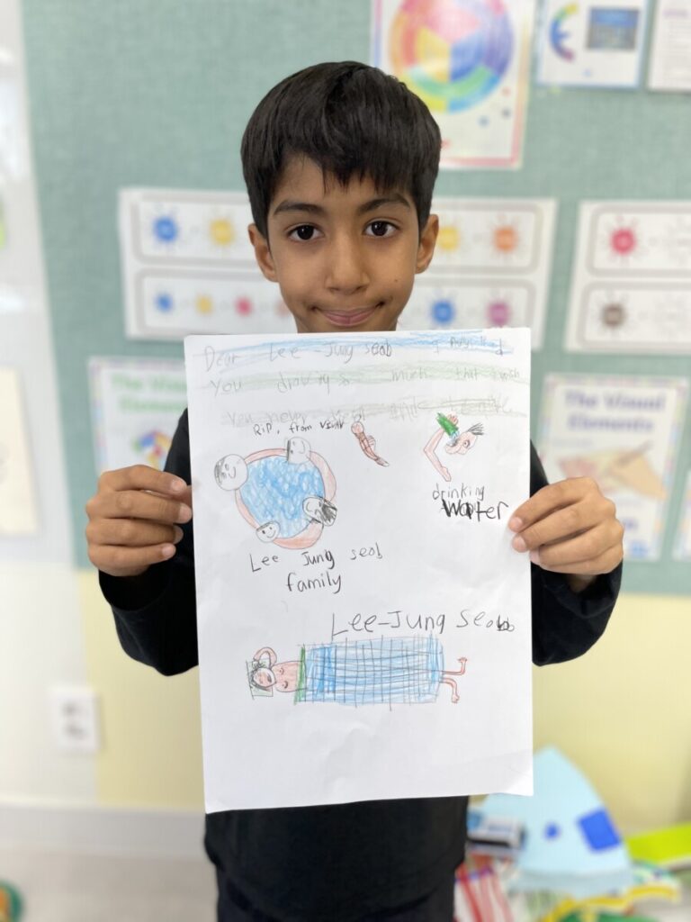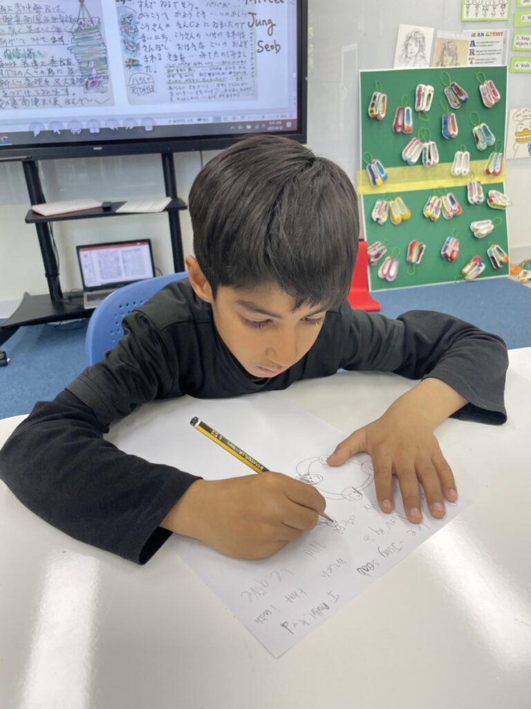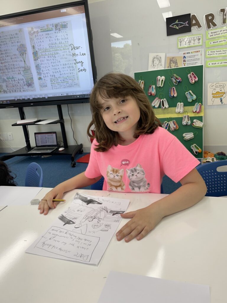 Following that, we delved into another deeply meaningful part of Lee Jung-seob’s work—his letter art (편지화). We looked closely at the heartfelt letters he wrote to his wife, Masako, many of which included touching drawings. The children made thoughtful guesses about what the letters might have said and discussed the feelings they saw in the illustrations.