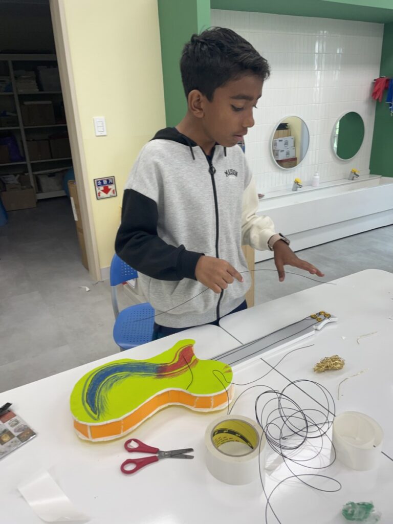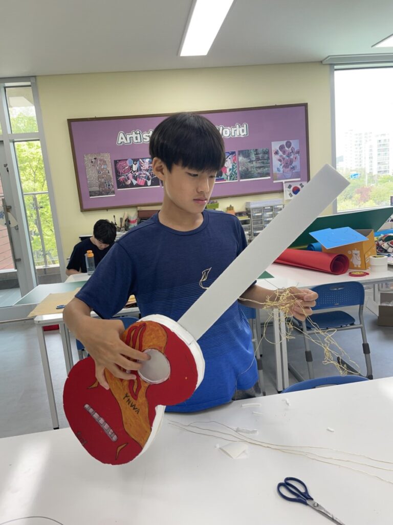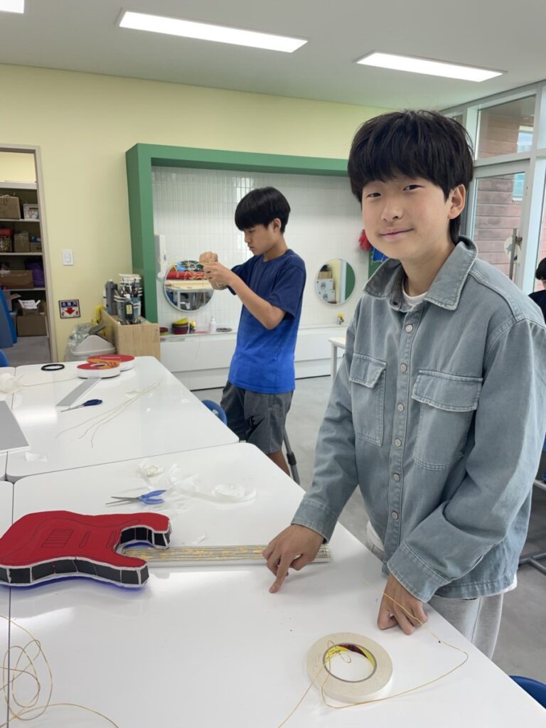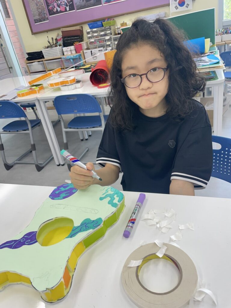 Students who completed their guitars moved on to a new project inspired by traditional Korean art.