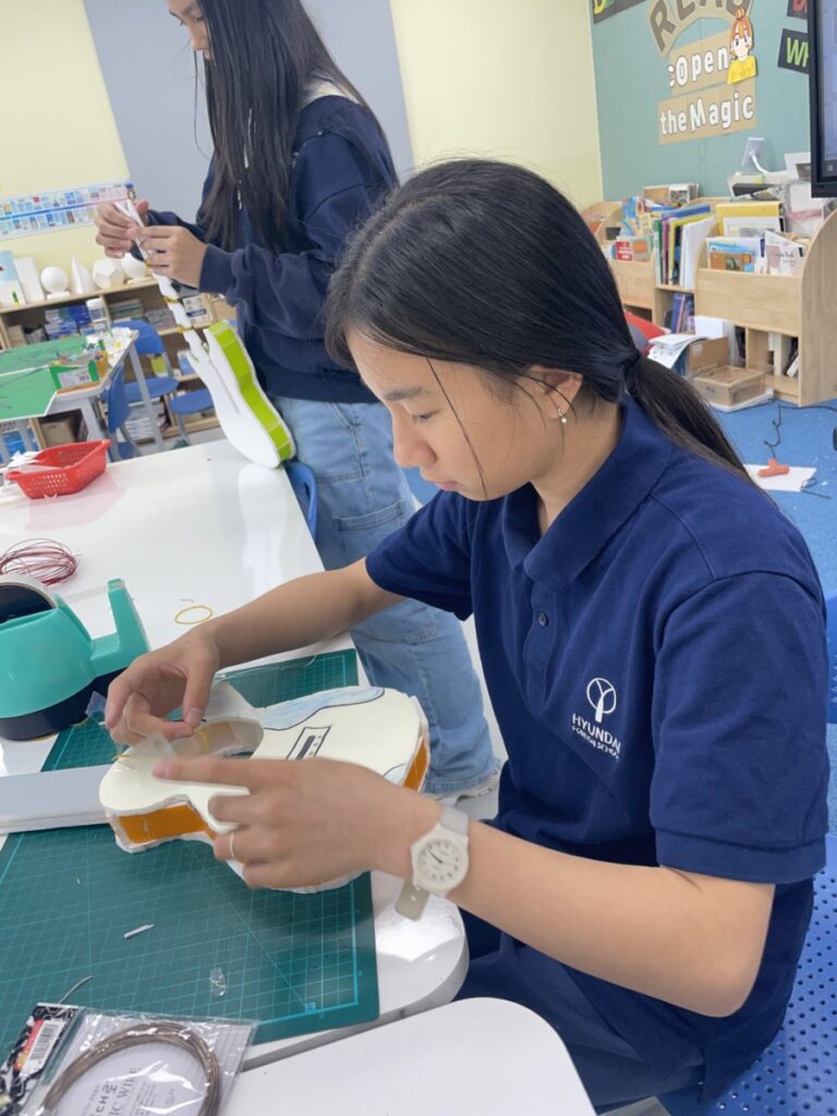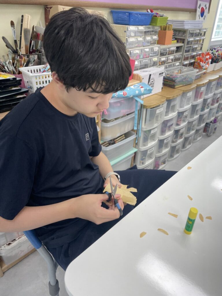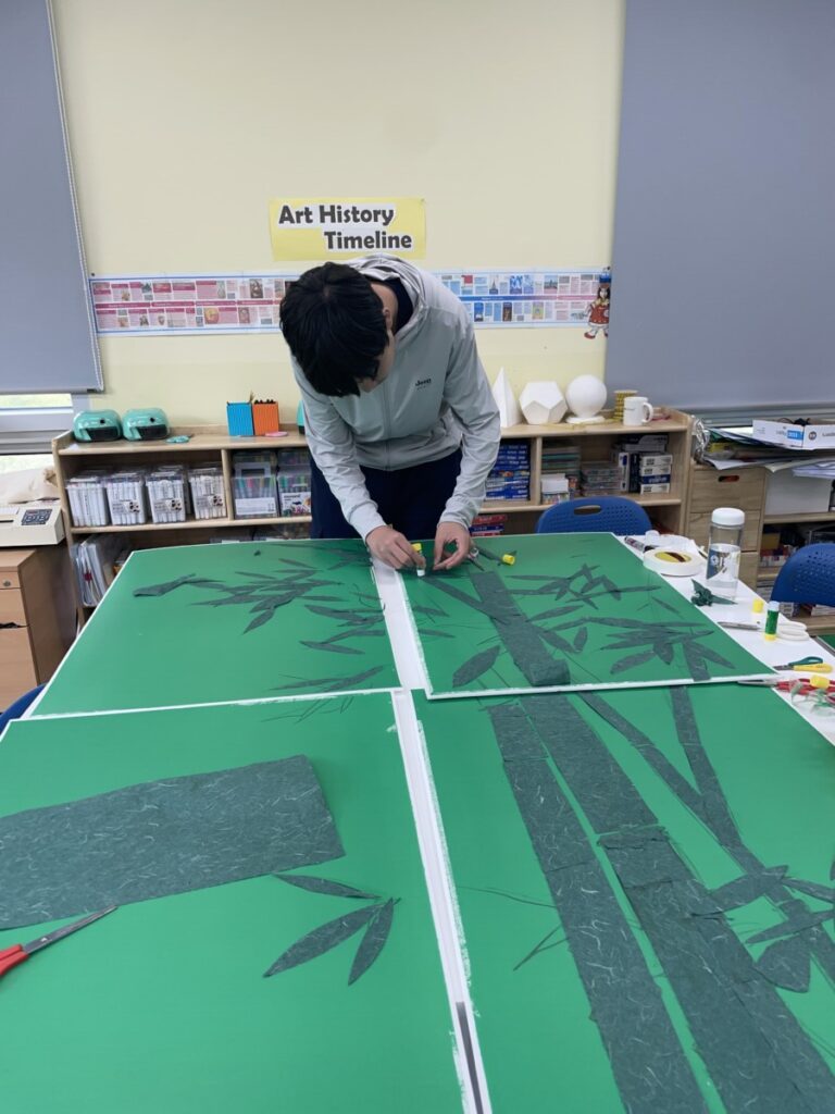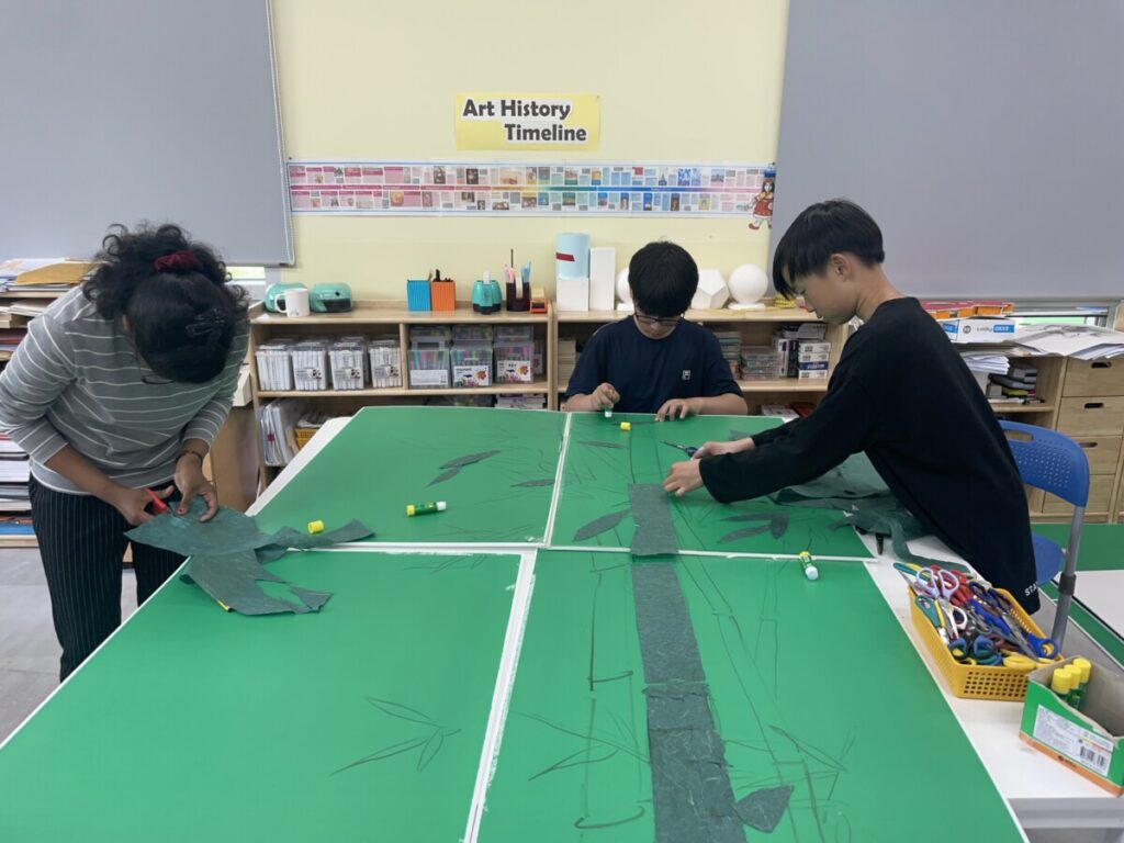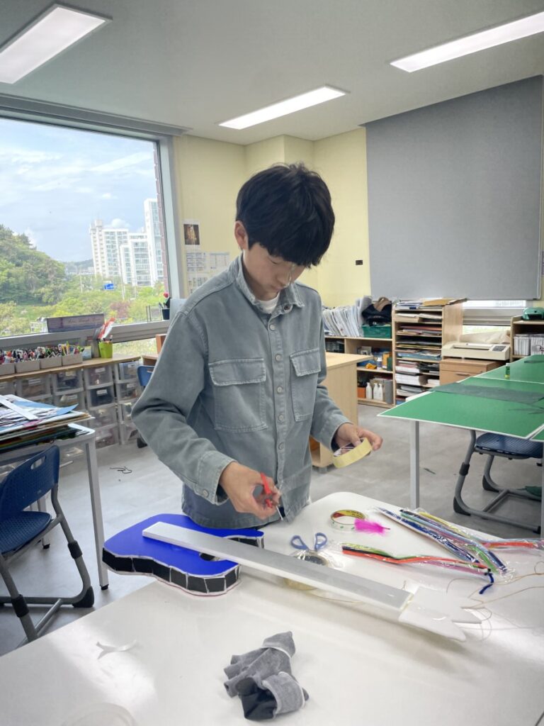 Students who completed their guitars moved on to a new project inspired by traditional Korean art.