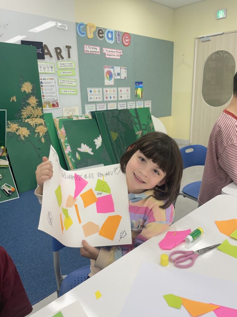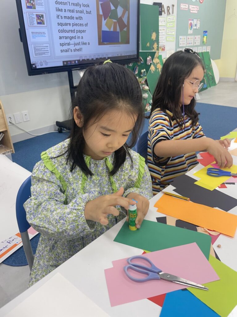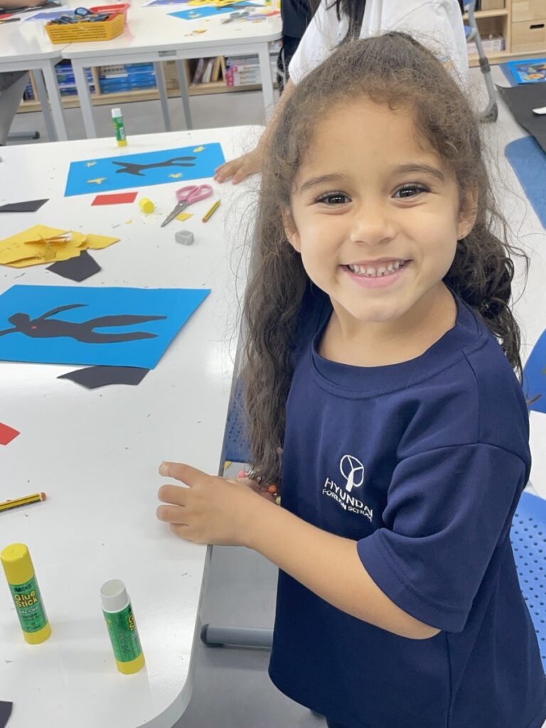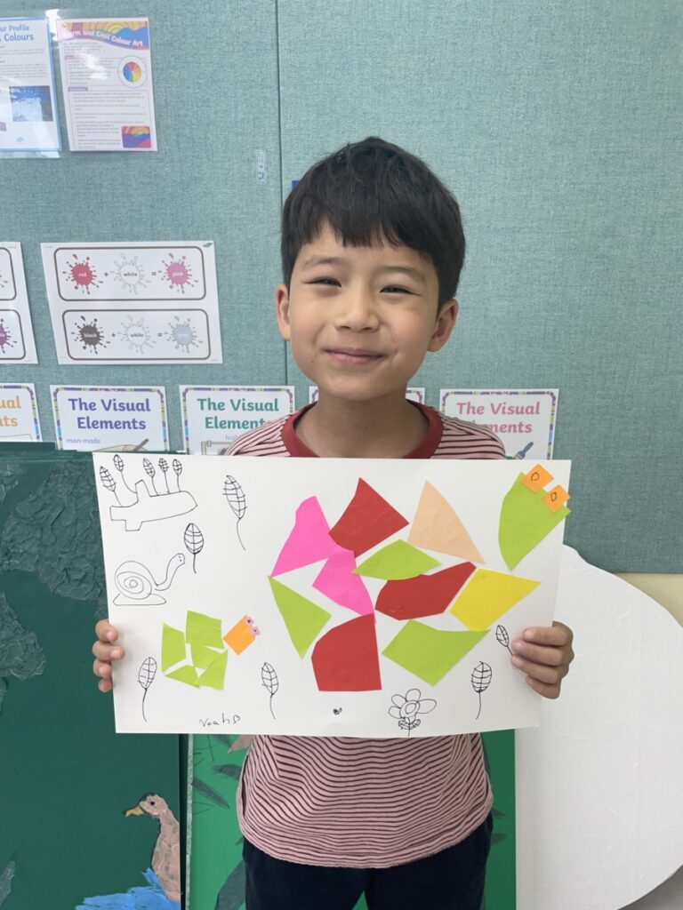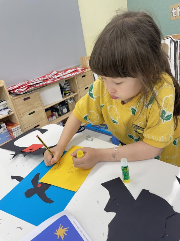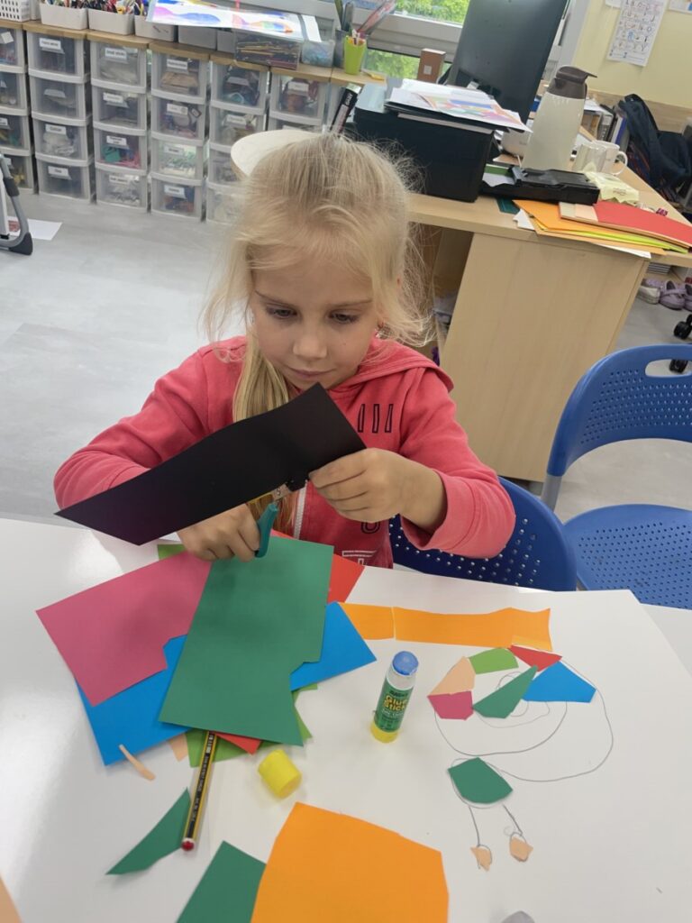 They cut out bold shapes to make figures like Icarus flying in the sky or colourful snails using squares and curves. Through this fun activity, they practiced creativity, shape recognition, and composition—just like Matisse did!