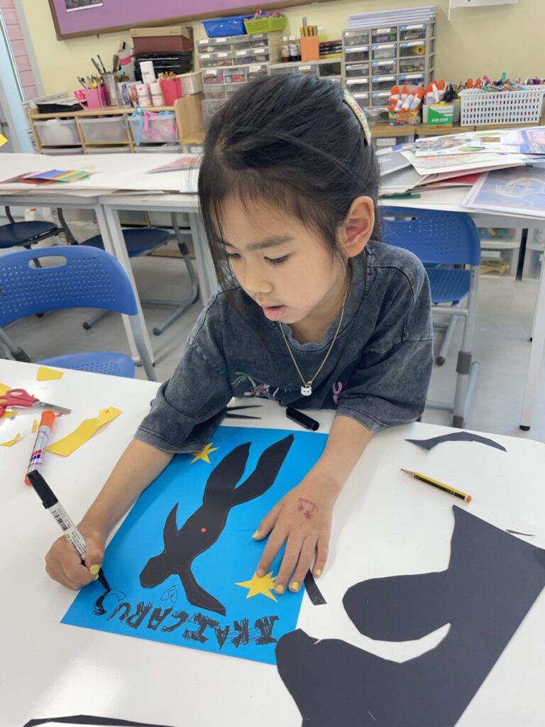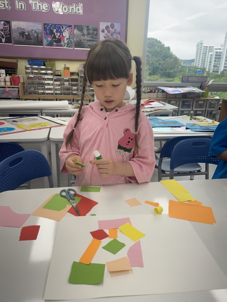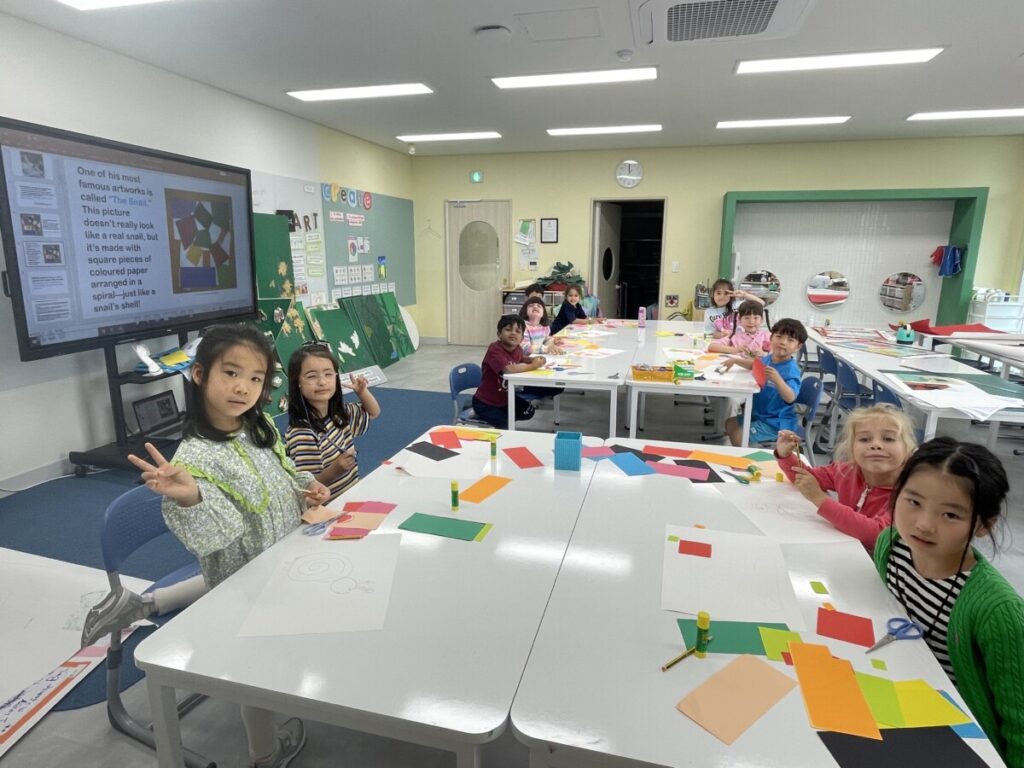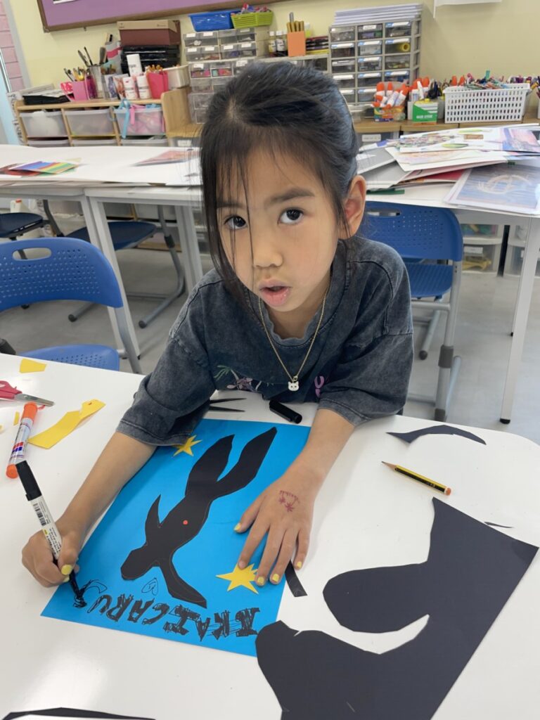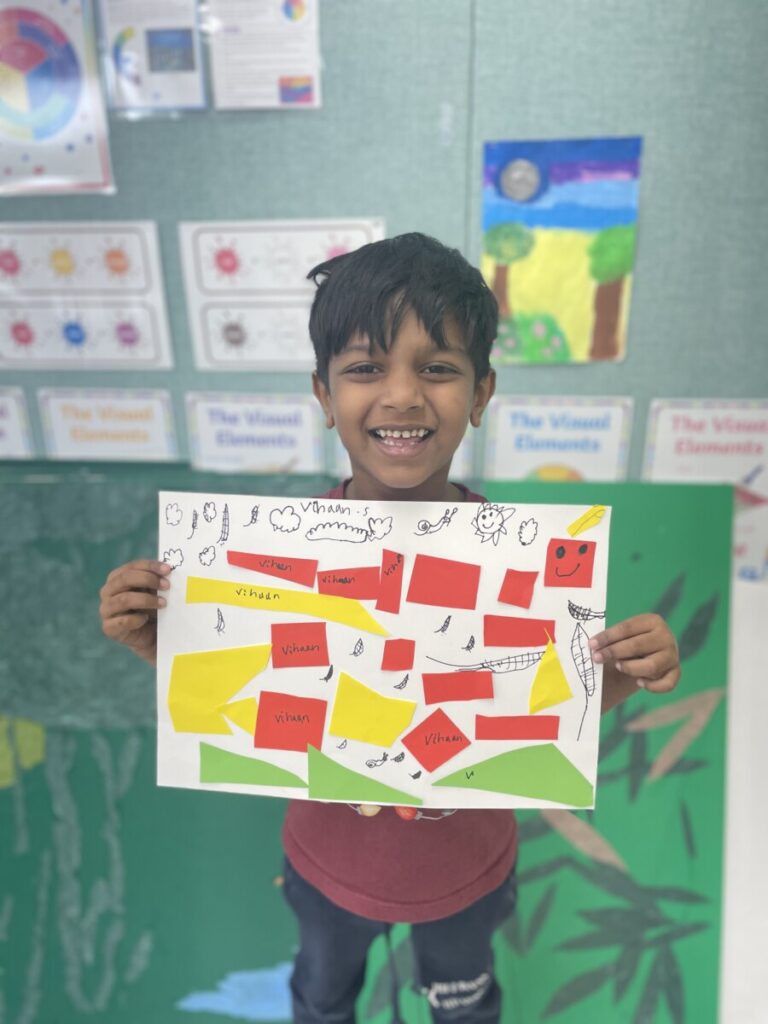They cut out bold shapes to make figures like Icarus flying in the sky or colourful snails using squares and curves. Through this fun activity, they practiced creativity, shape recognition, and composition—just like Matisse did!
