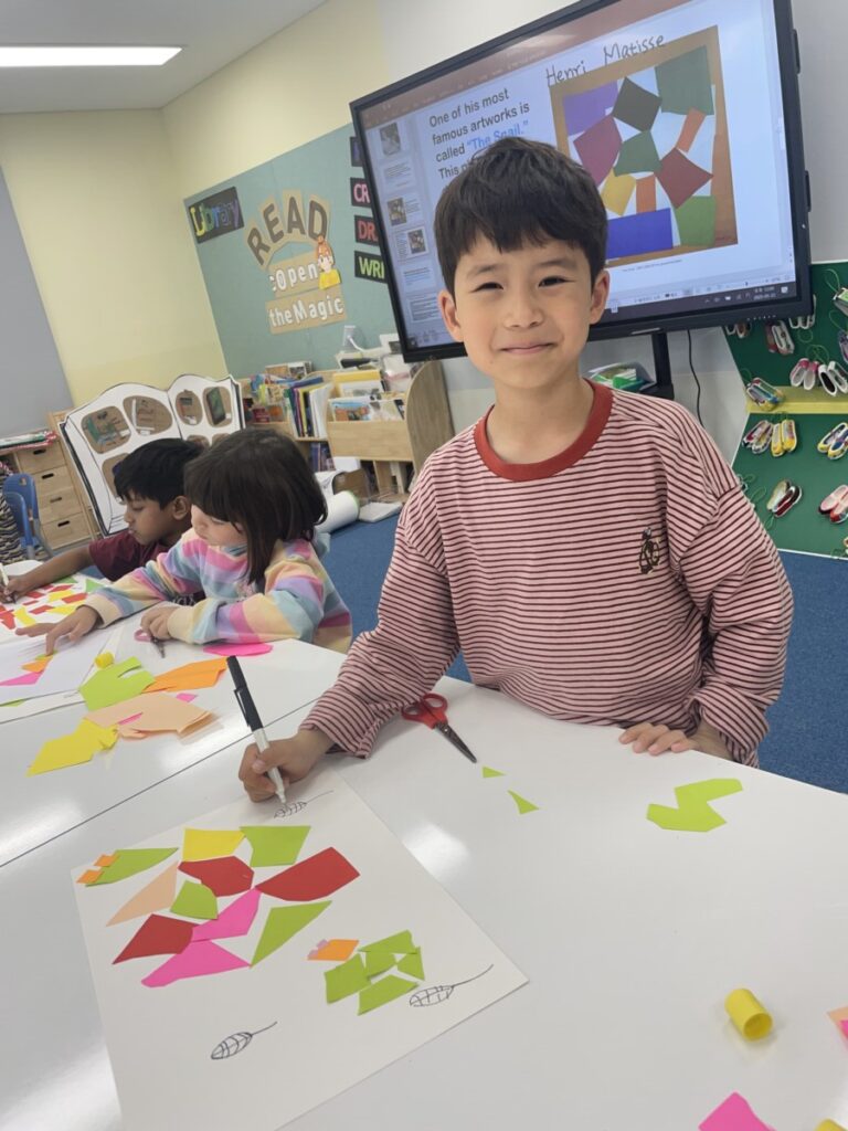 This week, the students learned about the artist Henri Matisse and explored two of his famous works—”Icarus” and “The Snail.”