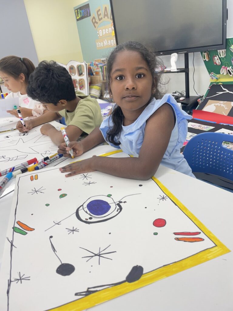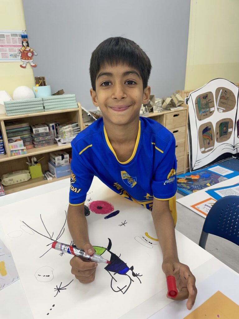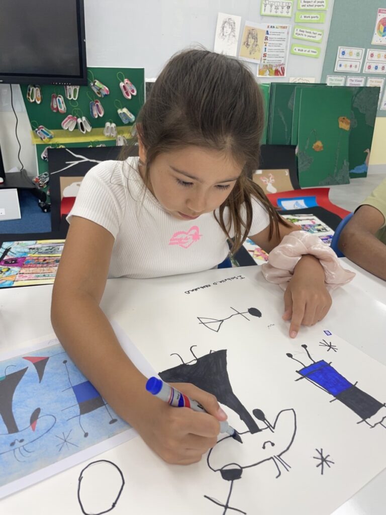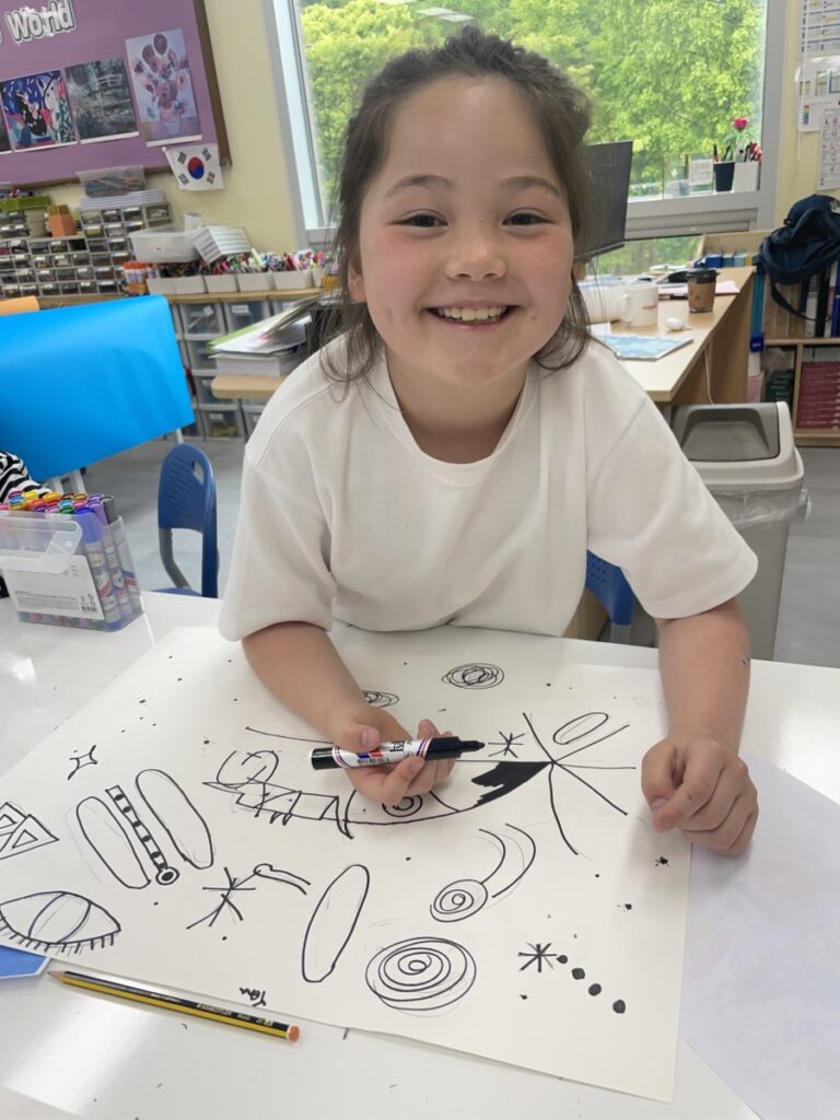 This week, the year 3-4students learned about the Spanish artist Joan Miró and explored his unique and imaginative style. We began by discovering who he was, how he created his artworks, and what made his style so distinctive—such as his use of bold lines, playful shapes, and limited colours.The children then discussed which aspects of Miró’s art they found most interesting or enjoyable. After our discussion, they created their own Joan Miró–inspired artwork, using a limited colour palette, just like he often did. They experimented with lines, symbols, and shapes to express their creativity in Miró’s abstract style.It was a fun and imaginative week, and the students did a wonderful job bringing their own interpretations to life!