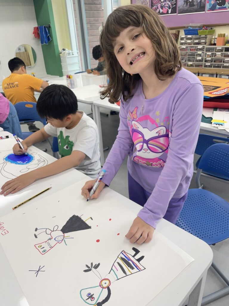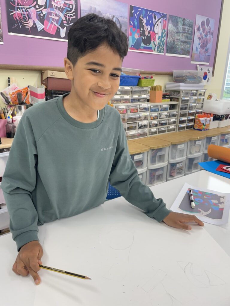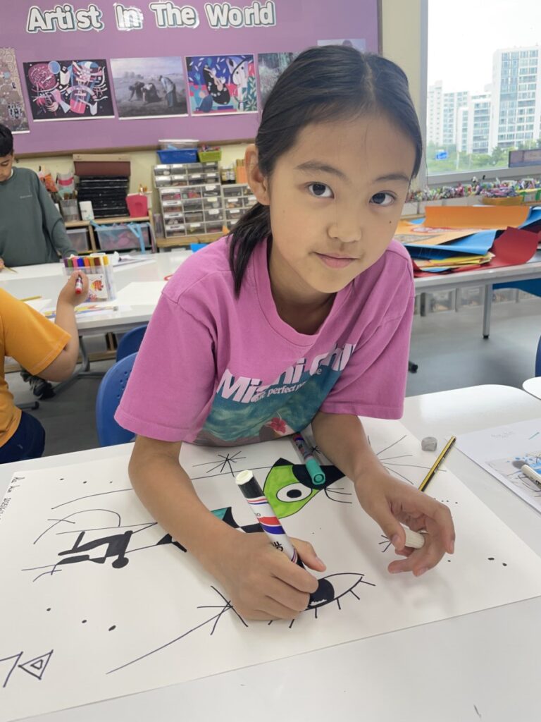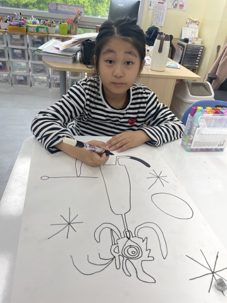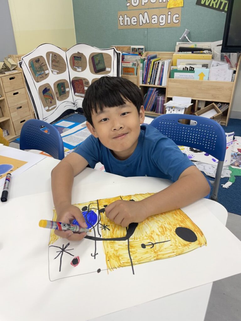 This week, the year 3-4students learned about the Spanish artist Joan Miró and explored his unique and imaginative style. We began by discovering who he was, how he created his artworks, and what made his style so distinctive—such as his use of bold lines, playful shapes, and limited colours.The children then discussed which aspects of Miró’s art they found most interesting or enjoyable. After our discussion, they created their own Joan Miró–inspired artwork, using a limited colour palette, just like he often did. They experimented with lines, symbols, and shapes to express their creativity in Miró’s abstract style.It was a fun and imaginative week, and the students did a wonderful job bringing their own interpretations to life!