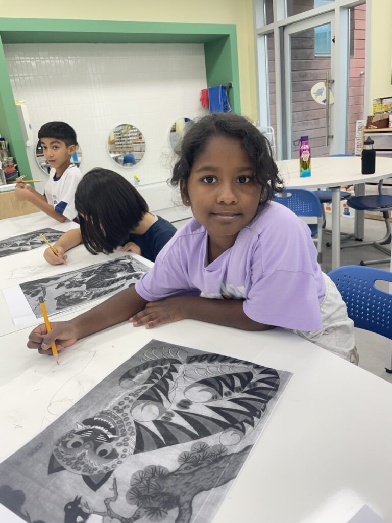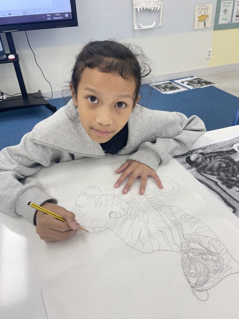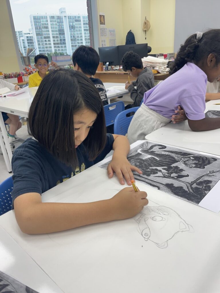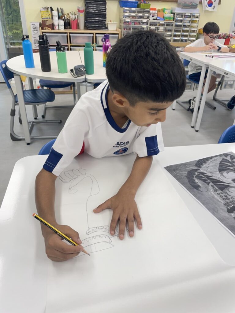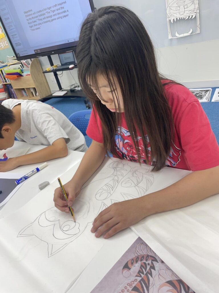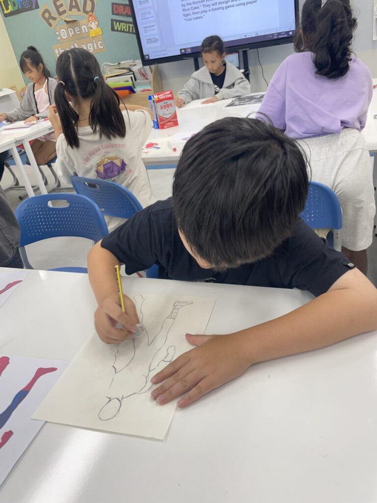 Students who finished this project moved on to a special activity in celebration of the upcoming Chuseok holiday. They explored different versions of the traditional Korean folk painting “The Magpie and the Tiger,” and began sketching their own interpretations of the artwork. It will be exciting to see how their pieces develop into unique and imaginative creations in the coming weeks.