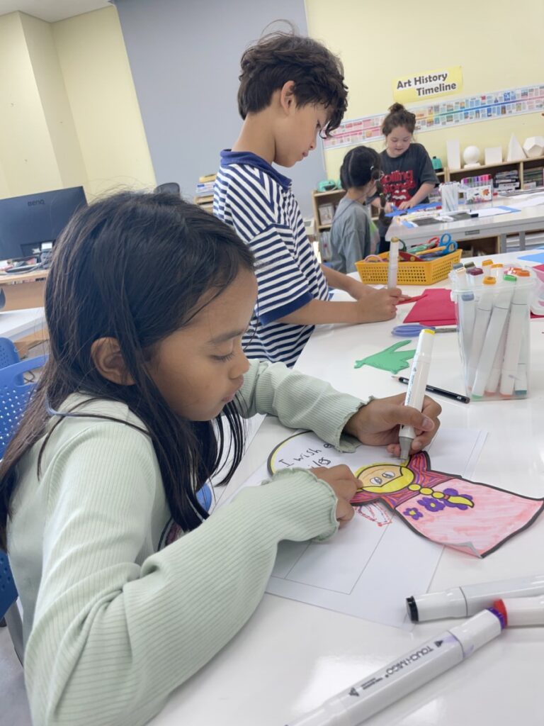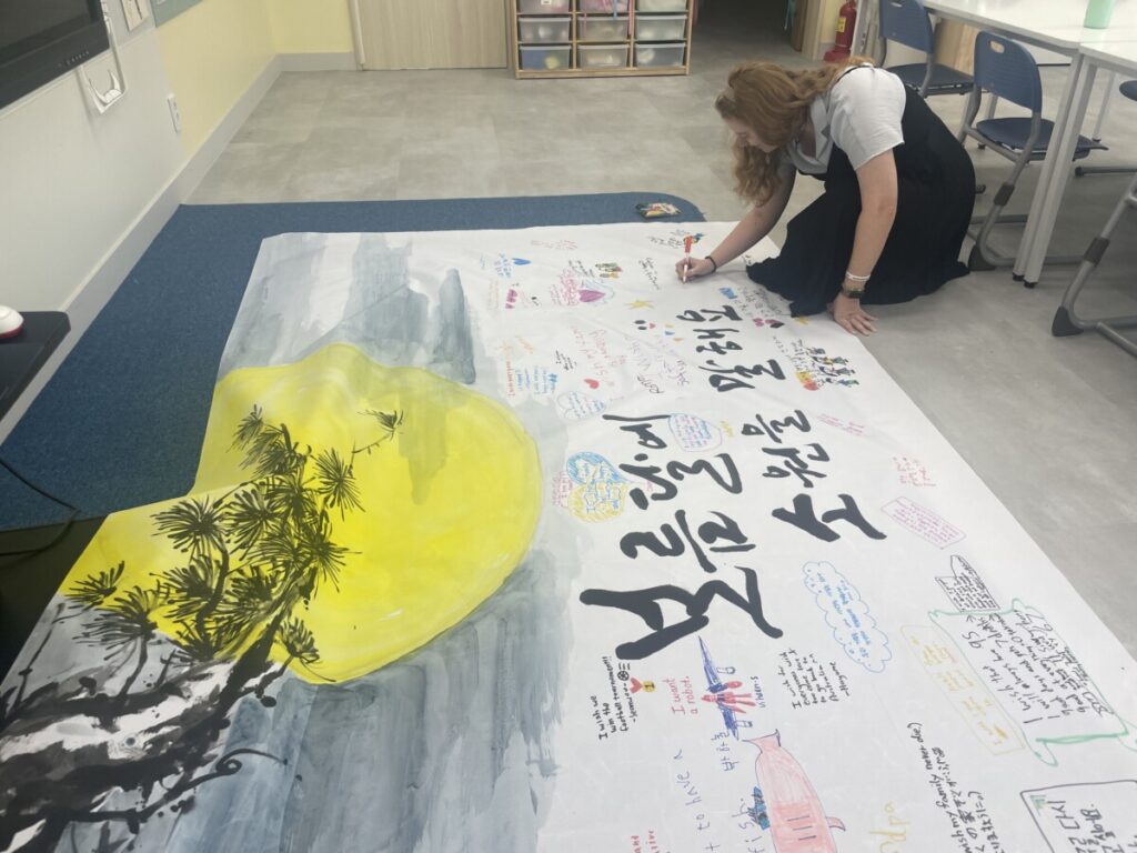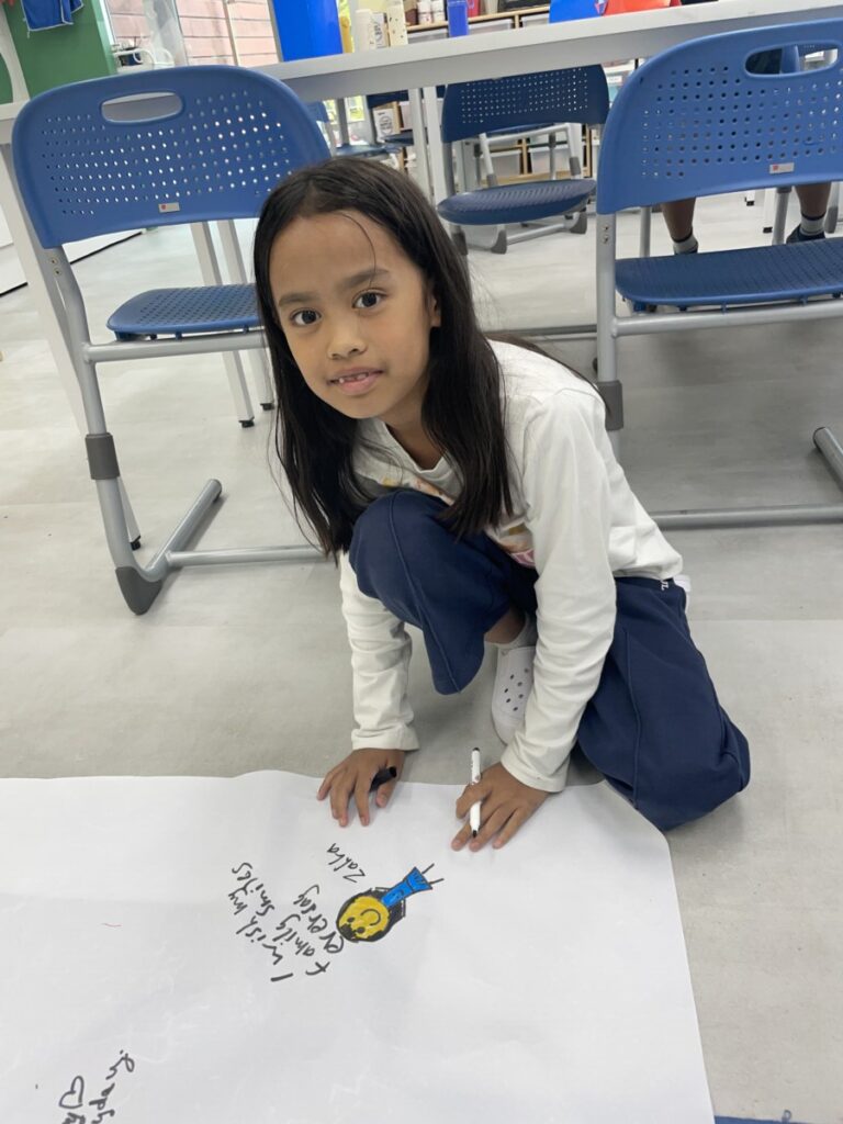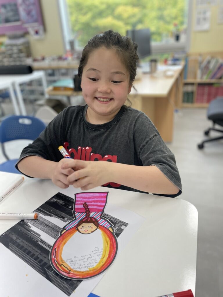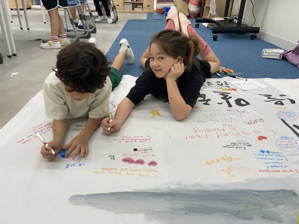 In celebration of Chuseok, the children took part in a special cultural art activity. They began by writing their wishes to the full moon, expressing their hopes in both words and drawings. Together, they decorated a scarecrow by adding facial features such as eyes, a nose, and a mouth, as well as designing colourful buttons. To complete the character, the scarecrow was dressed with gloves and a hat.