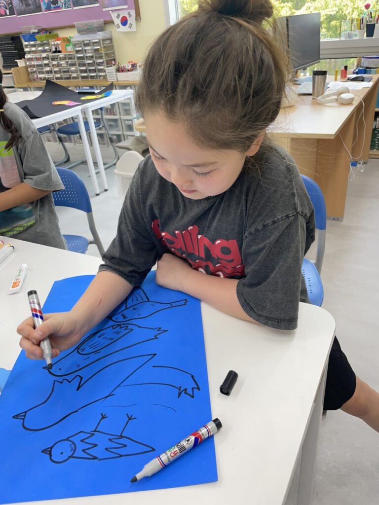 As a finishing touch, the students designed sparrow mobiles to place around the scarecrow, creating a lively and festive scene. This activity not only encouraged creativity but also deepened the children’s understanding of Korean traditions during Chuseok.