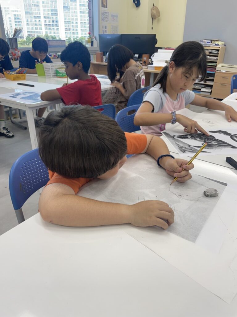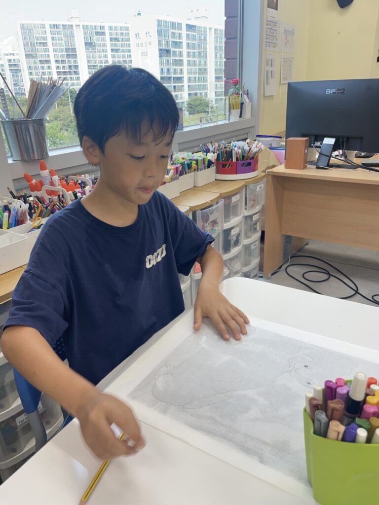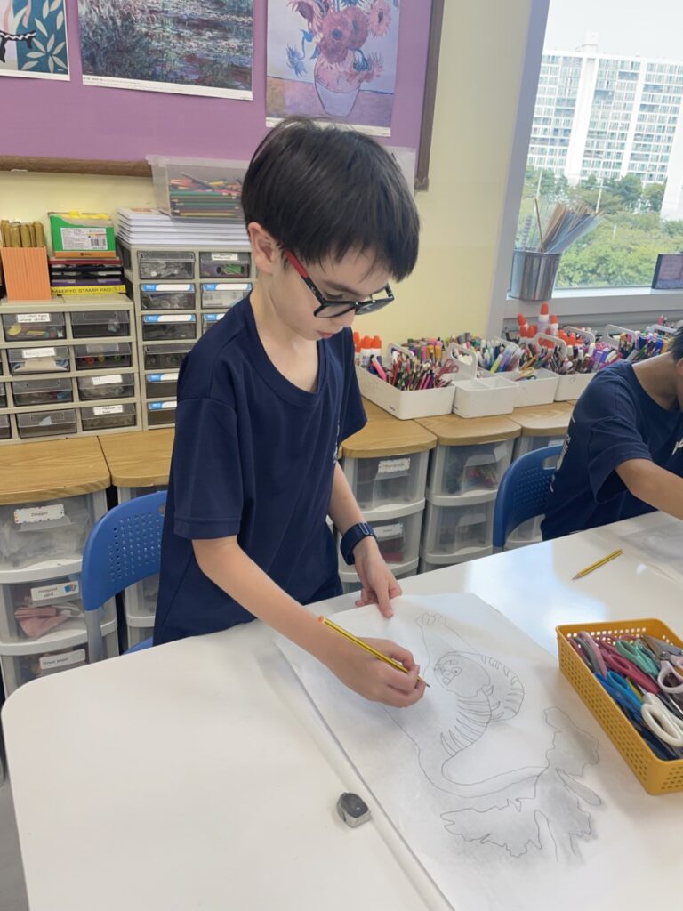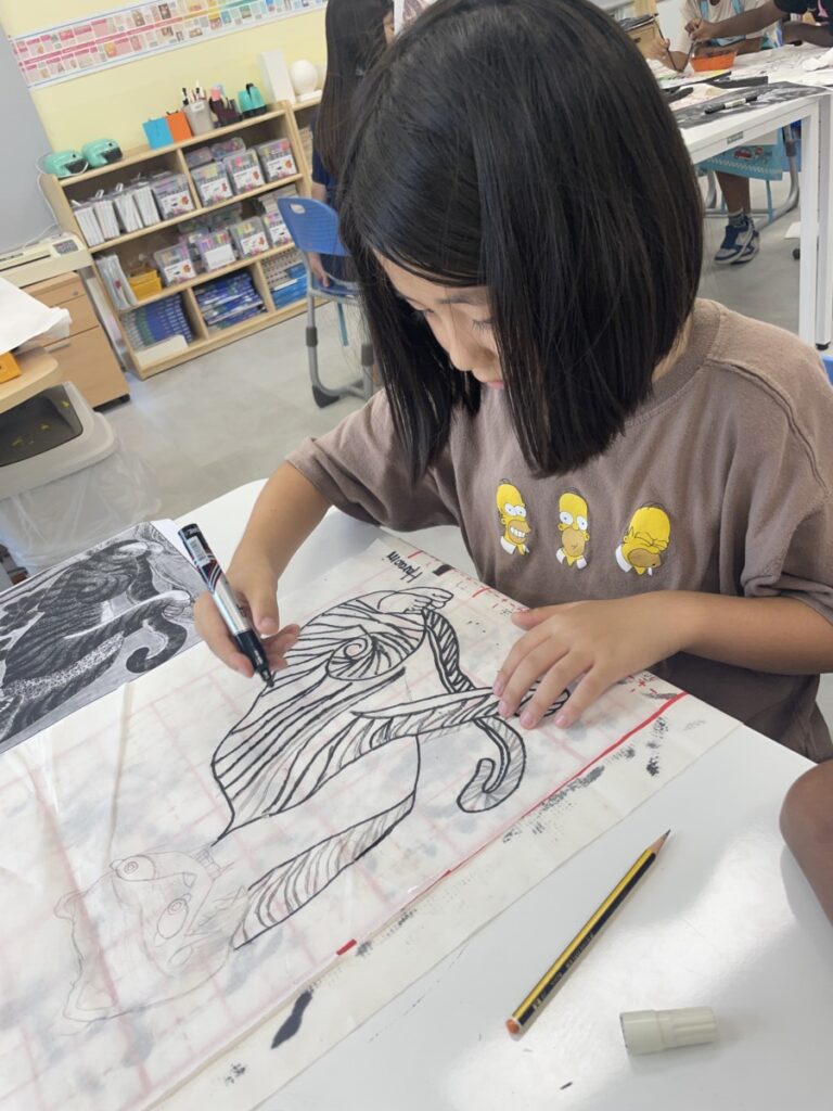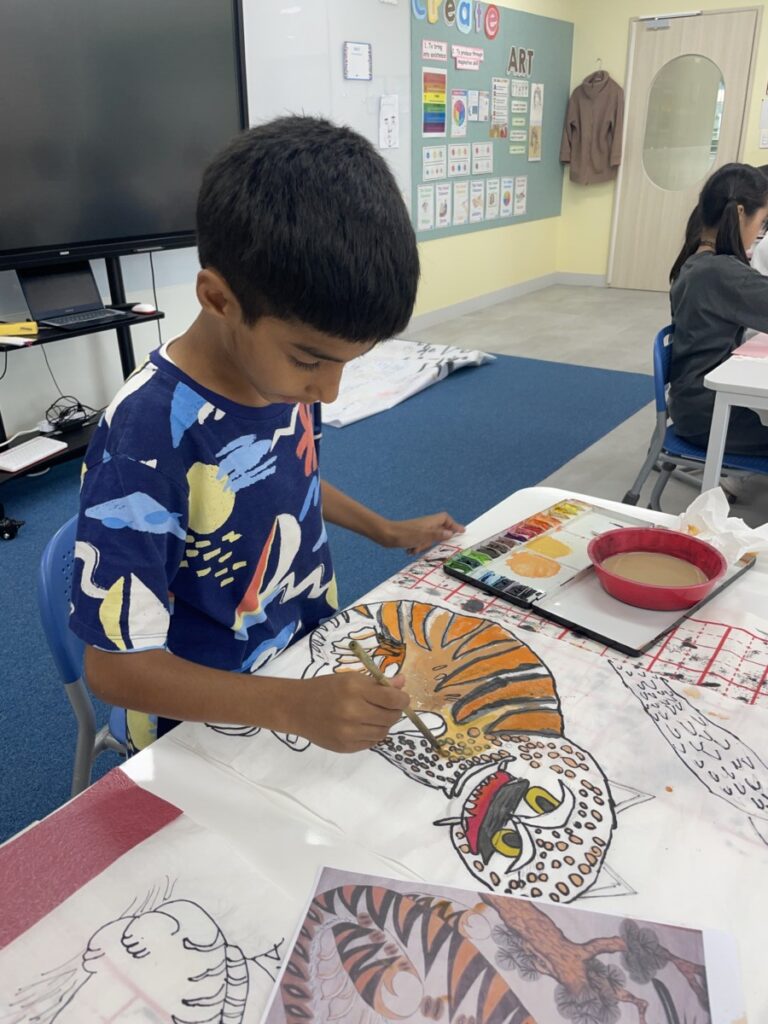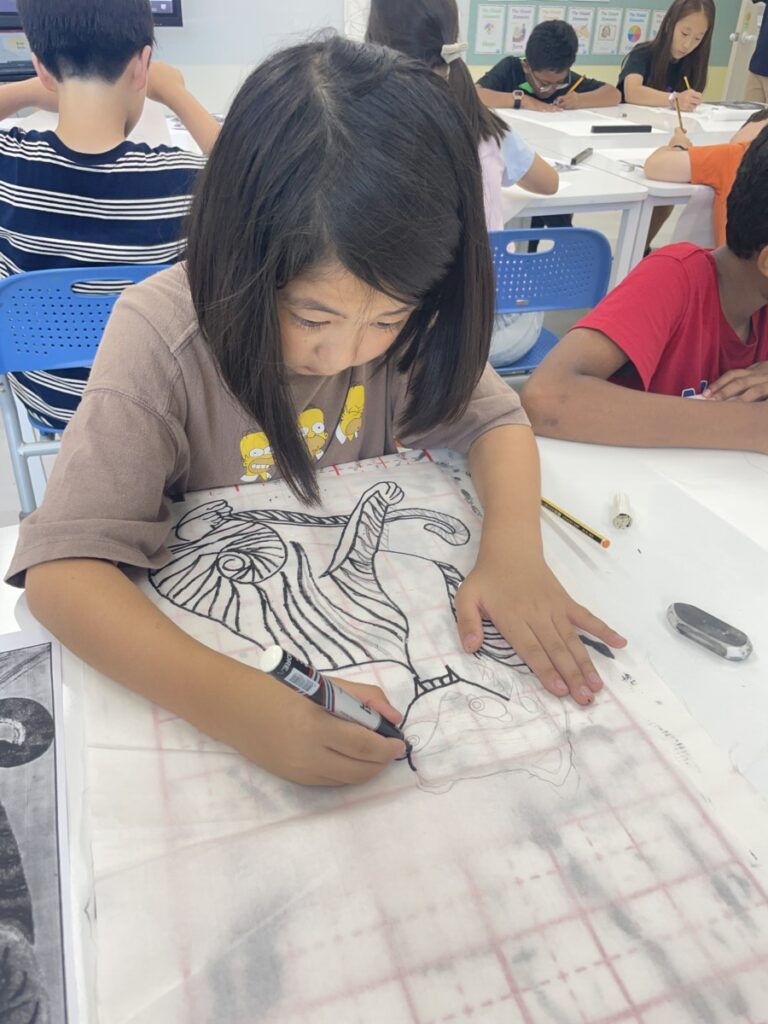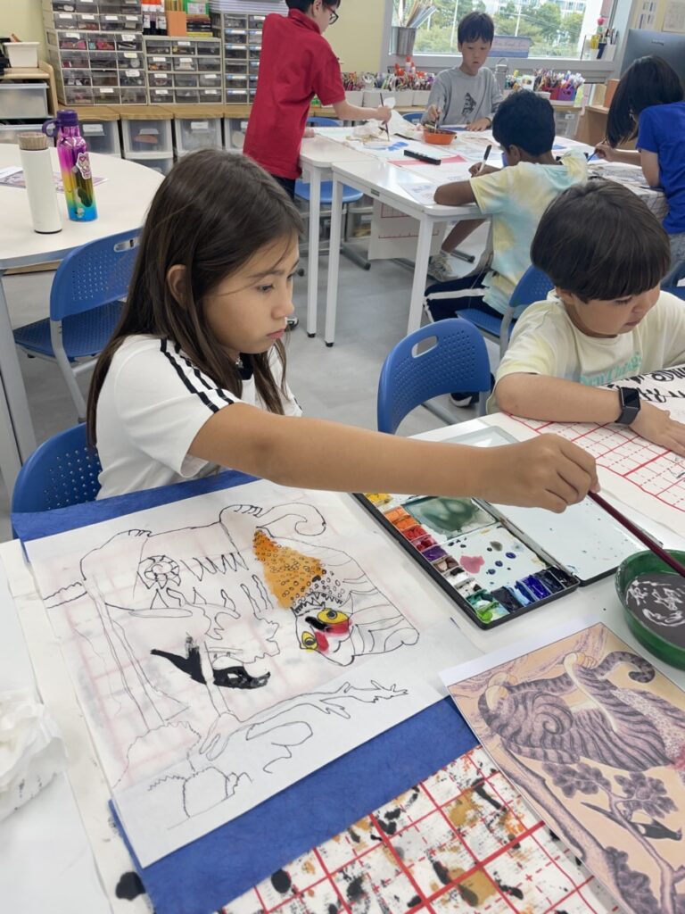 To celebrate Chuseok, the Year 5–6 students created their own versions of the traditional Korean folk painting “Magpie and Tiger.” Using traditional materials such as Korean rice paper (hanji) and black ink with brushes, they expressed their unique feelings and creativity through their artworks.