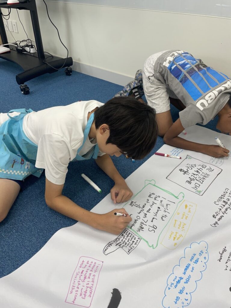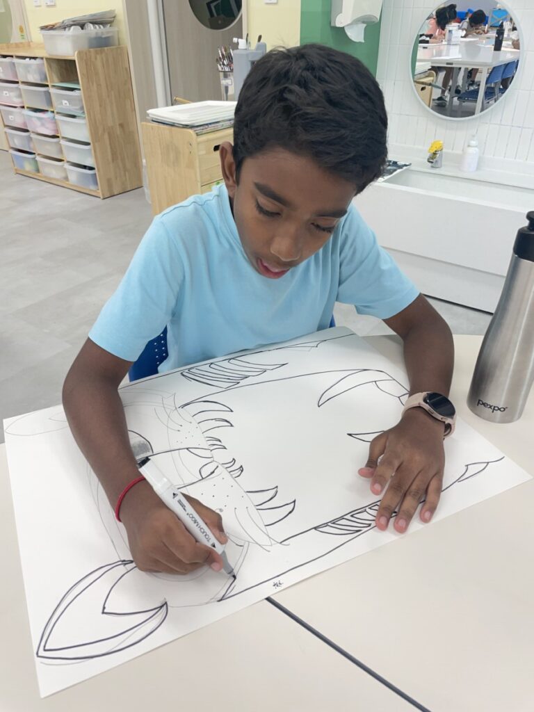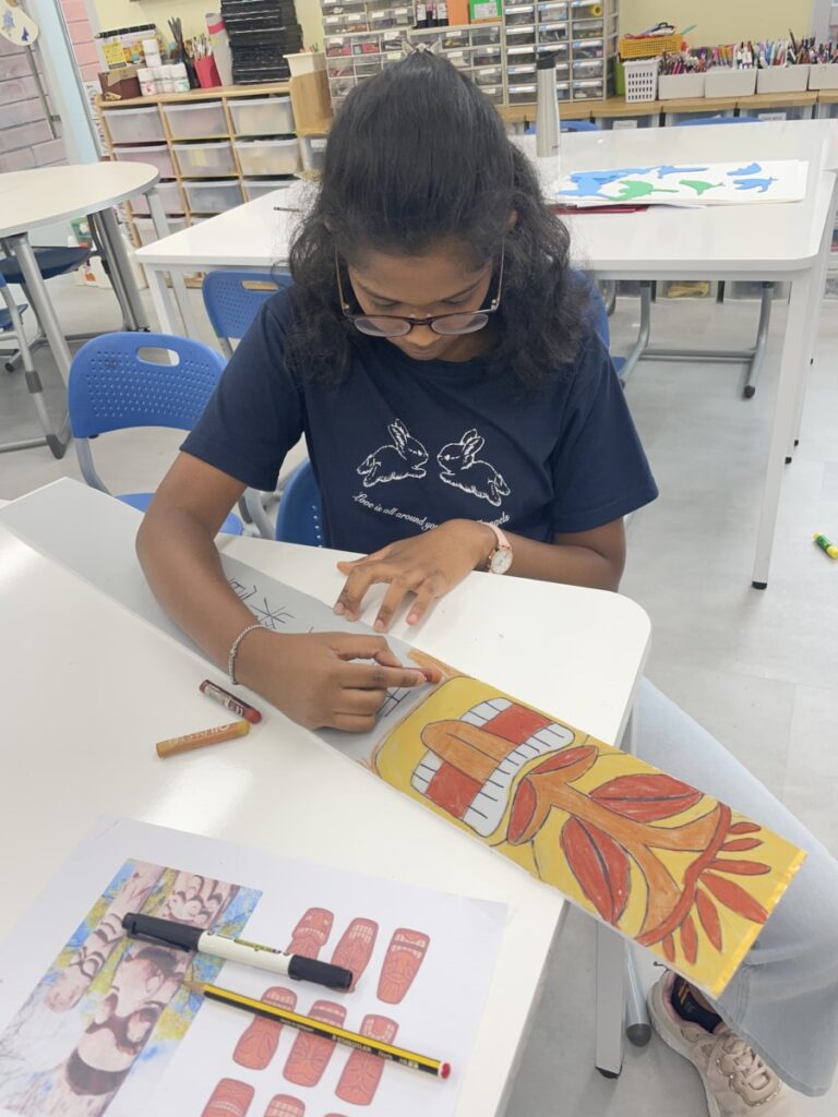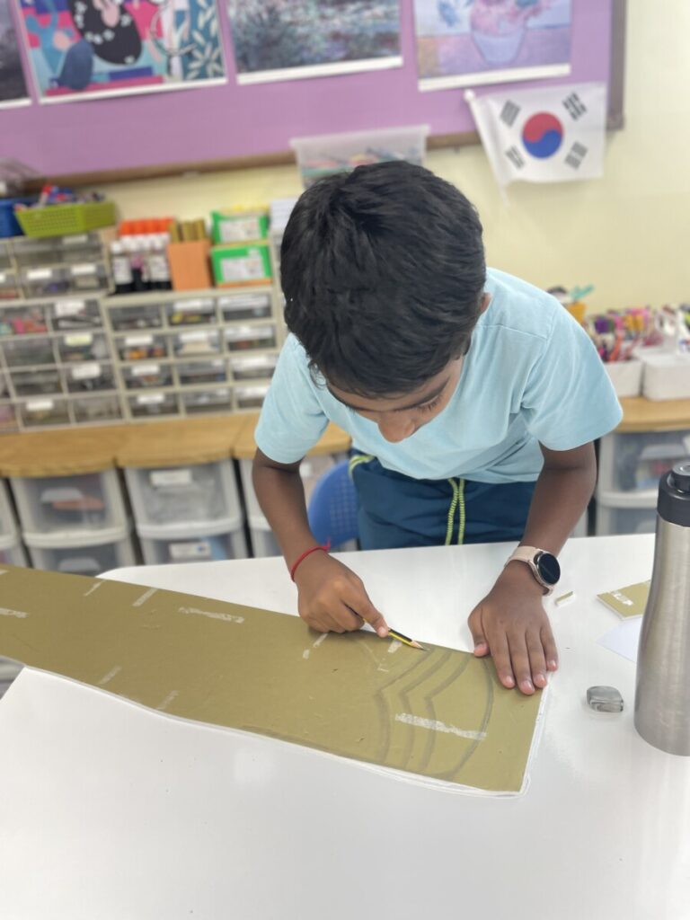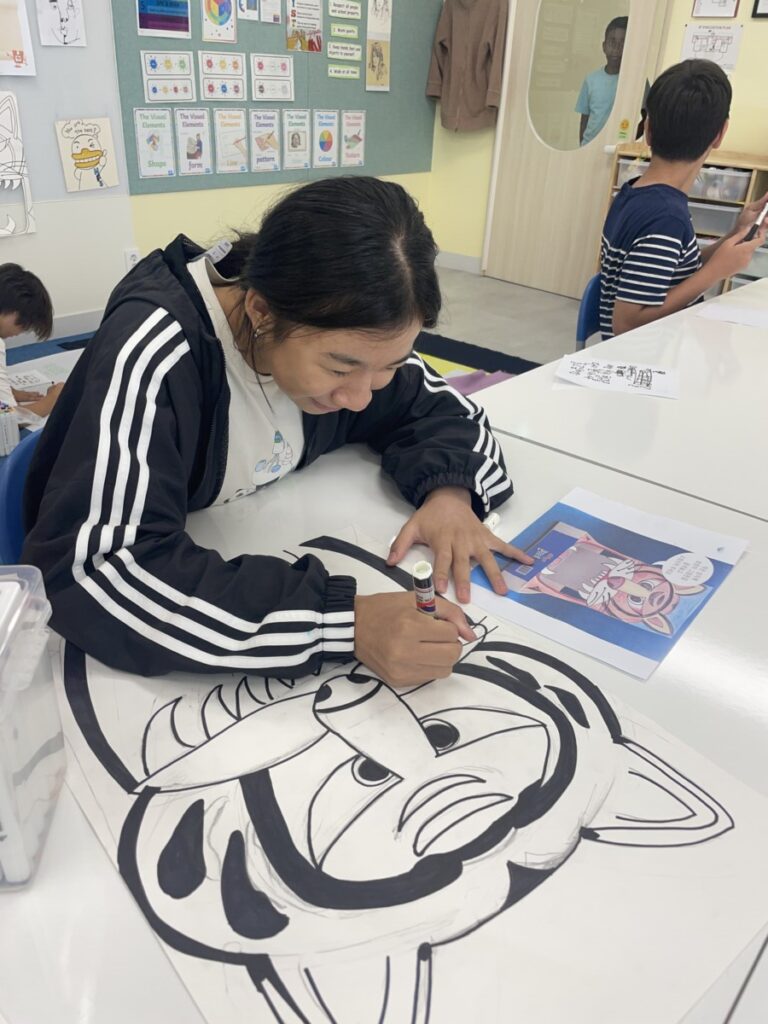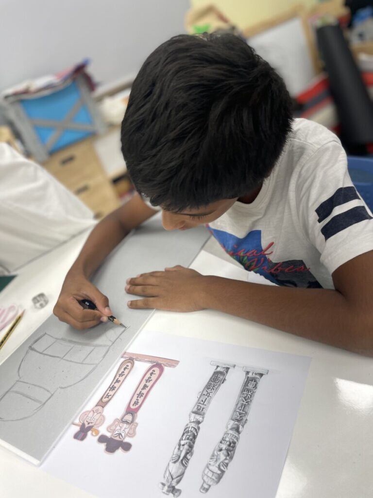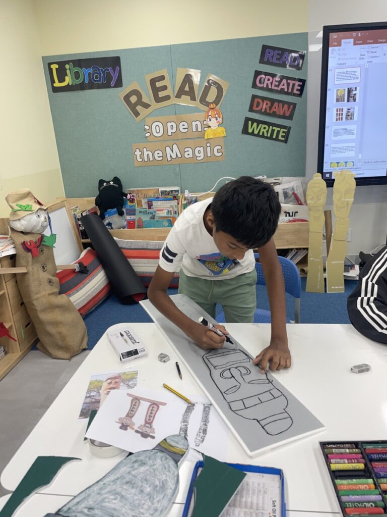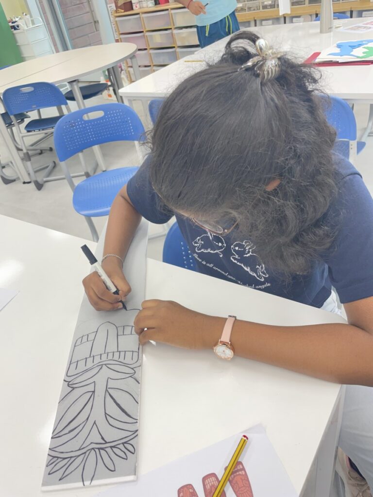 To celebrate Chuseok, we learned words related to the holiday such as Chuseok, family, full moon, wish, and Hangawi. The children practiced writing these words with a traditional Korean brush, gaining a deeper understanding of Korean culture. We also explored the meaning of Jangseung (traditional totem poles) and each student expressed their own interpretation by creating character drawings of Jangseung. I hope this time helped the children build a stronger appreciation and understanding of Korean culture.