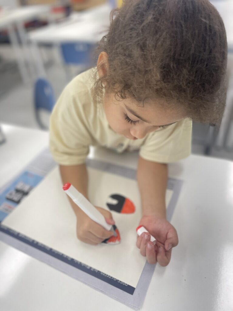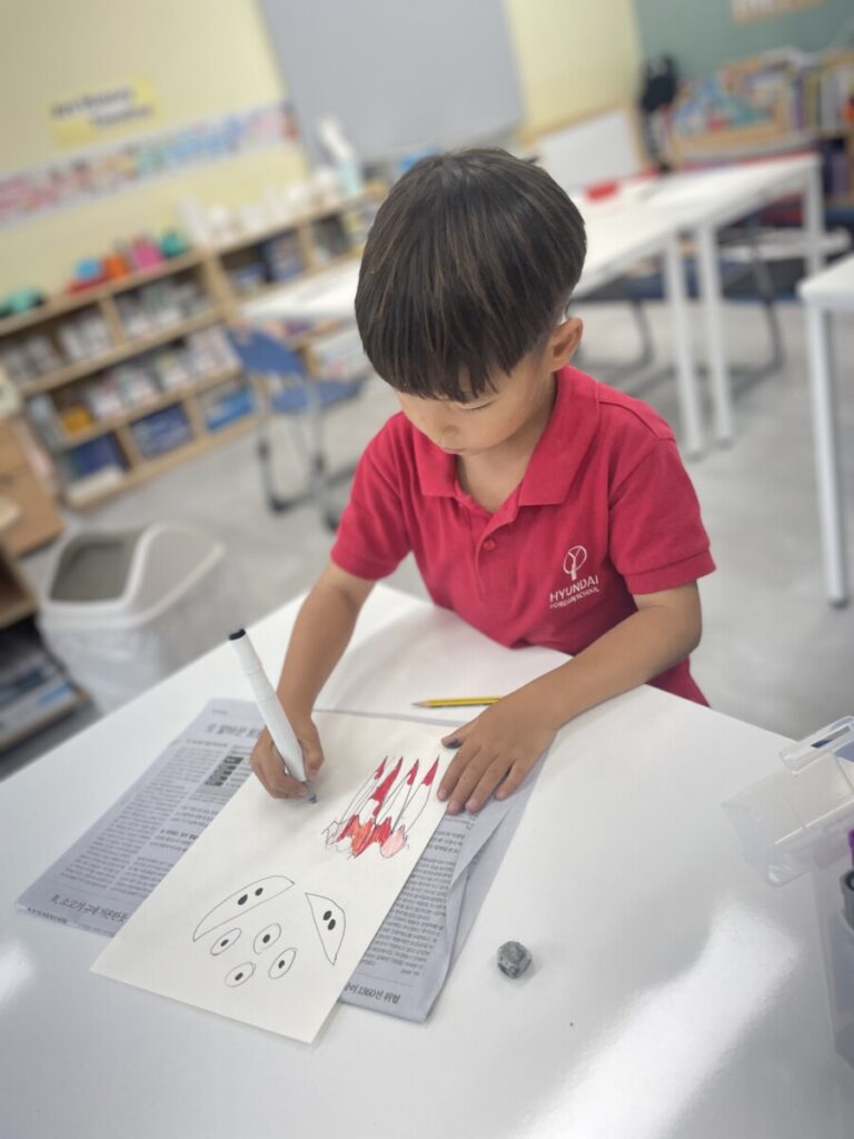From these shapes, they imagined and designed colourful monsters, adding eyes and mouths to bring their creatures to life.