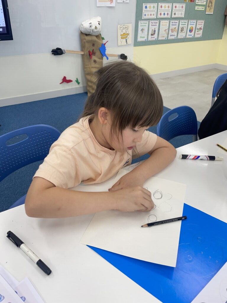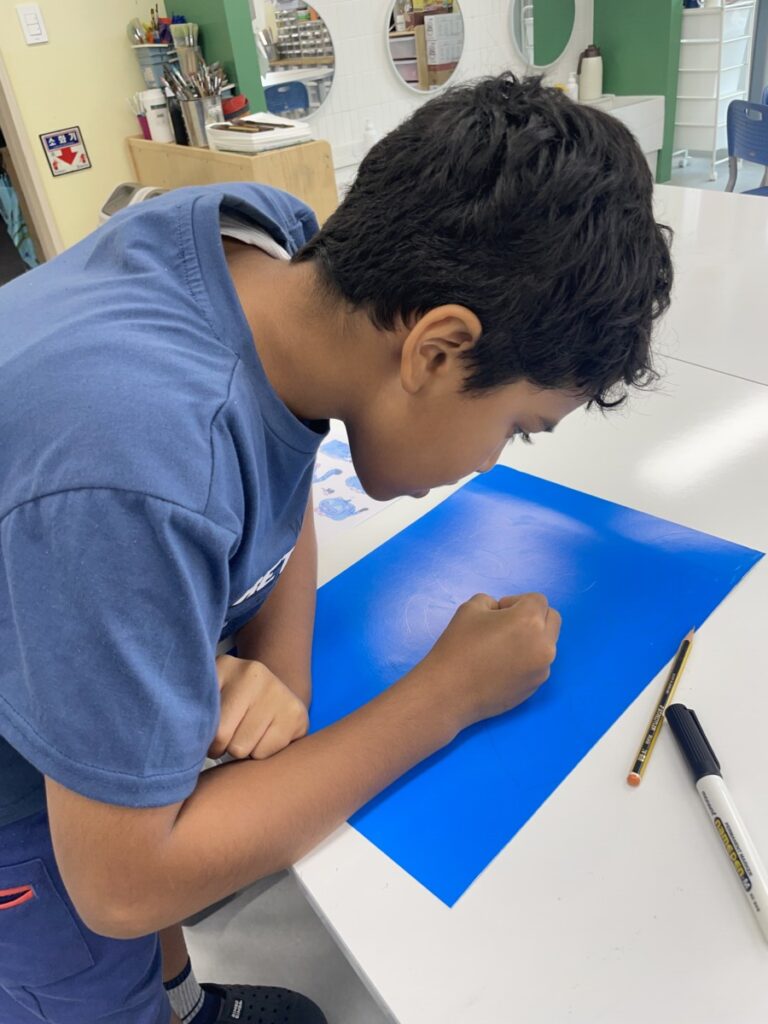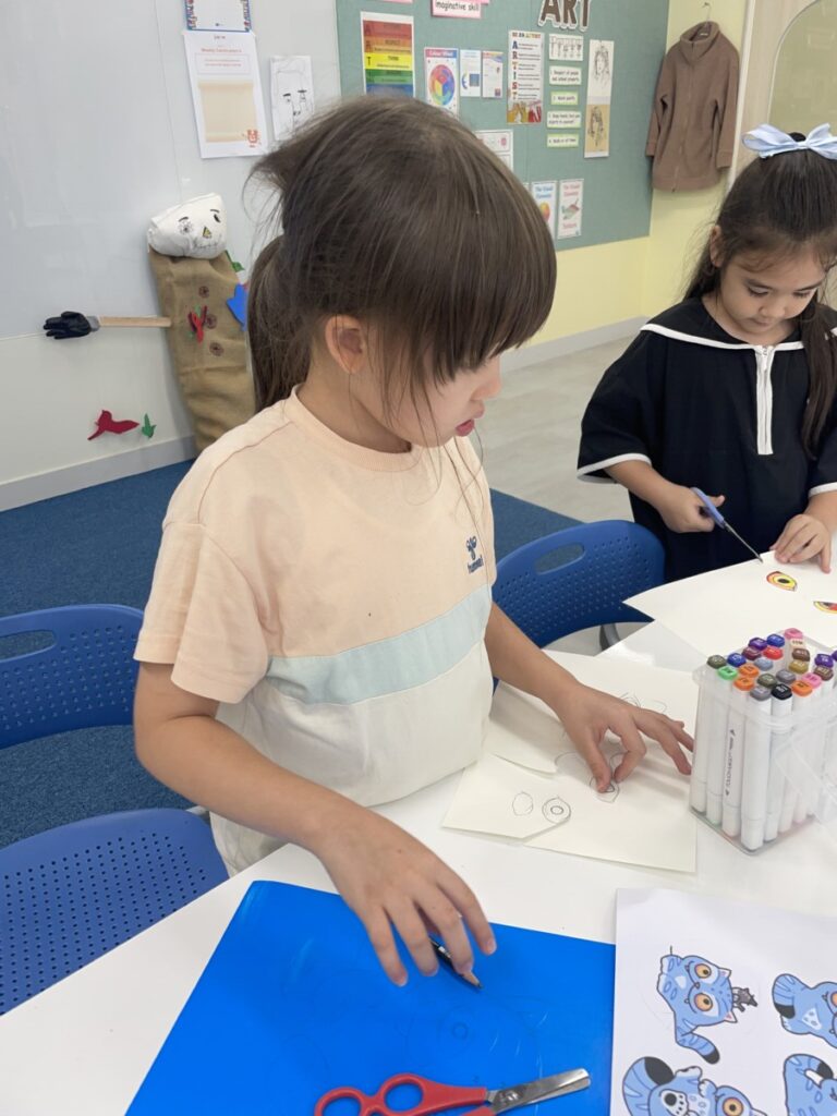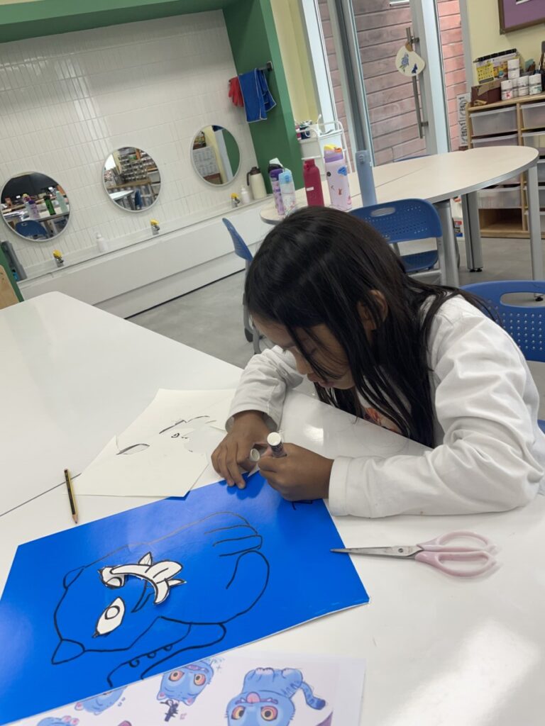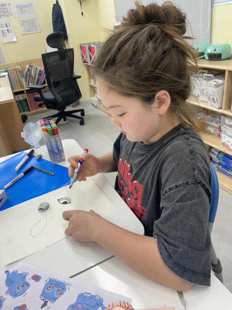 Although some students found it challenging at first, they learned how to draw character poses and were able to complete their work with joy and confidence.